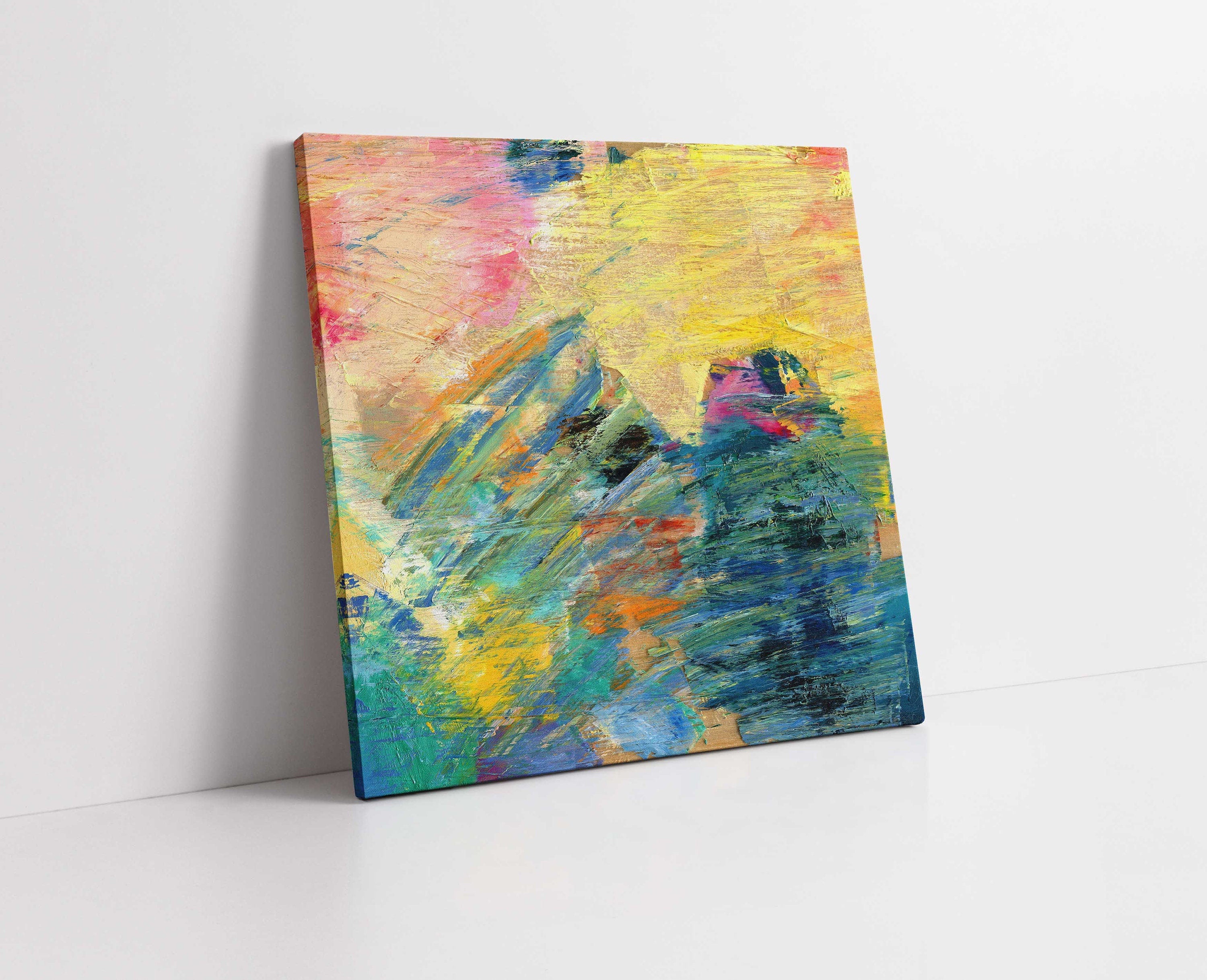Abstract multi coloured brush strokes wall art. Colourful pallette, Canvas picture print. Available in choice of sizes. Nice bright wall art for any room.