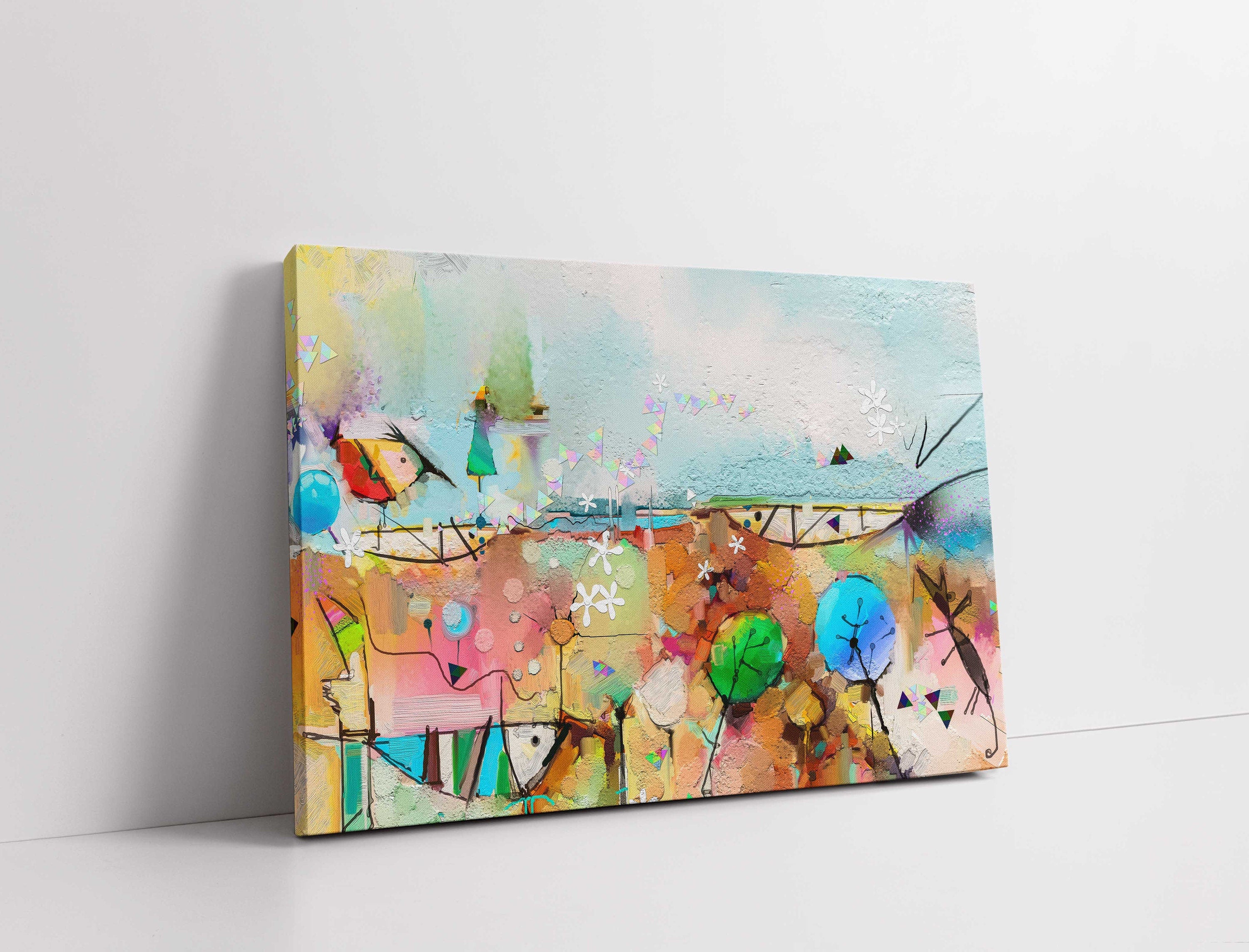 Abstract painting, tree, fish and bird in landscape.stylish canvas picture print Read more
