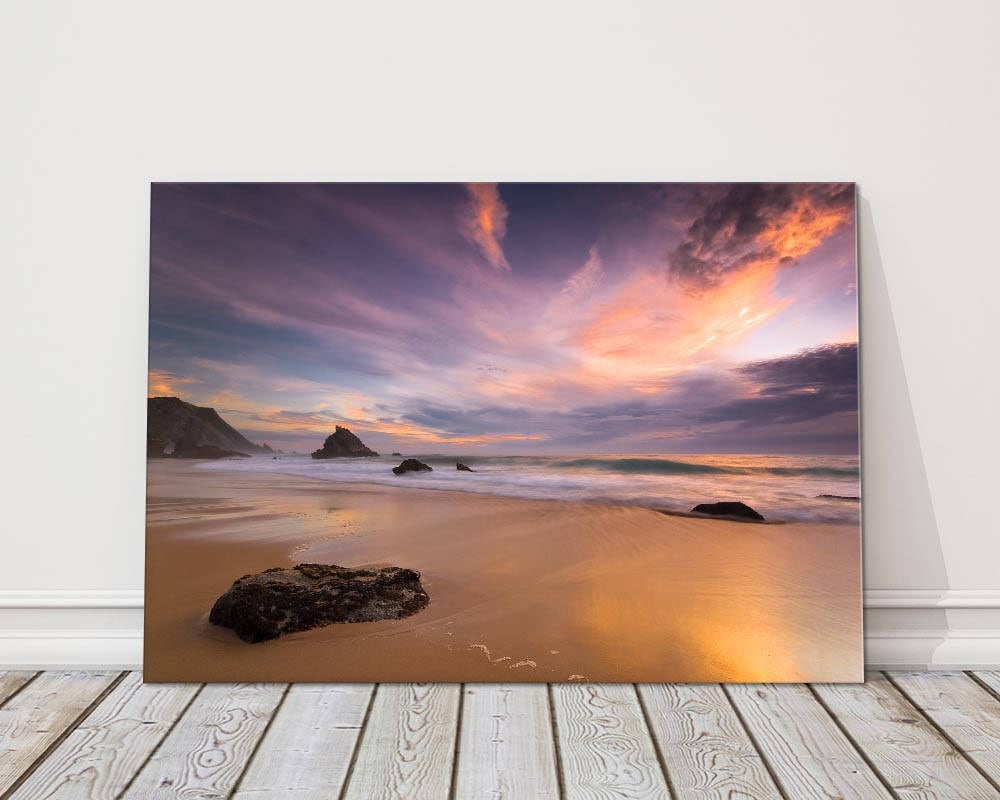 Adraga beach at sunset picture printed and framed as a canvas print Made using UK sourced pine stretcher bars, knot... Read more
