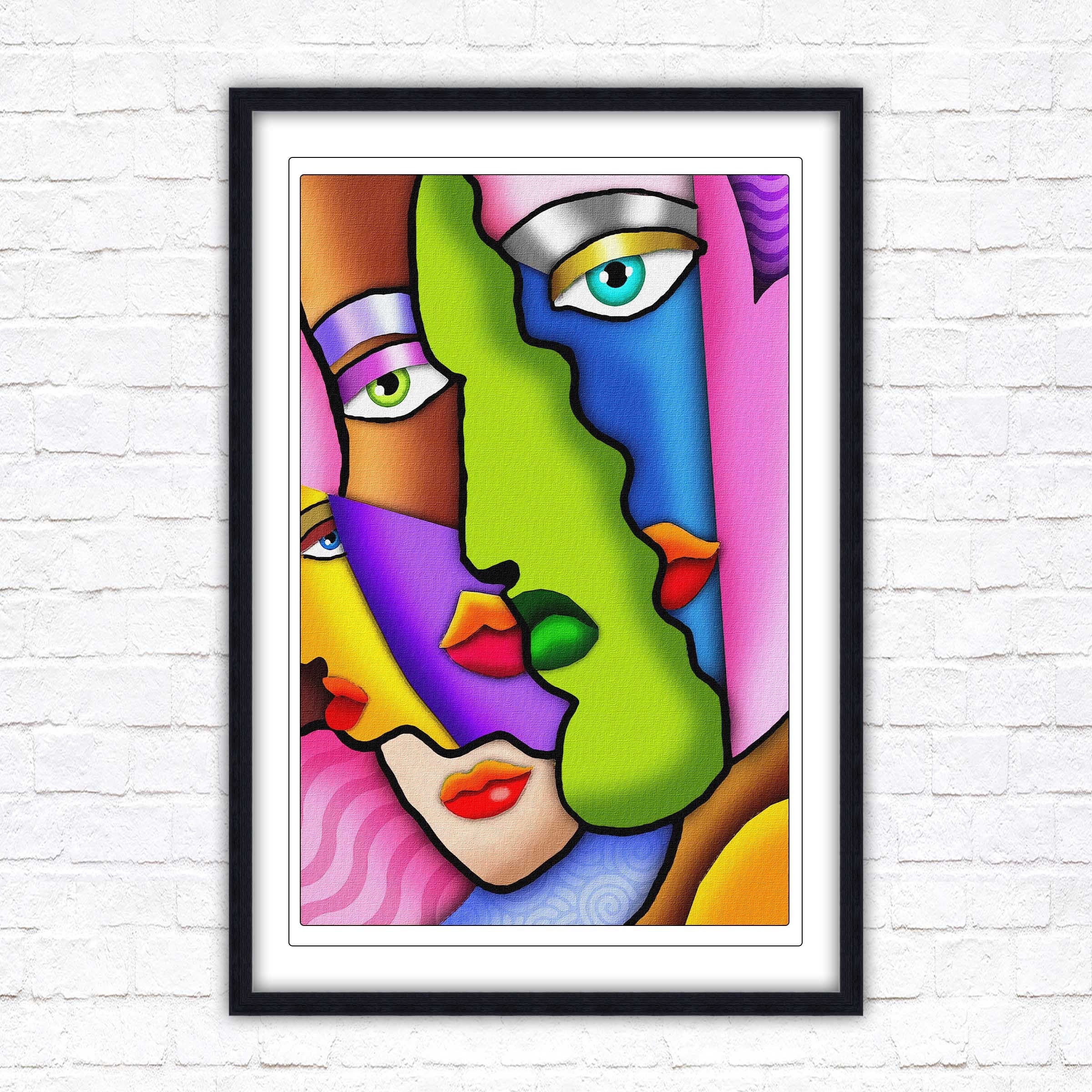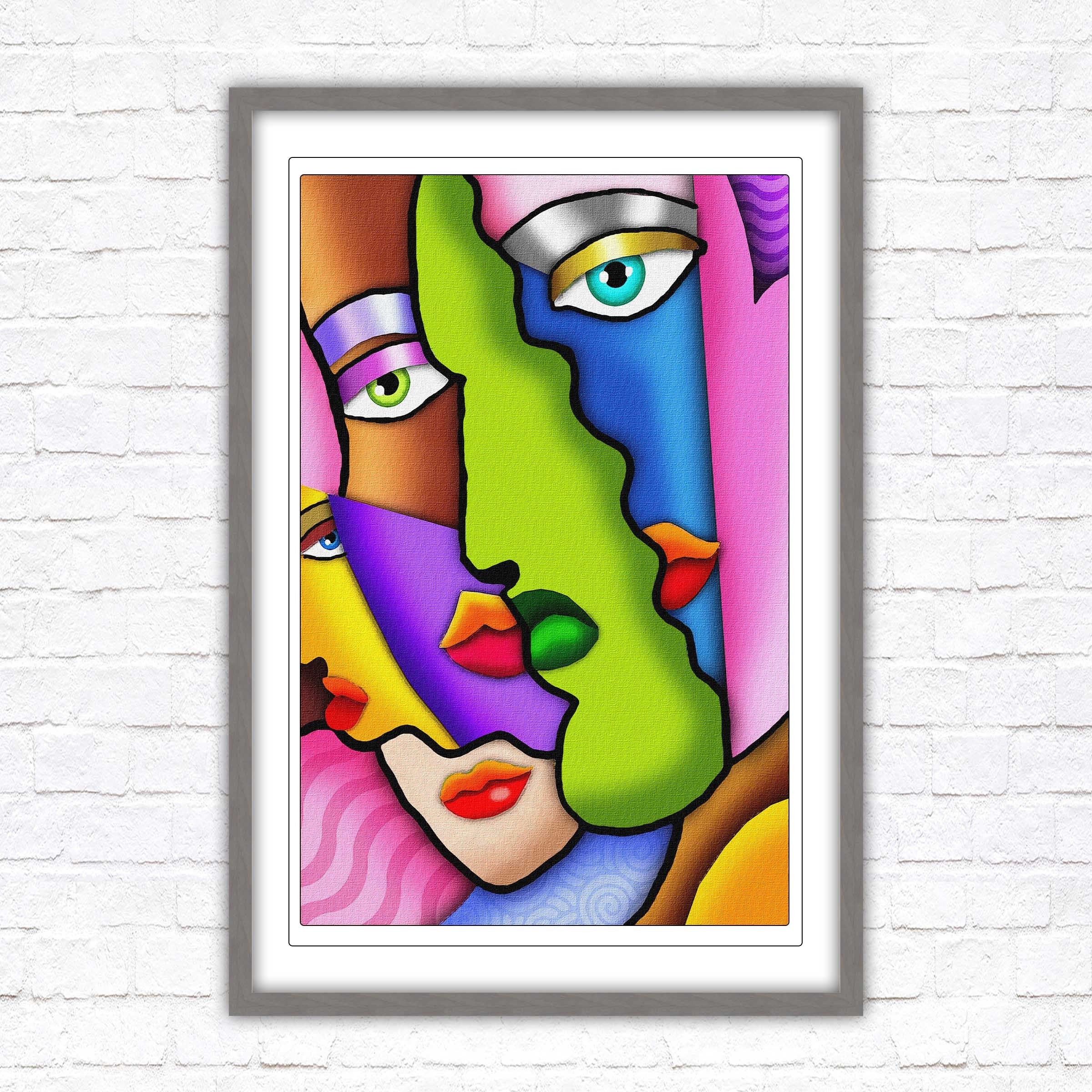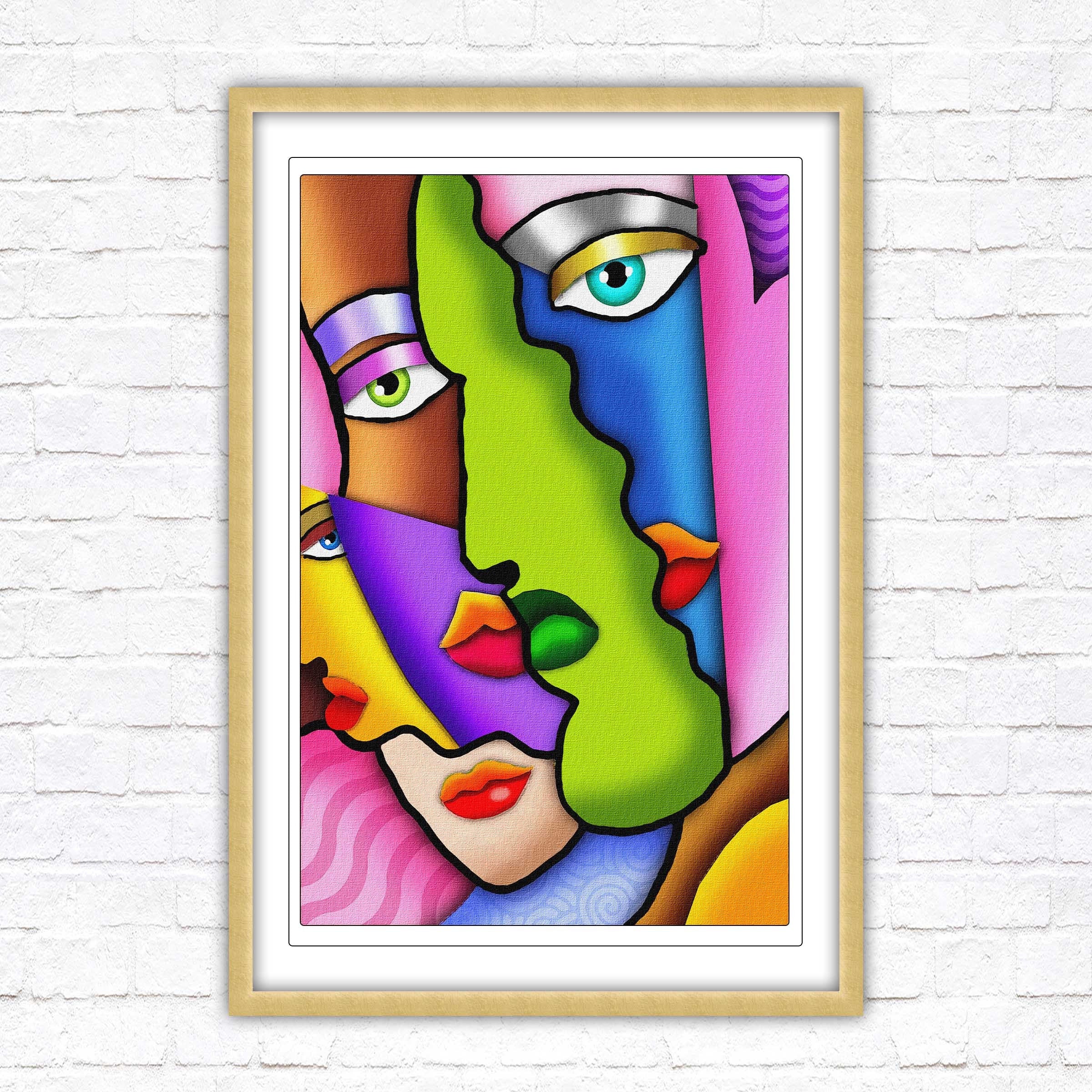 Art deco abstract faces. Printed framed picture. A choice of frame styles and borders.