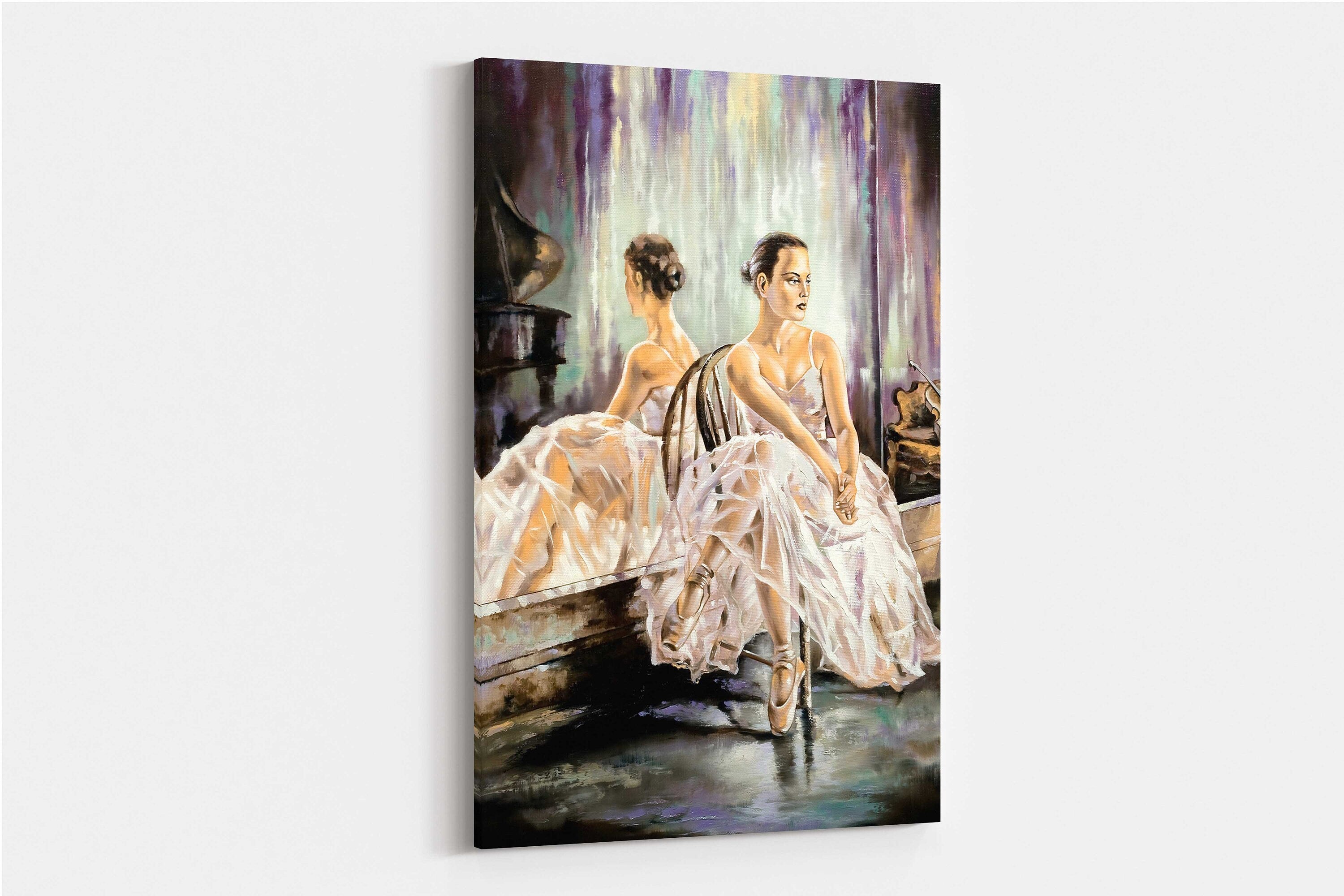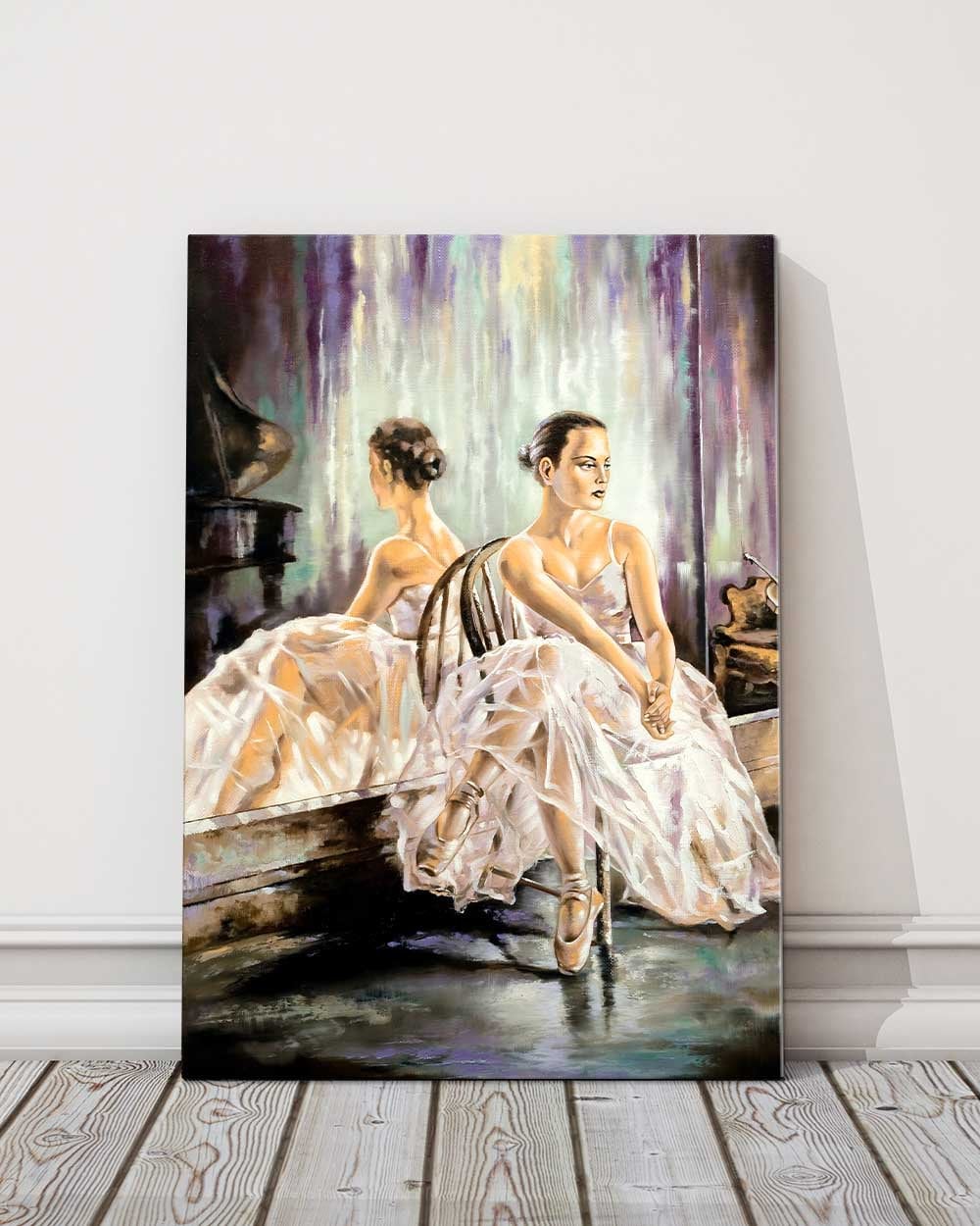 Ballerina sitting near a mirror. print of an oil painting onto a canvas picture