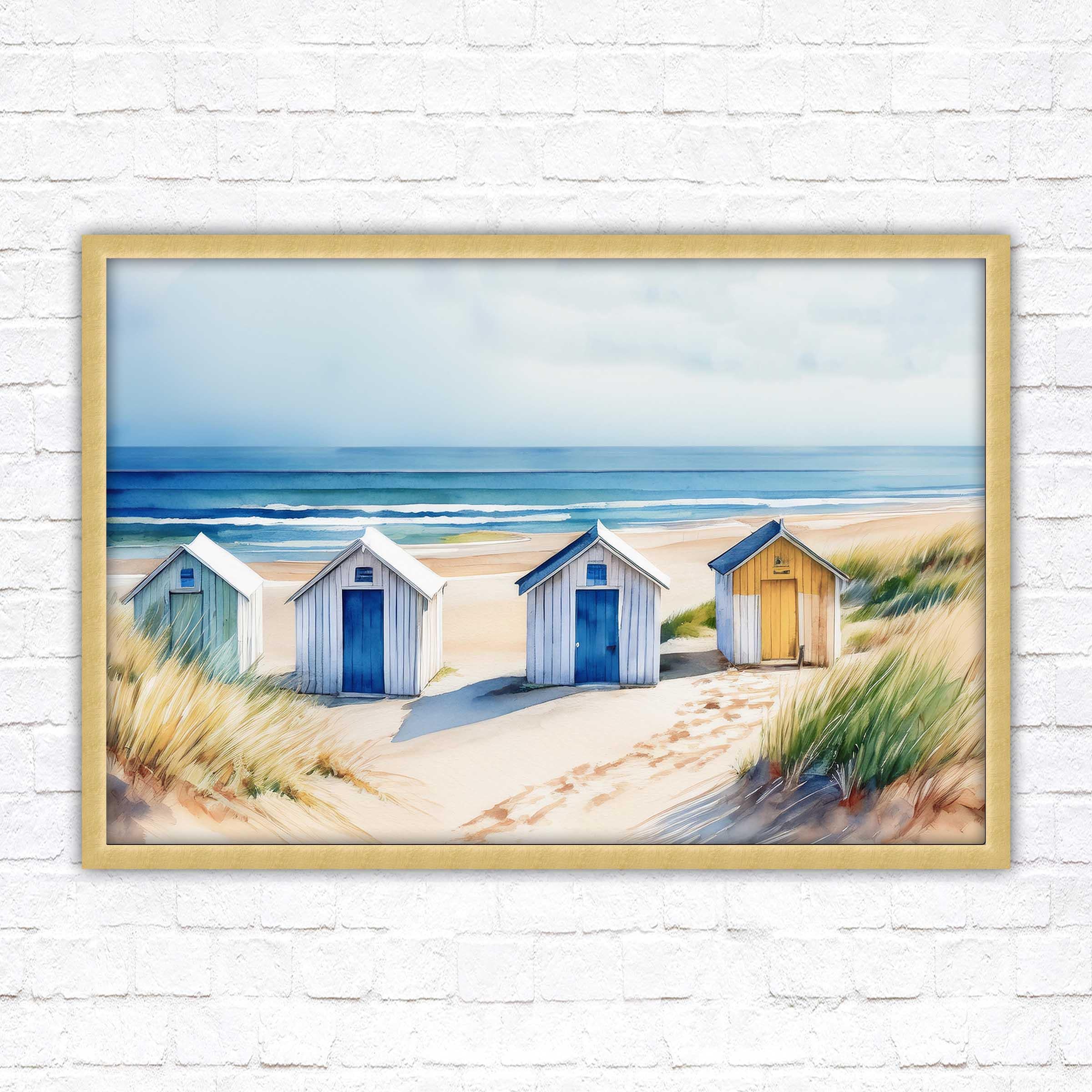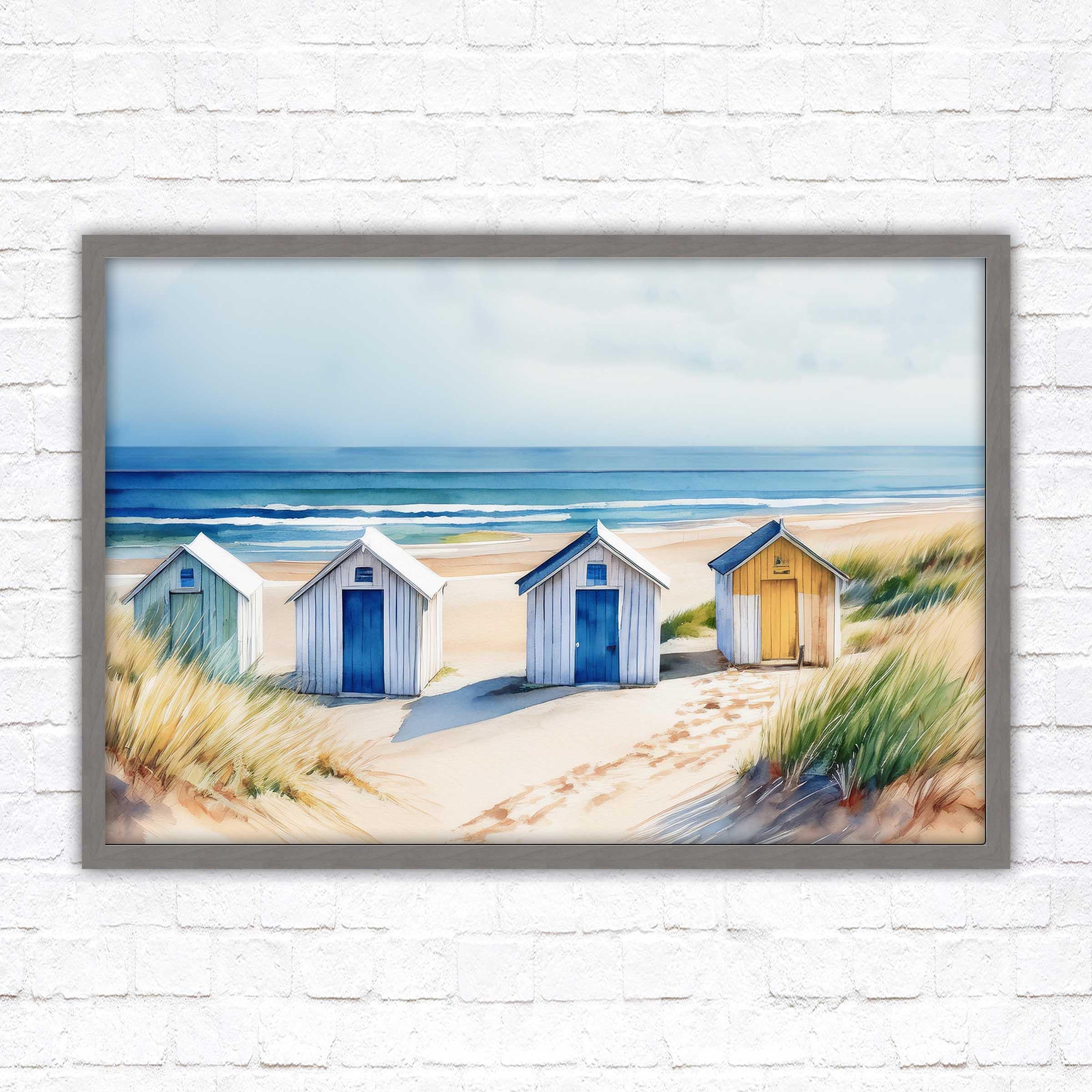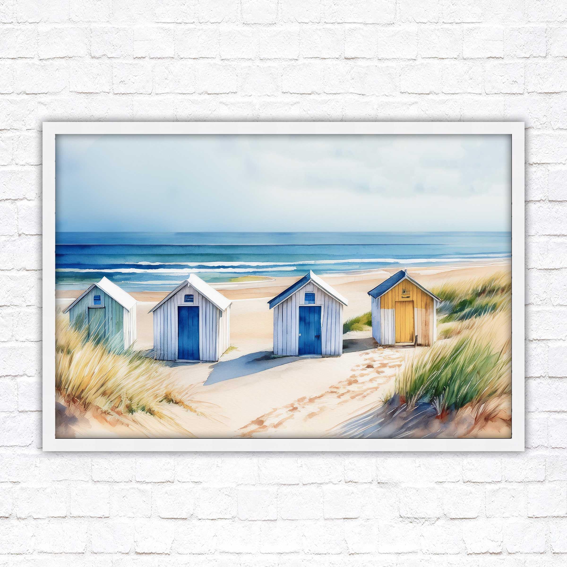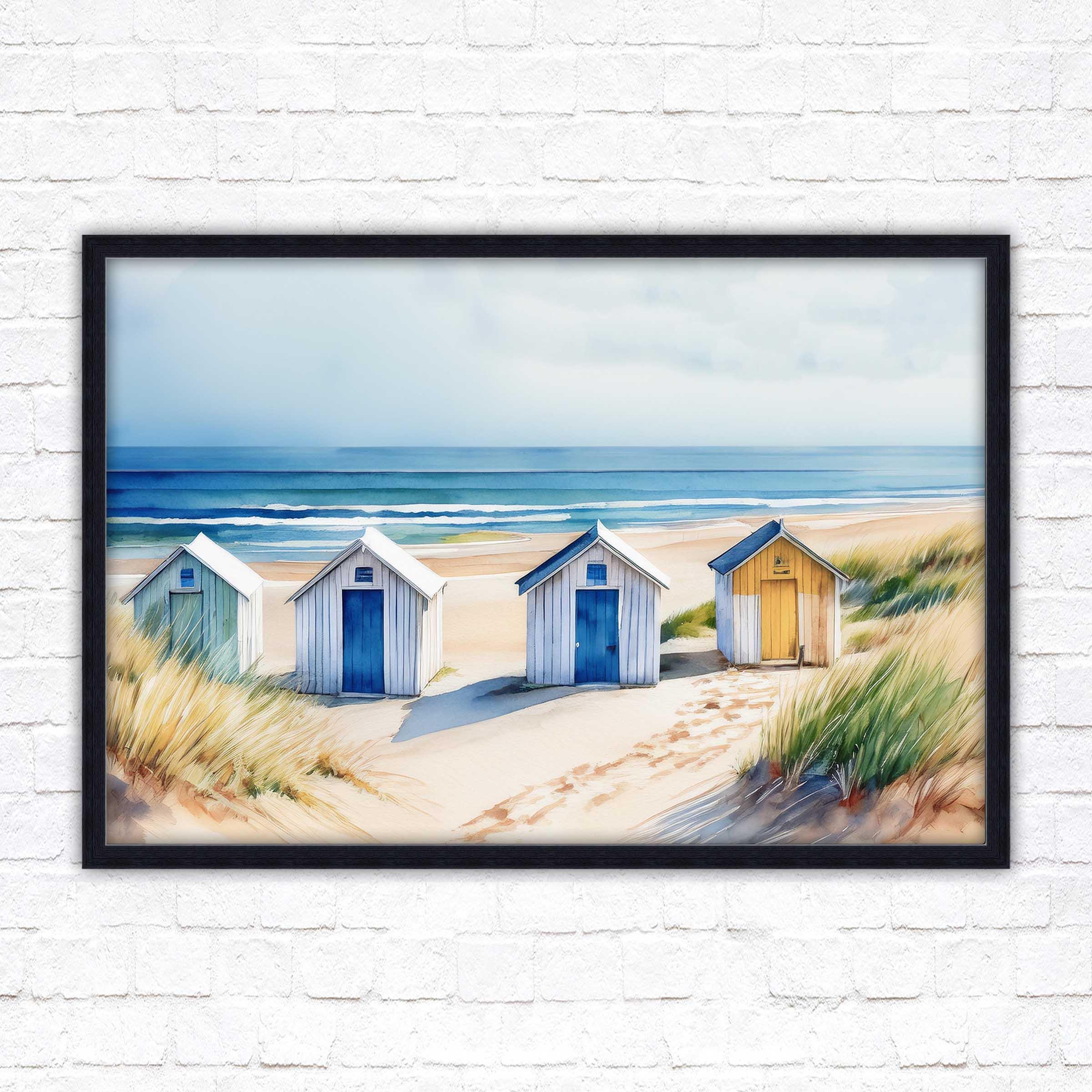 Add a splash of coastal charm to your home with our stunning, beach hut watercolour print. Capturing the hues of a sunny seaside escape, this framed picture brings a sense of joy and serenity to any room.