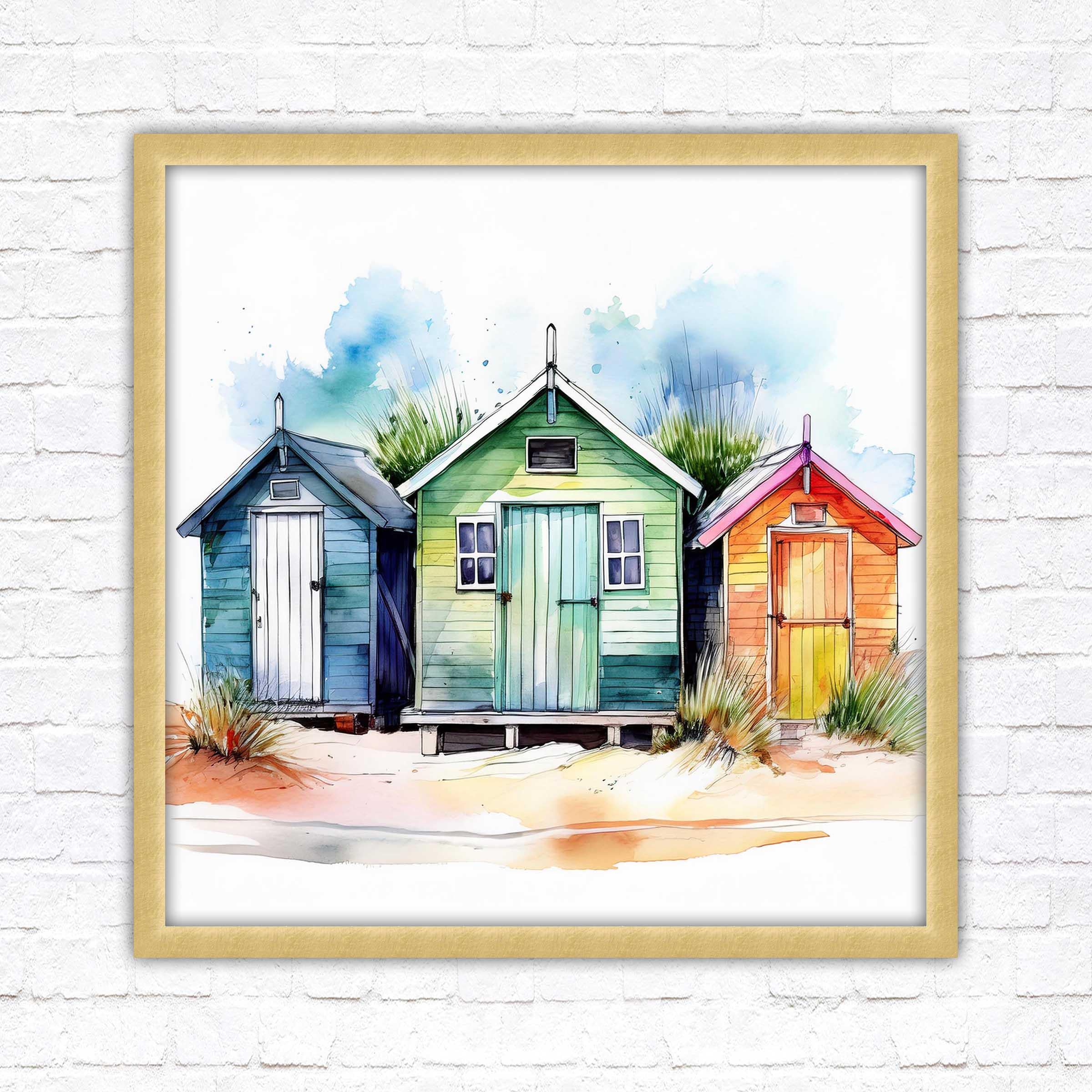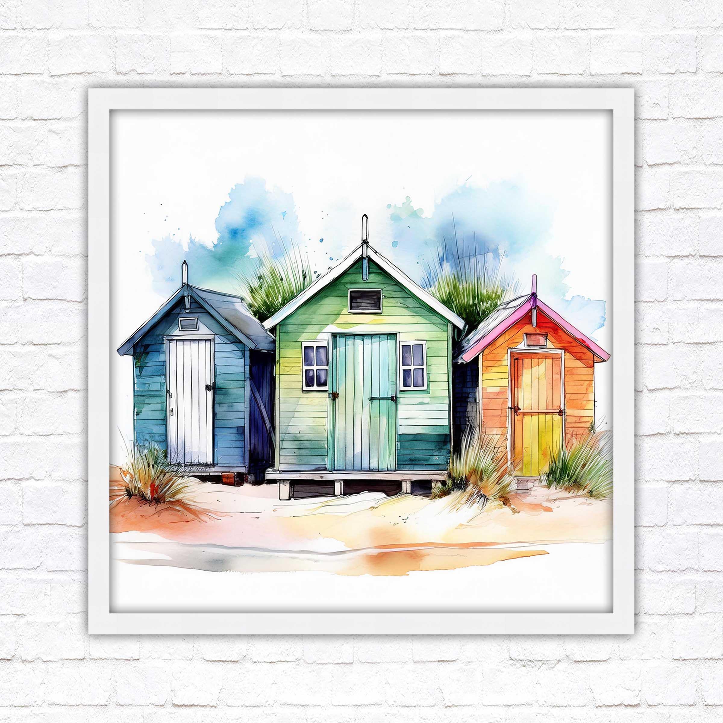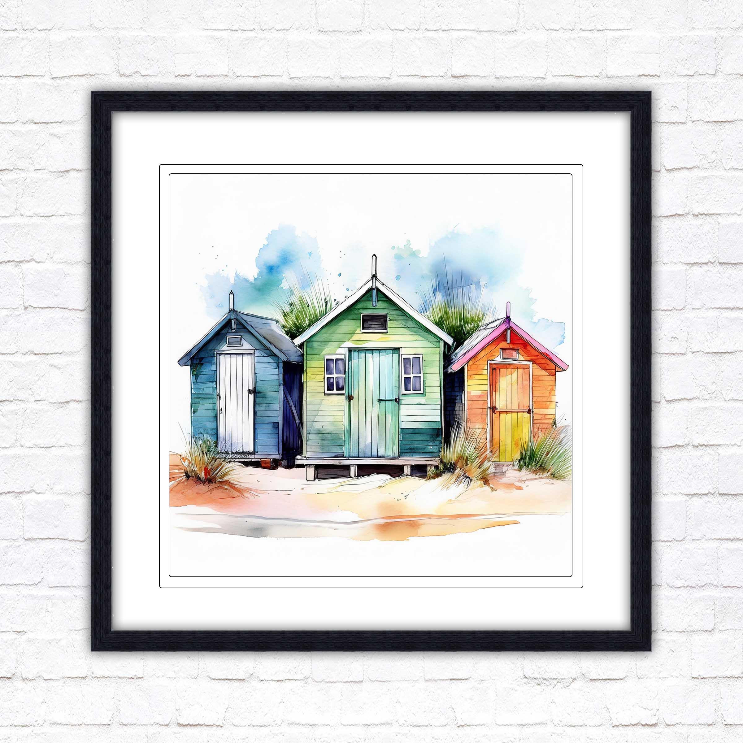 Brighten Your Space with a Vibrant Beach Hut Watercolour!
