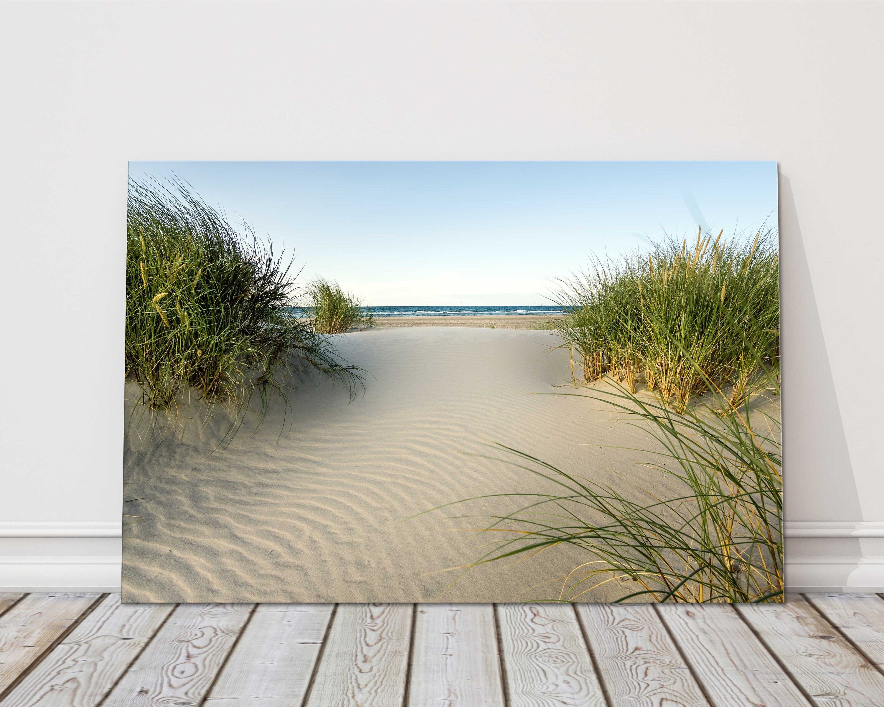 Beach view from the sand dunes. Canvas picture Print. beach seascape.