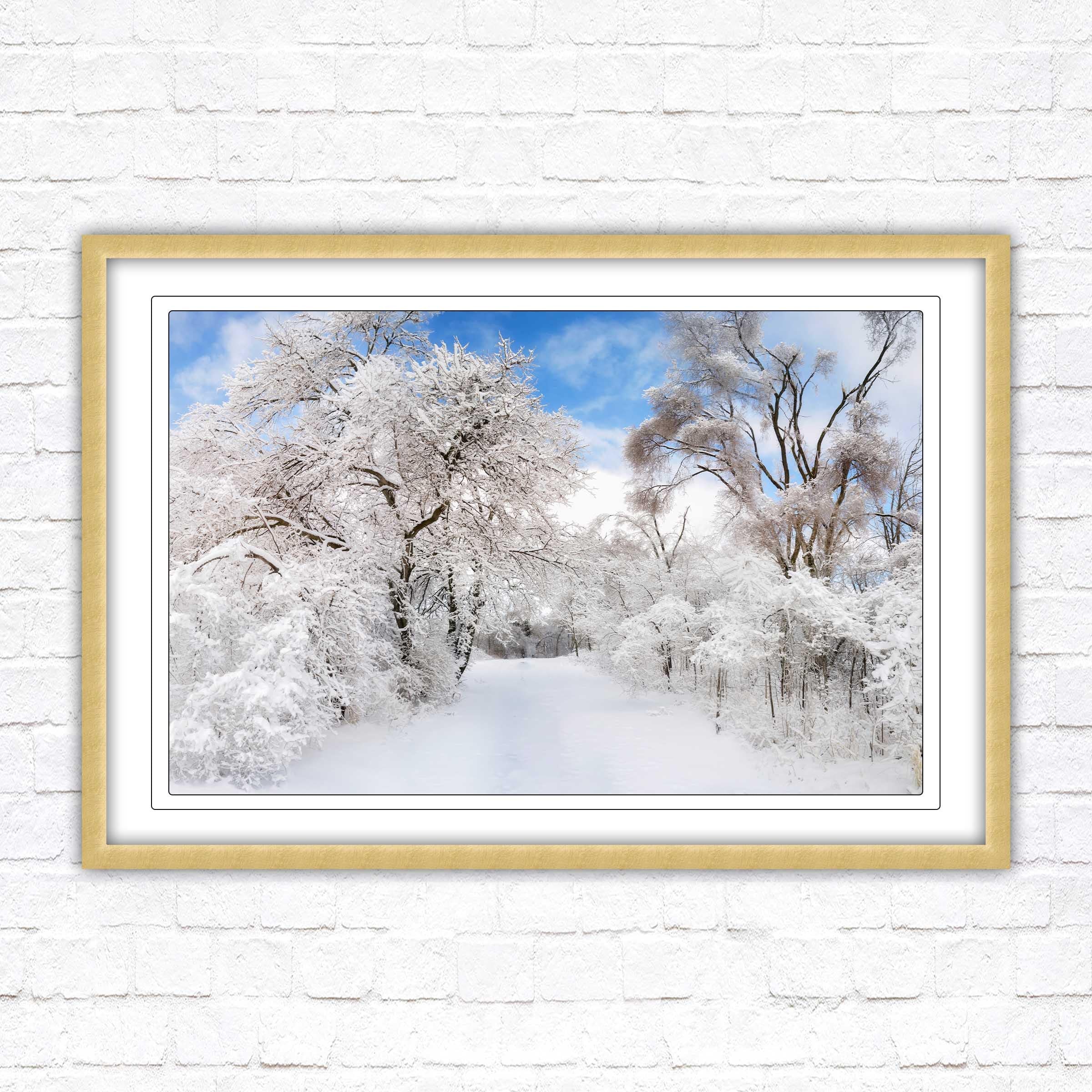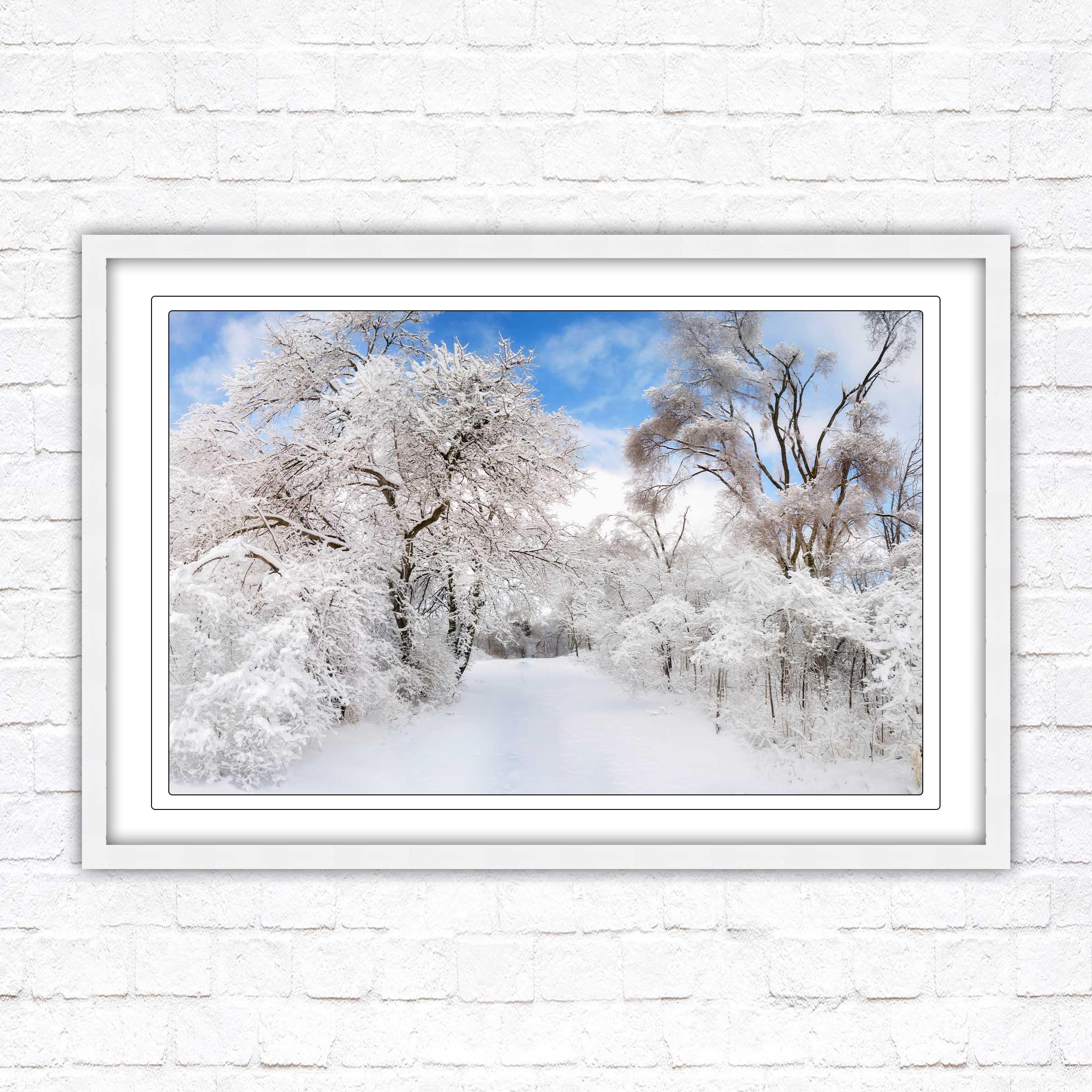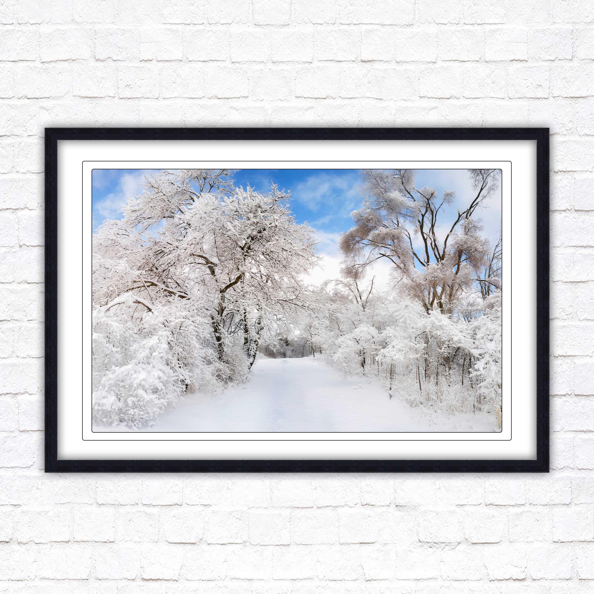 A beautiful framed picture of Snow covered trees under a clear blue sky. Choose from a selection of frame styles and sizes.