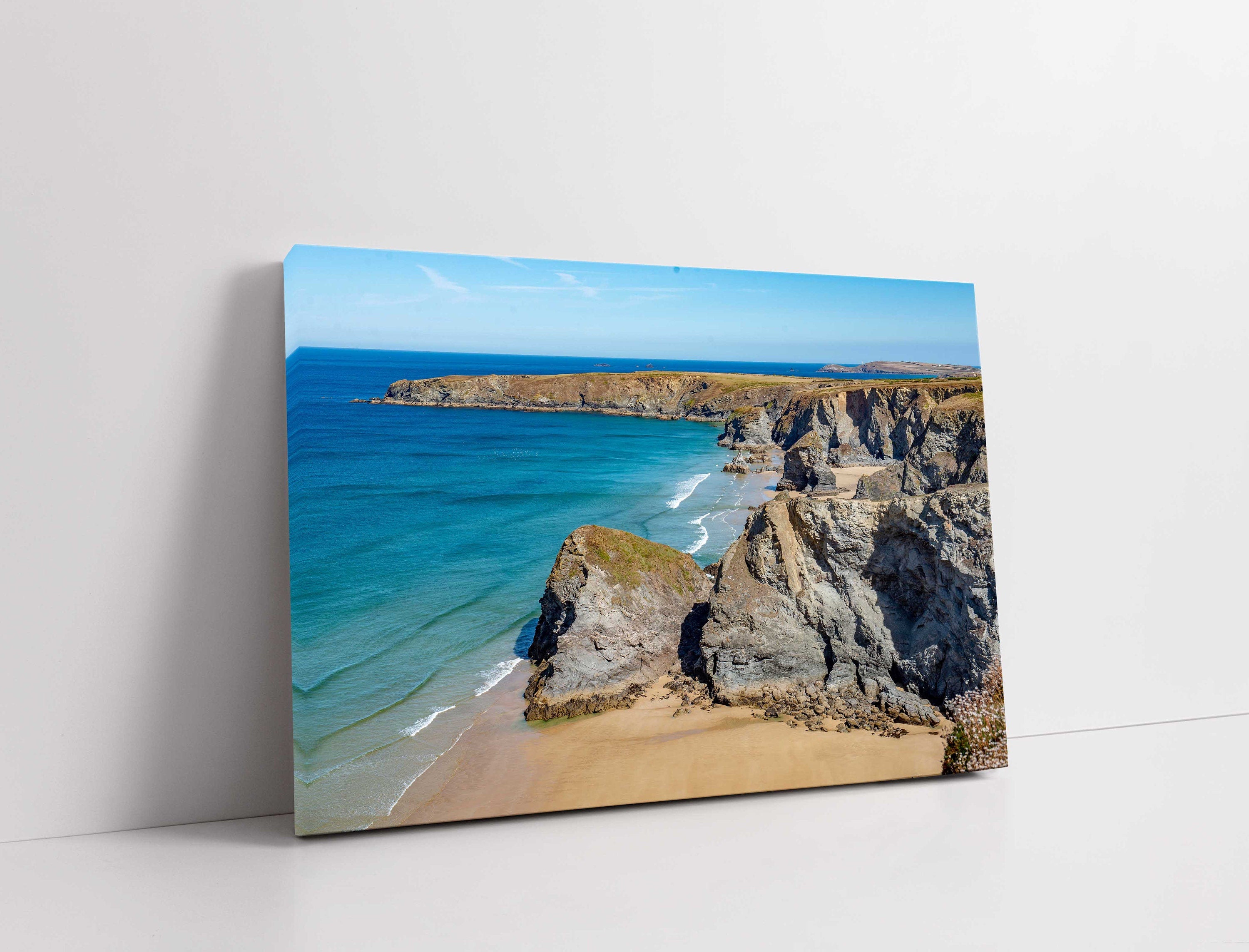 Bedruthan Steps, picturesque coastline, North Cornwall. Printed and framed as a canvas picture. Available in a choice of sizes to order.