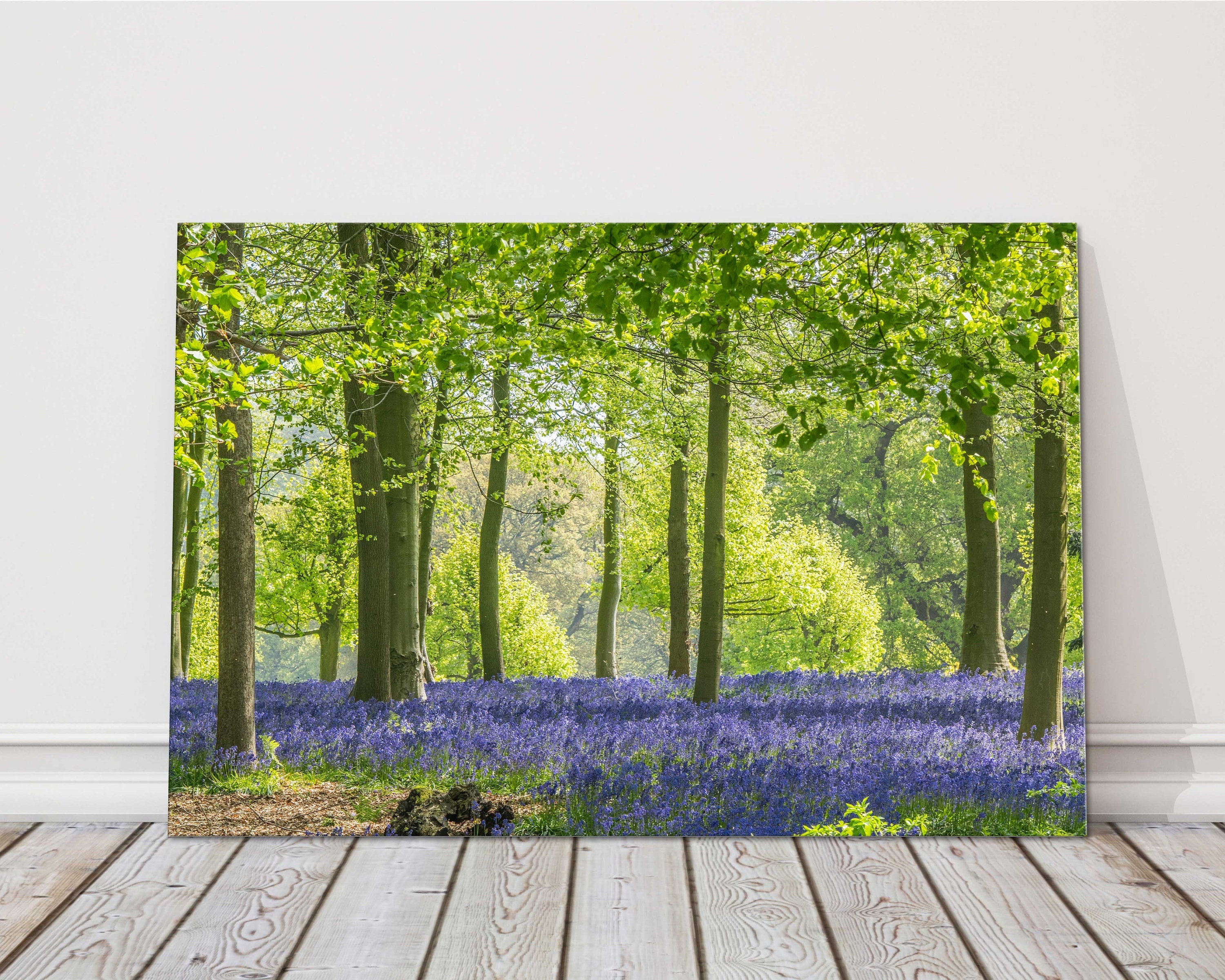 Beautiful carpet of bluebells in the woods in springtime. Purple/blue flowers. Picture printed and framed as a canvas print Made... Read more
