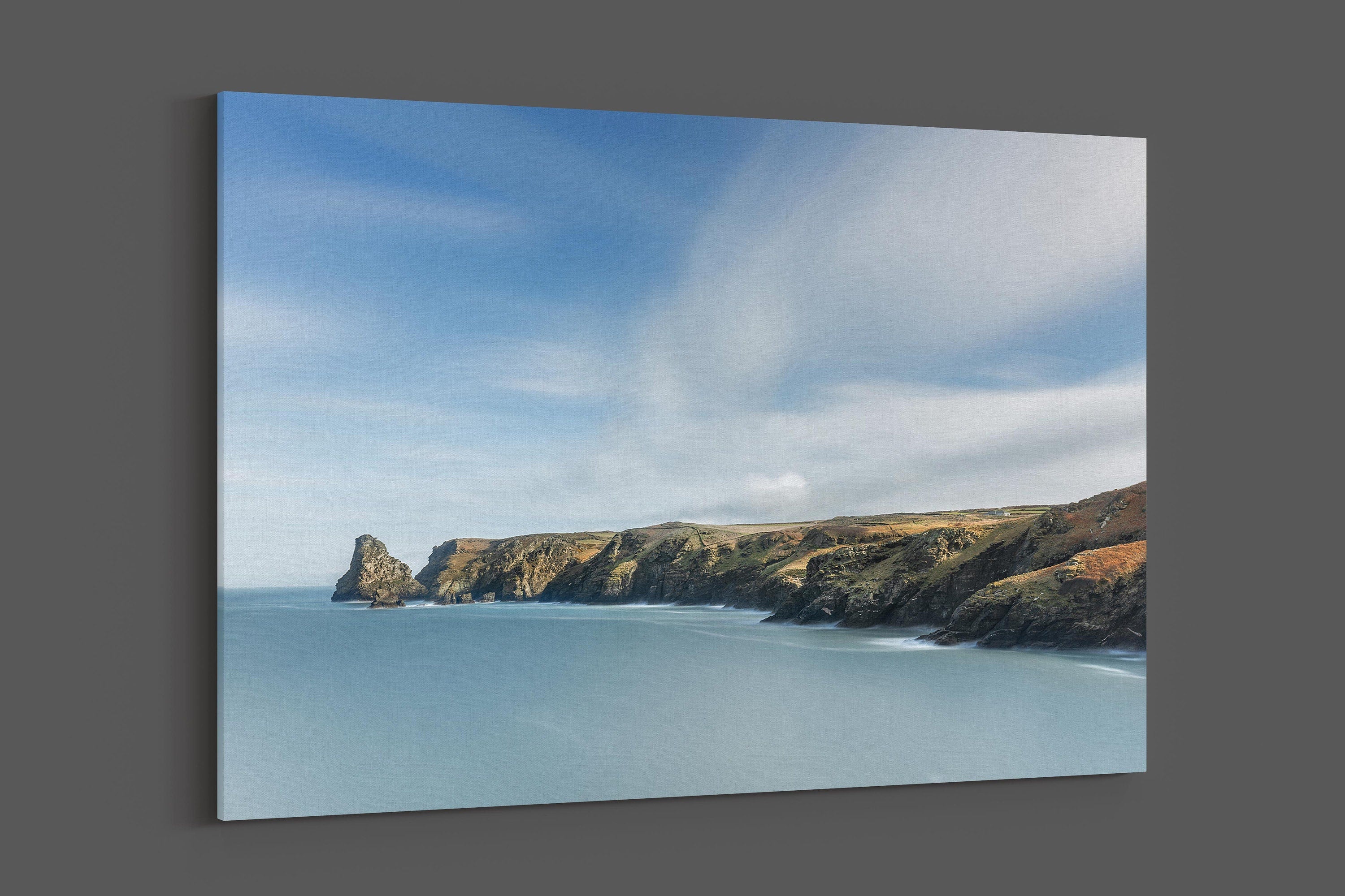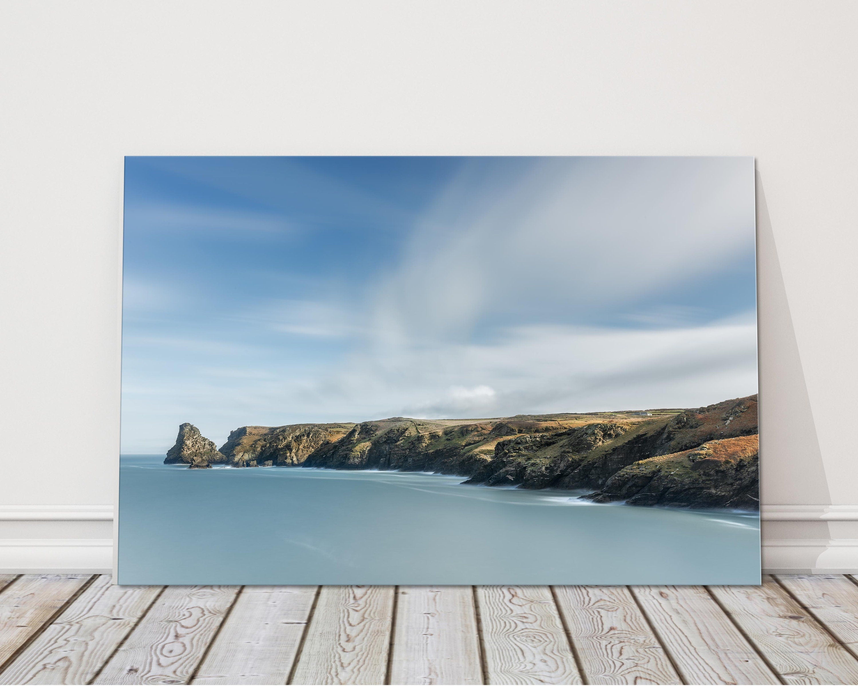 DESCRIPTION Bossiney Bay, Cornwall. Seascape canvas picture printed and framed as a canvas print Made using UK sourced pine stretcher... Read more