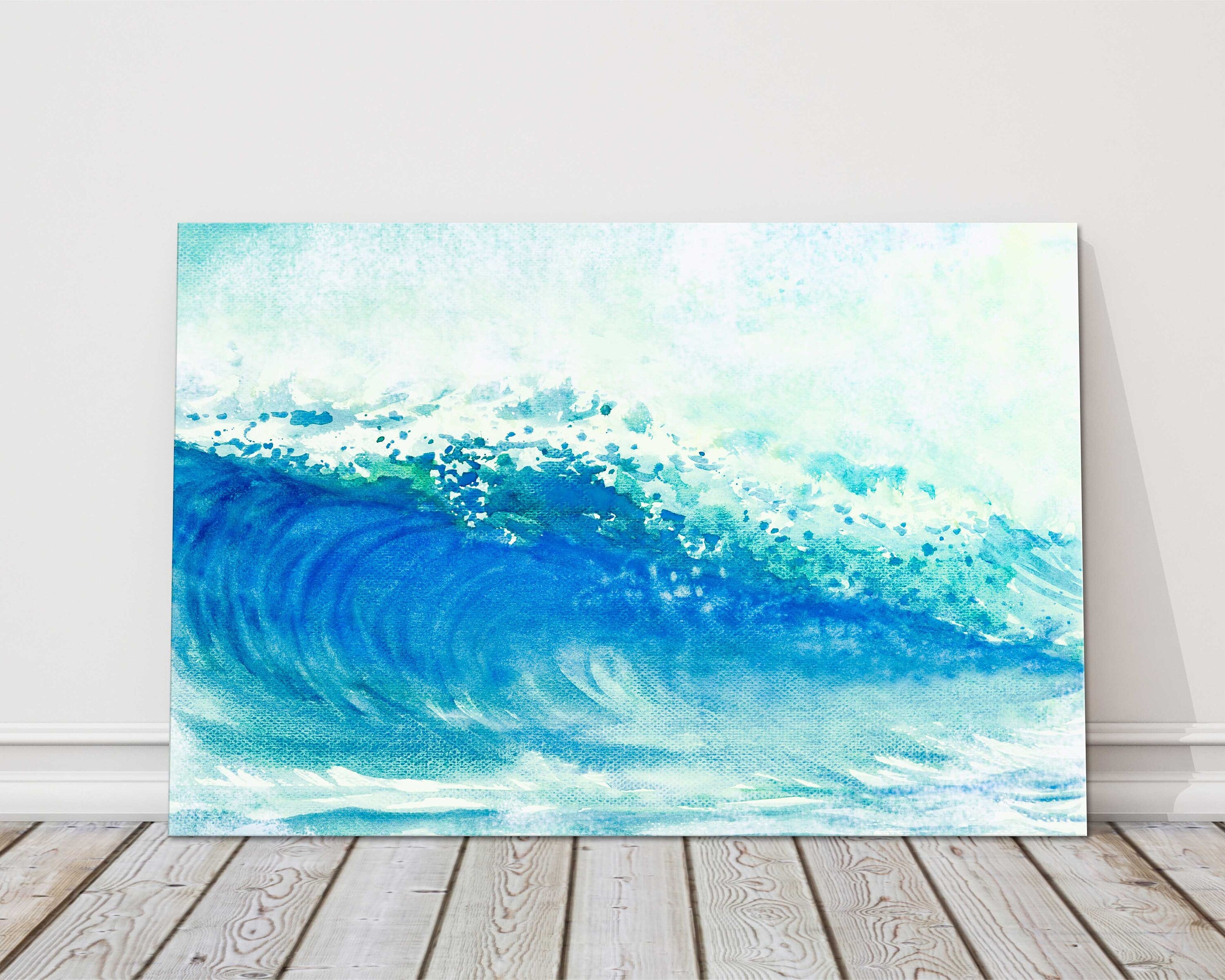Breaking waves, watercolour painting. Printed and framed as a canvas print. Lovely shades of blues in the water. Wall decor.... Read more