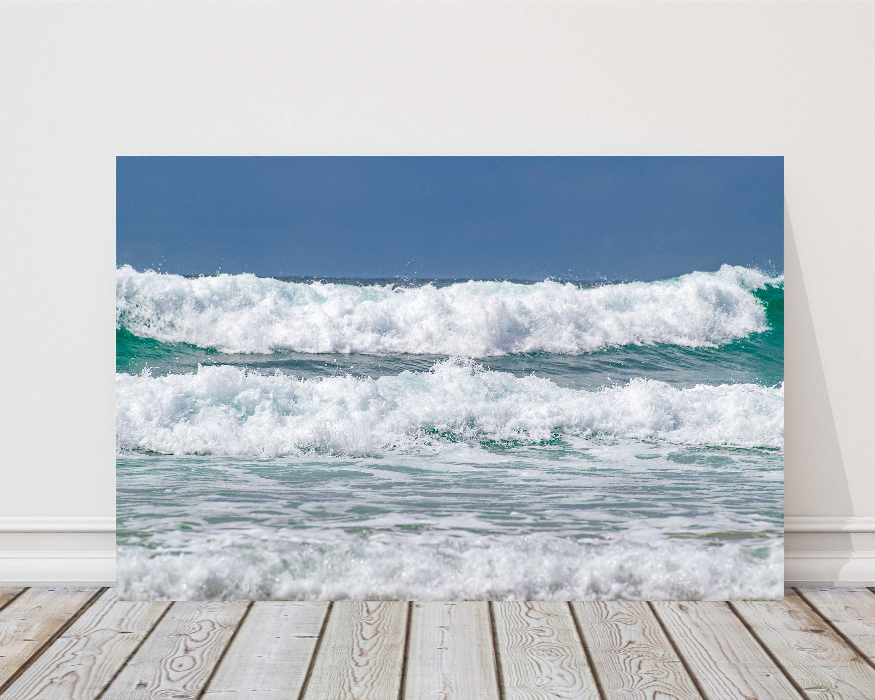 DESCRIPTION Breaking waves at Fistral beach, Cornwall. Beautiful colours of the water. Picture printed and framed as a canvas print.... Read more