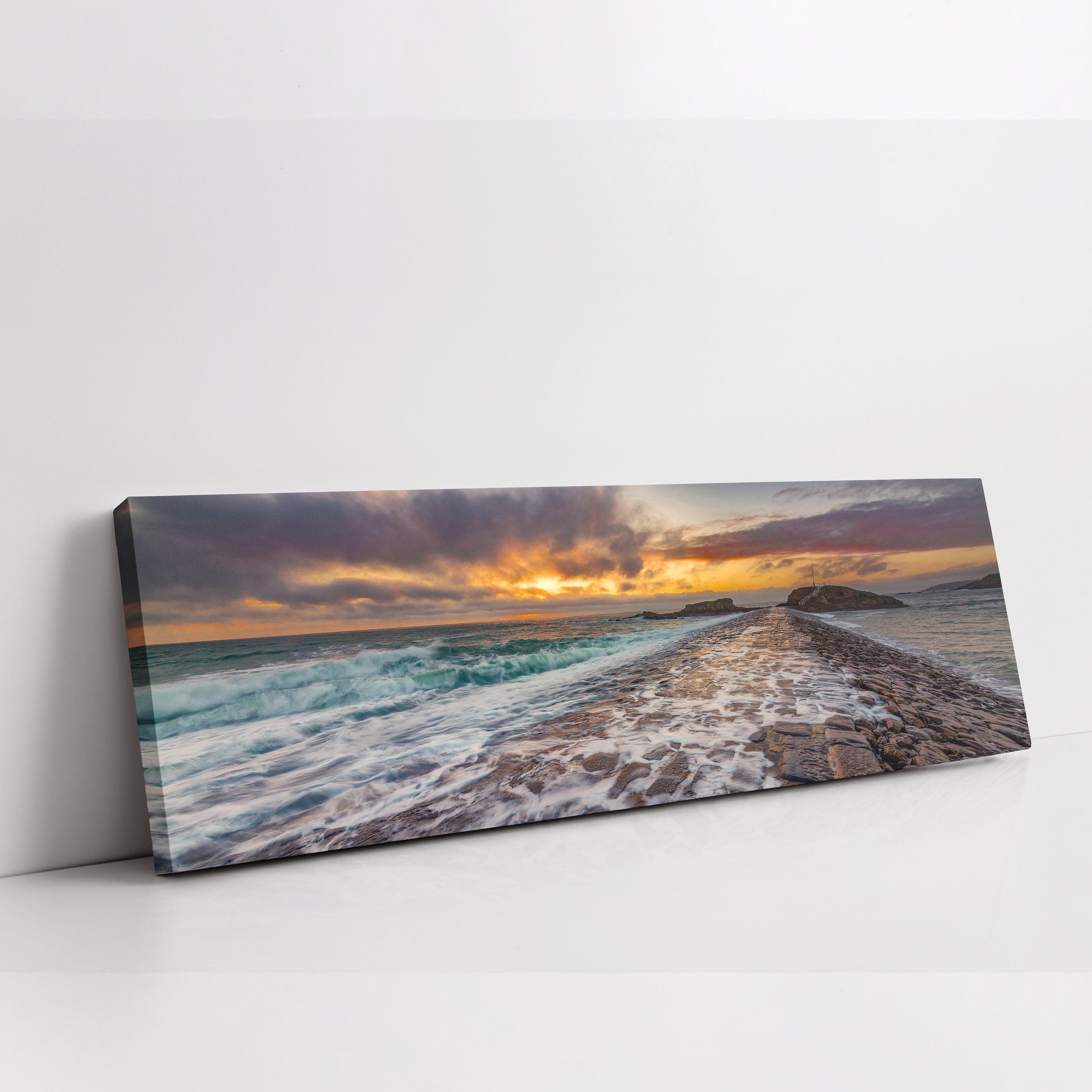Bude Breakwater at sunset, Cornwall. Panoramic canvas picture print. Beautiful colours of the sunset, ideal gift. Available in a choice of sizes to order.