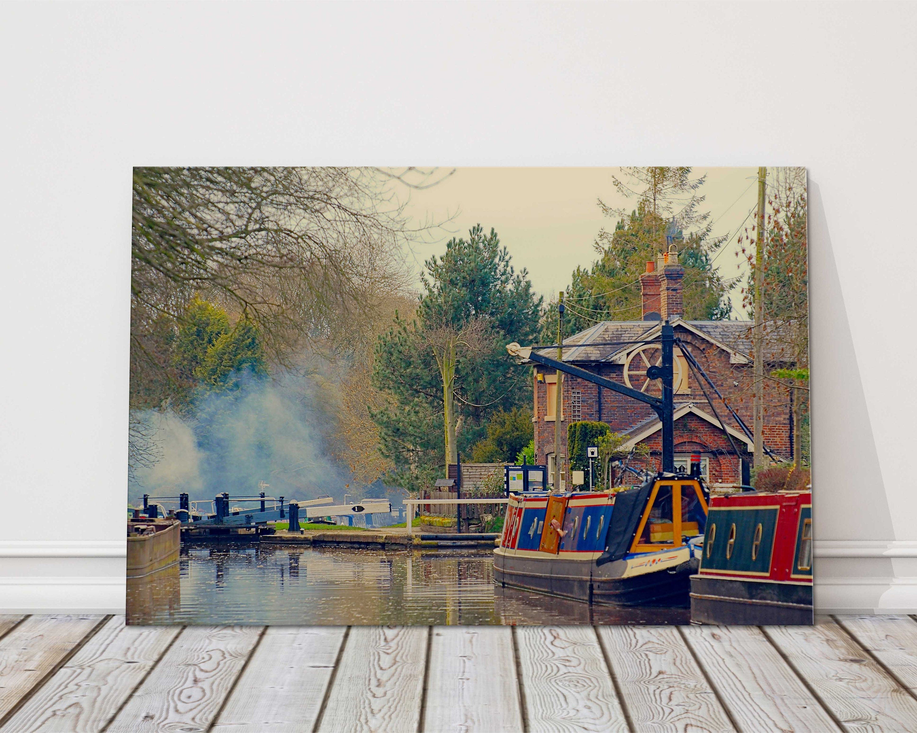 DESCRIPTION Narrowboats on the canal in Audlem, Cheshire. Picture printed and framed as a canvas print. Beautiful landscape image. Available... Read more