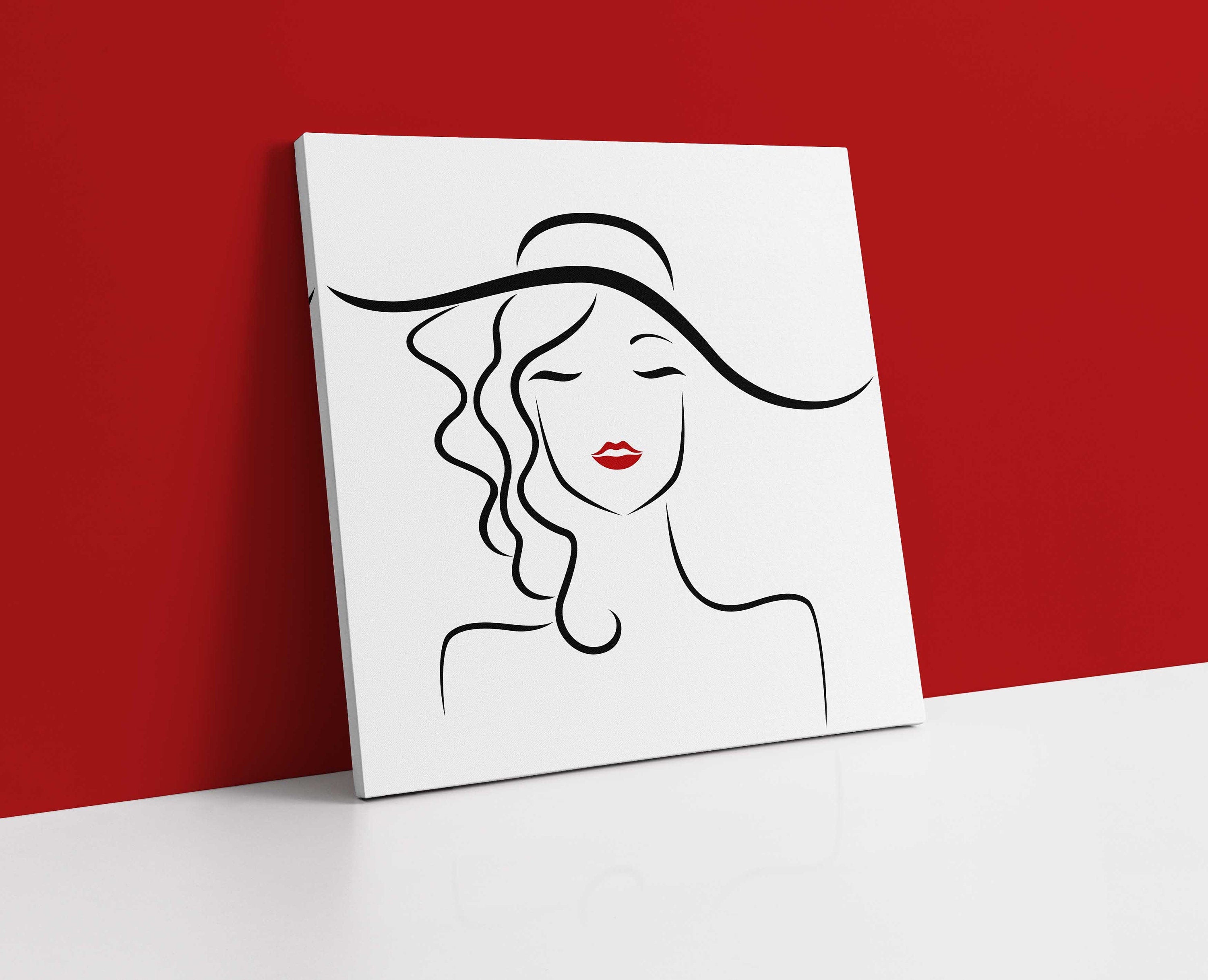 Abstract image of a beautiful woman in a hat. Black and white Canvas picture print. Available in a choice of sizes.