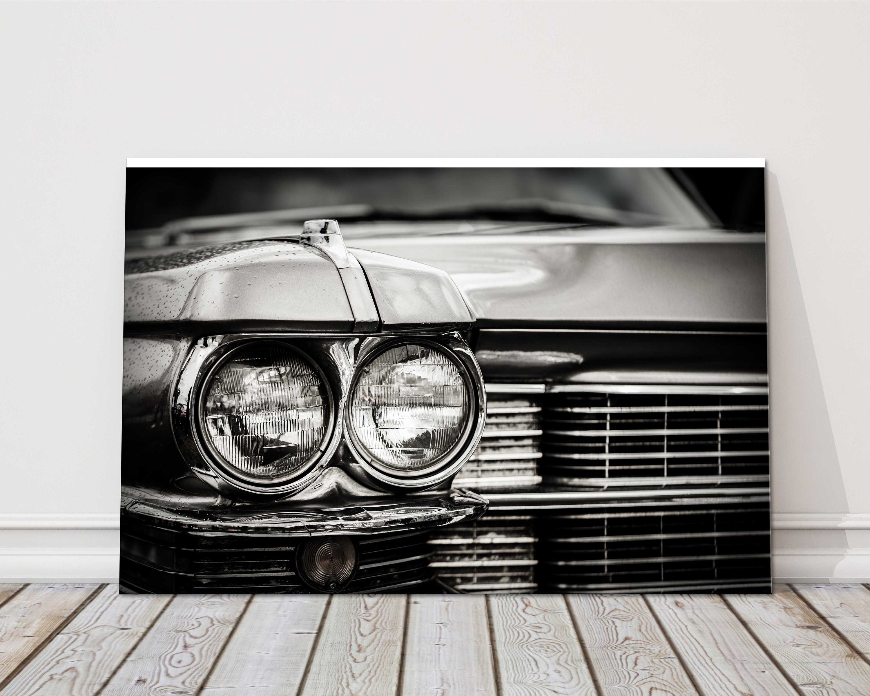 Classic American car close up. Retro in black and white canvas picture print Read more