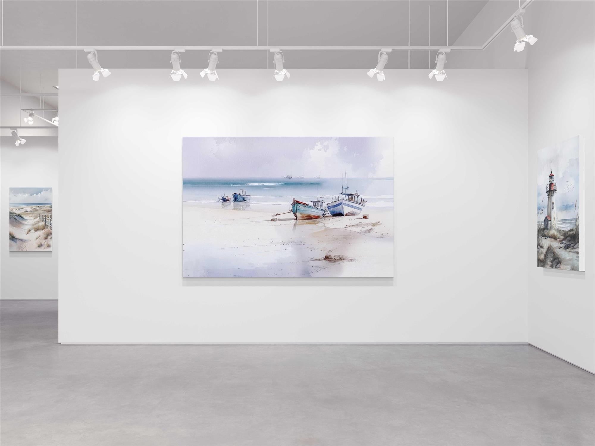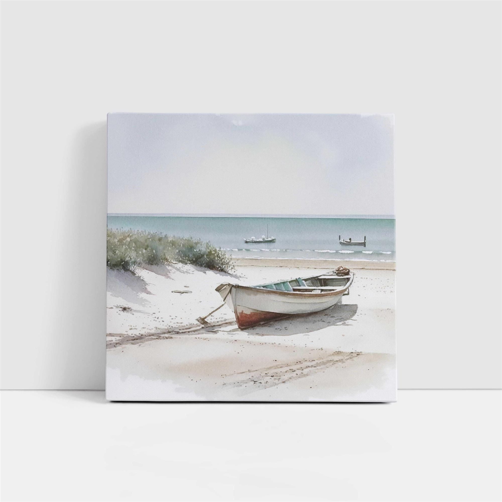 coastal art work framed canvas picture print beach boats painting, set available