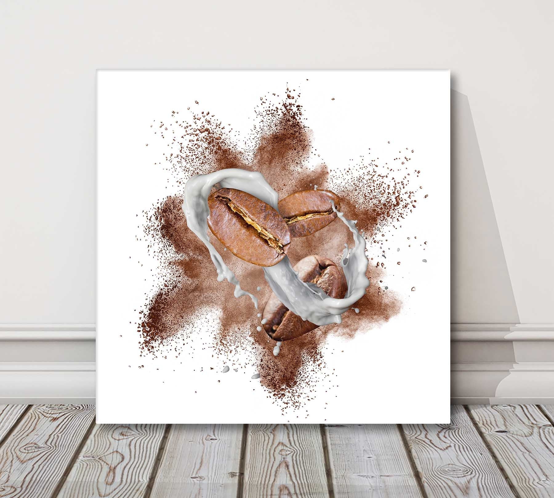 Coffee beans. Displayed on a white background. Printed and finished as a canvas picture print. Food and drink theme. Ideal for kitchen, café or restaurant. Choice of sizes available to order.