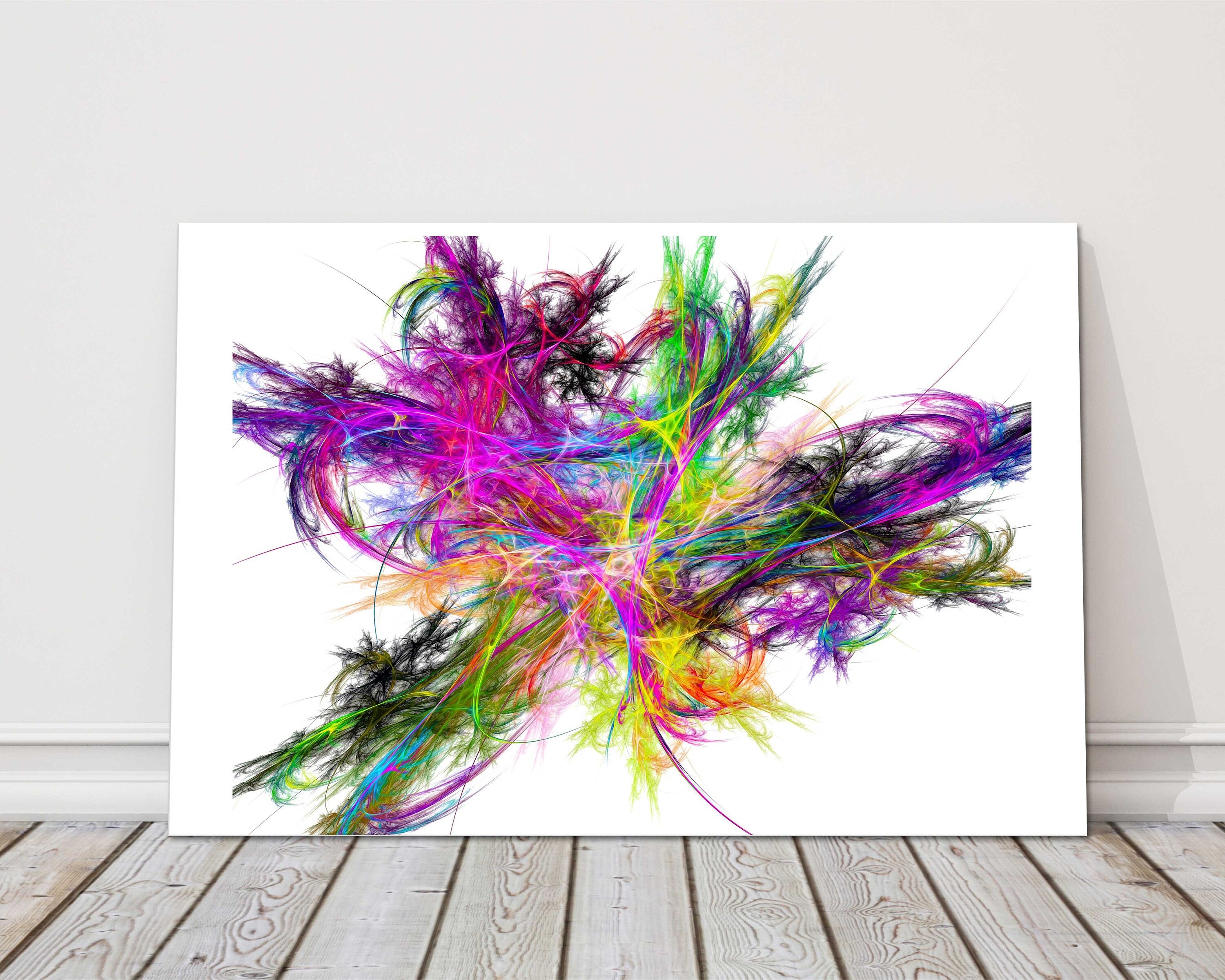Colour bursting pattern with purples and green shades set on a white background. Ideal gift for any home. Contemporary design. Choice of sizes available.