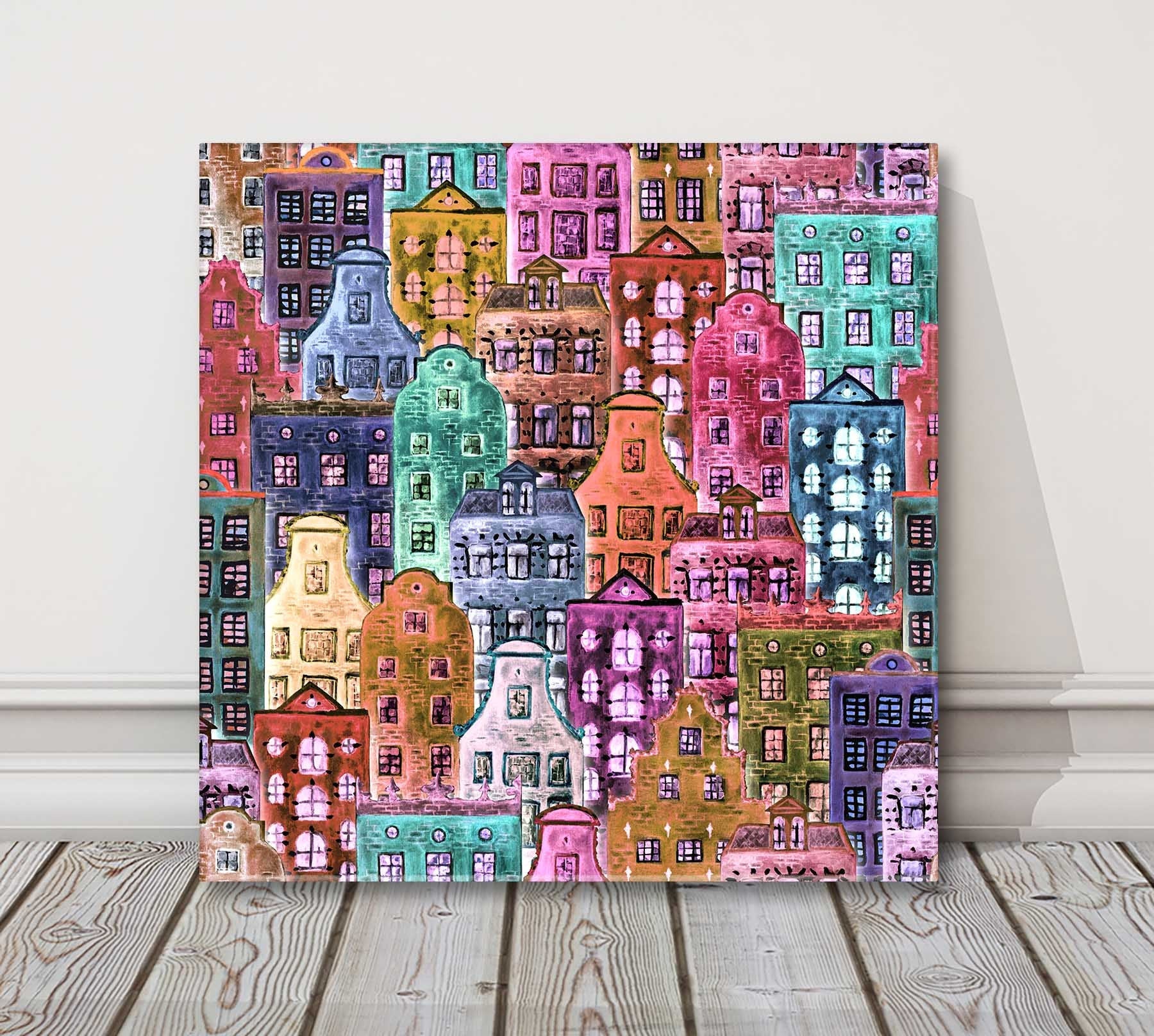Colourful European style houses. Canvas picture print. Available in choice of sizes. Nice bright wall art for any room.