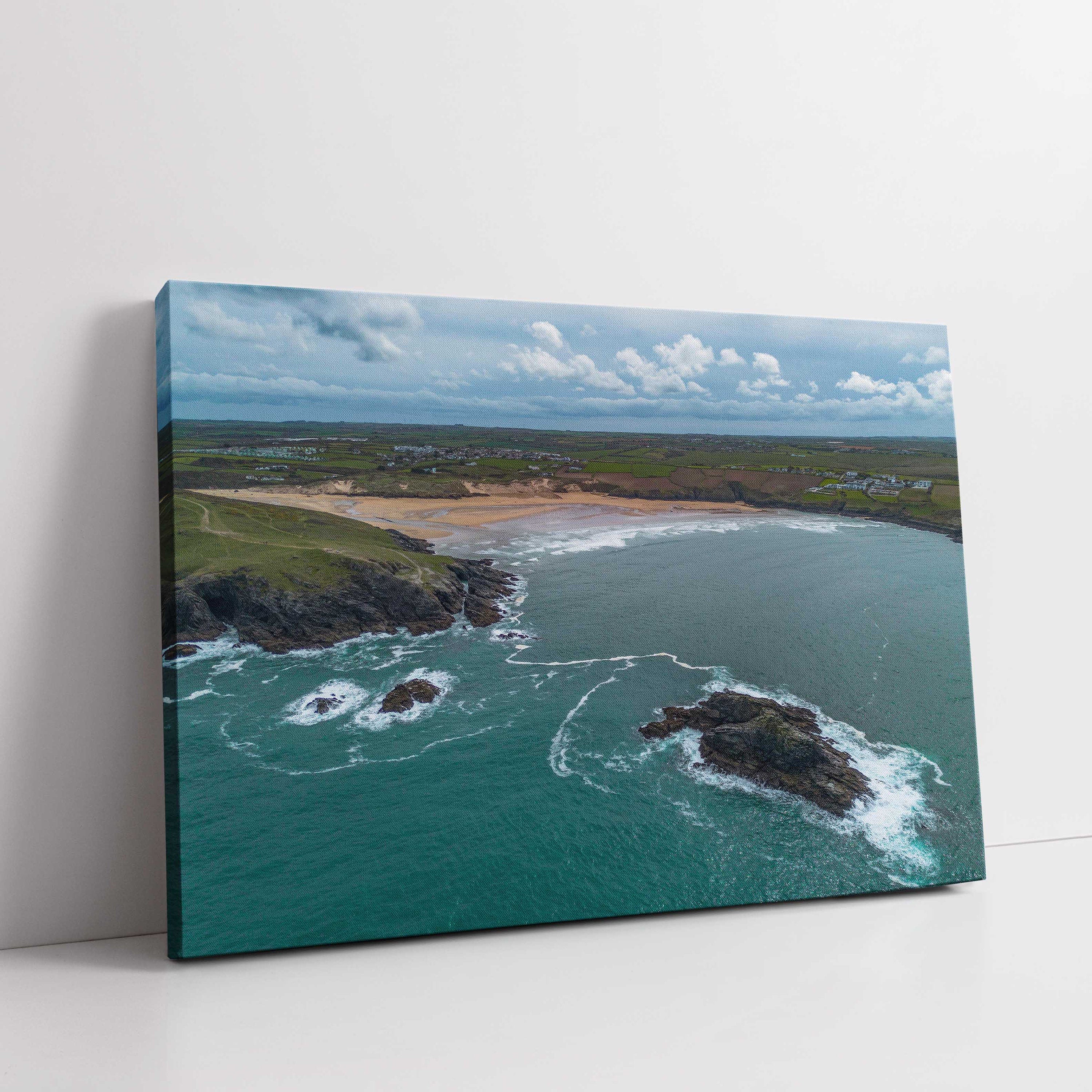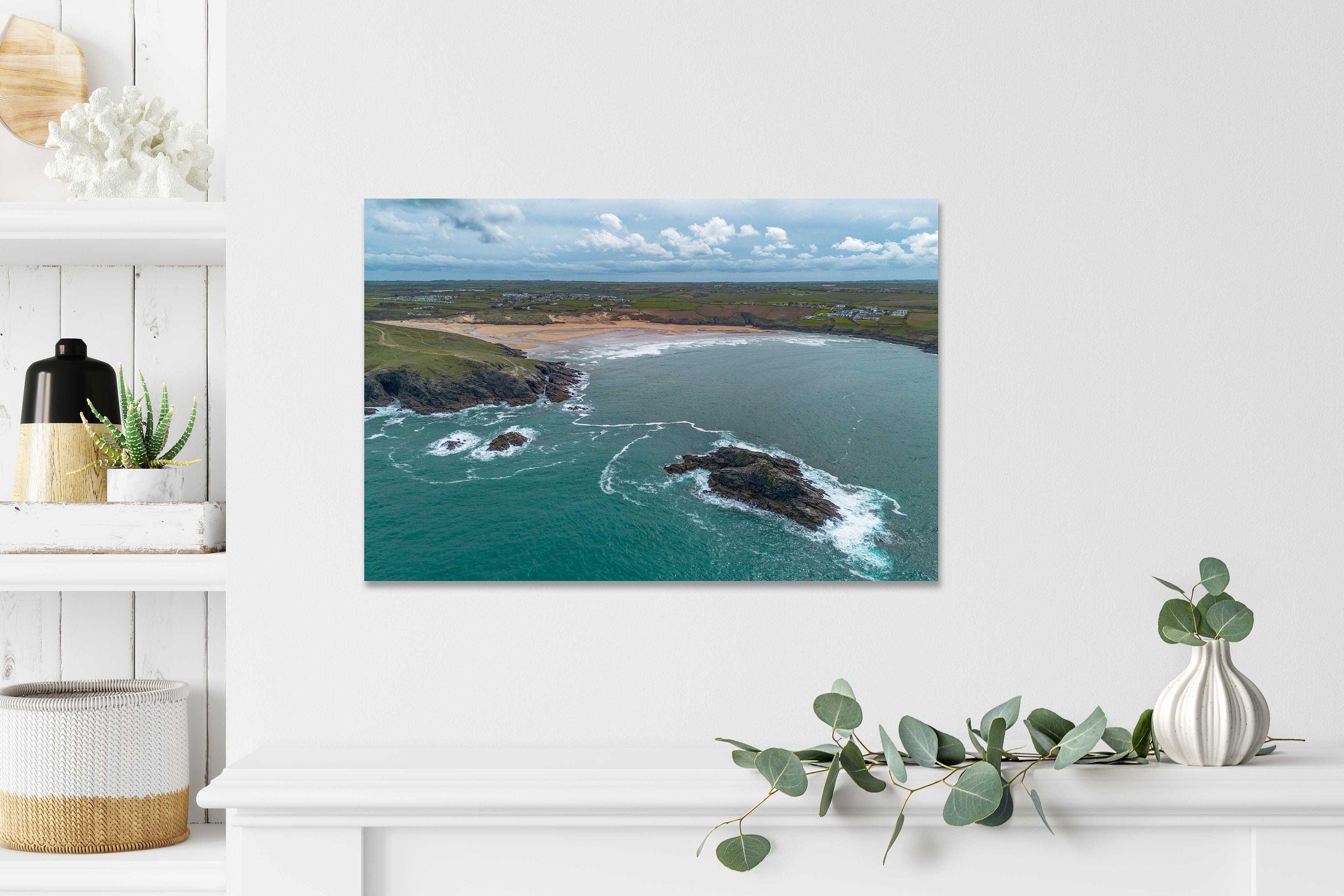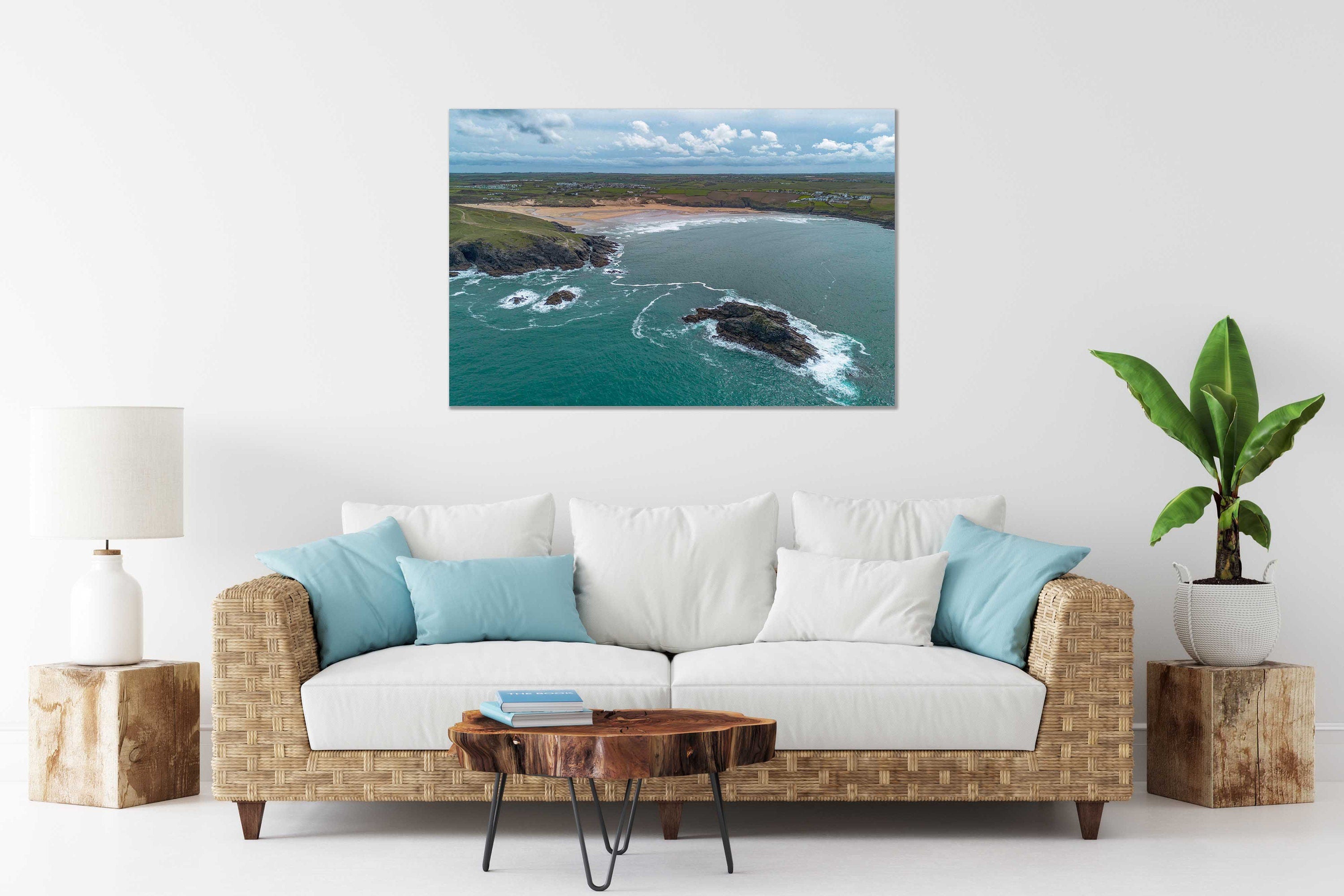 Crantock beach aerial view, Cornwall. Printed and framed as a canvas print. Wall art. Stunning scenery on North Cornwall coast.... Read more