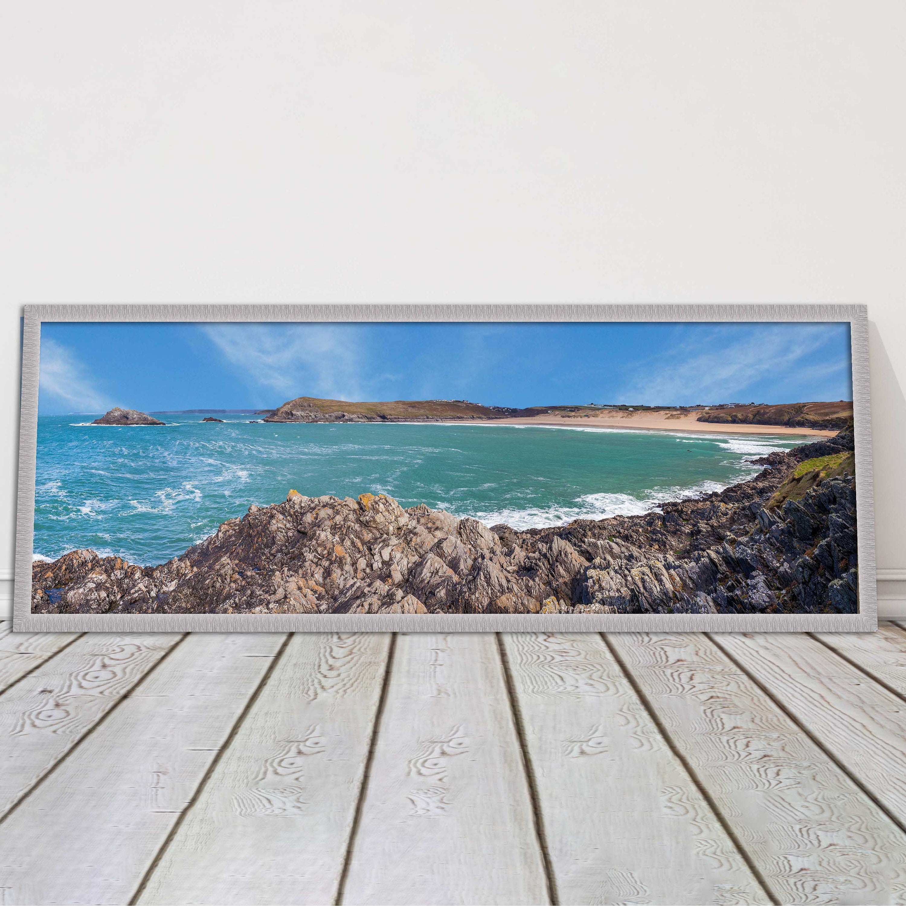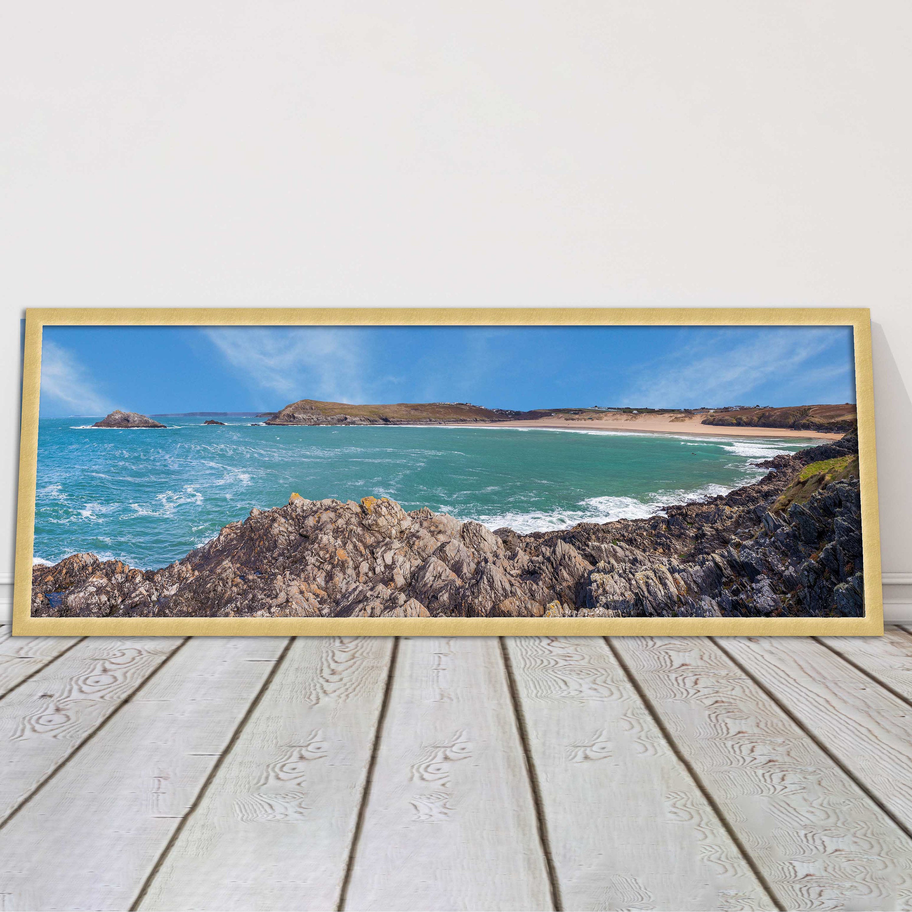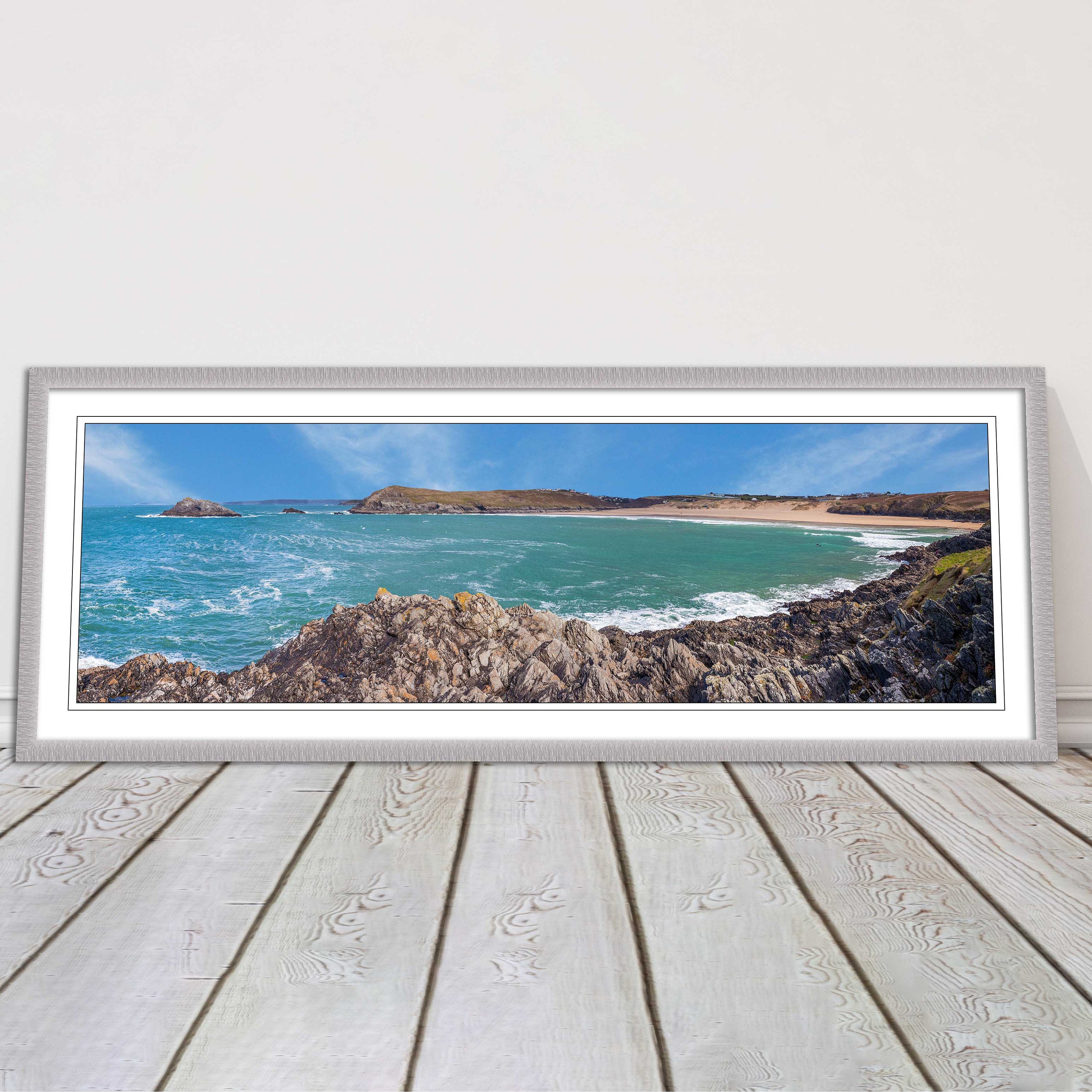 Crantock Beach at low tide. Panoramic framed picture print, Cornwall beach scene Read more