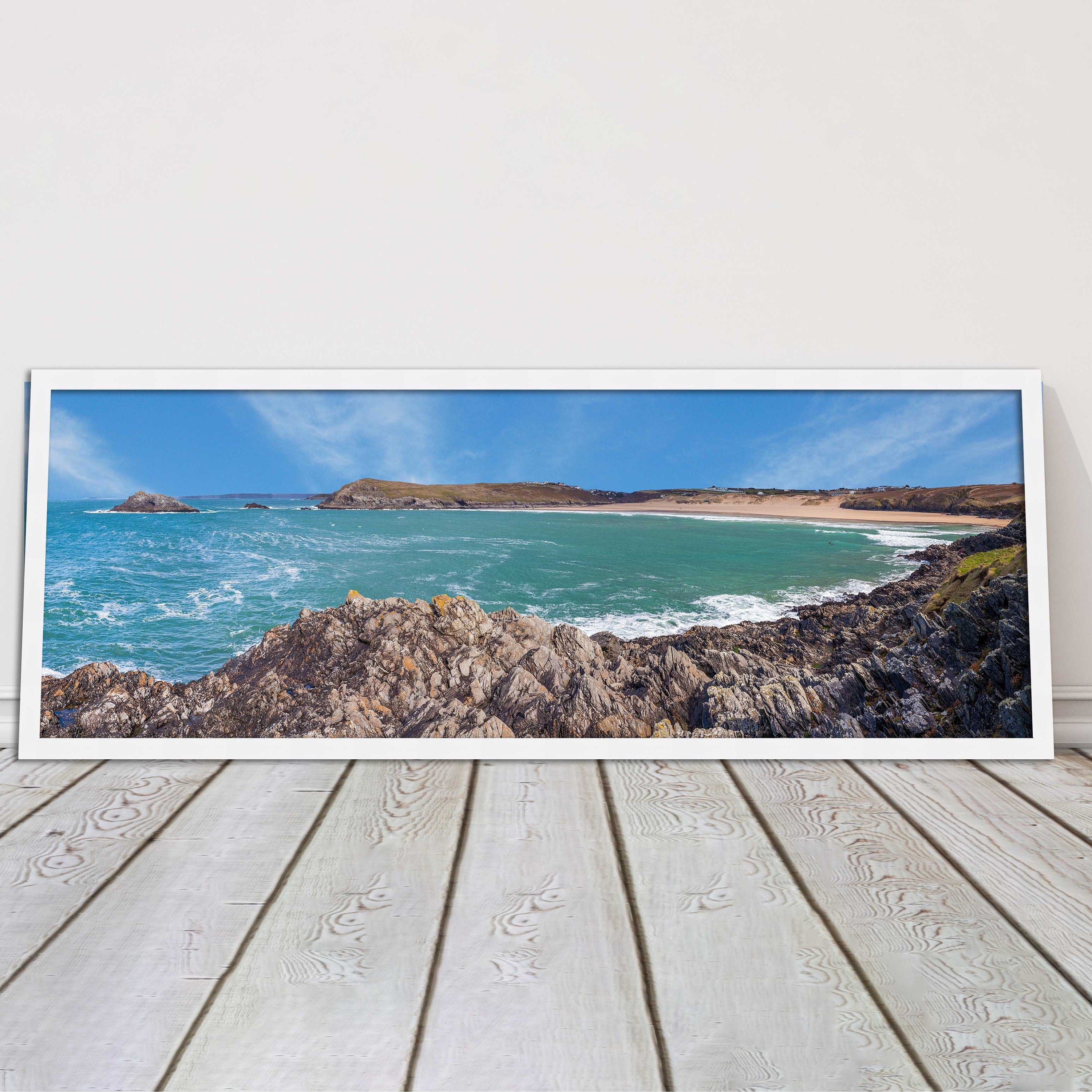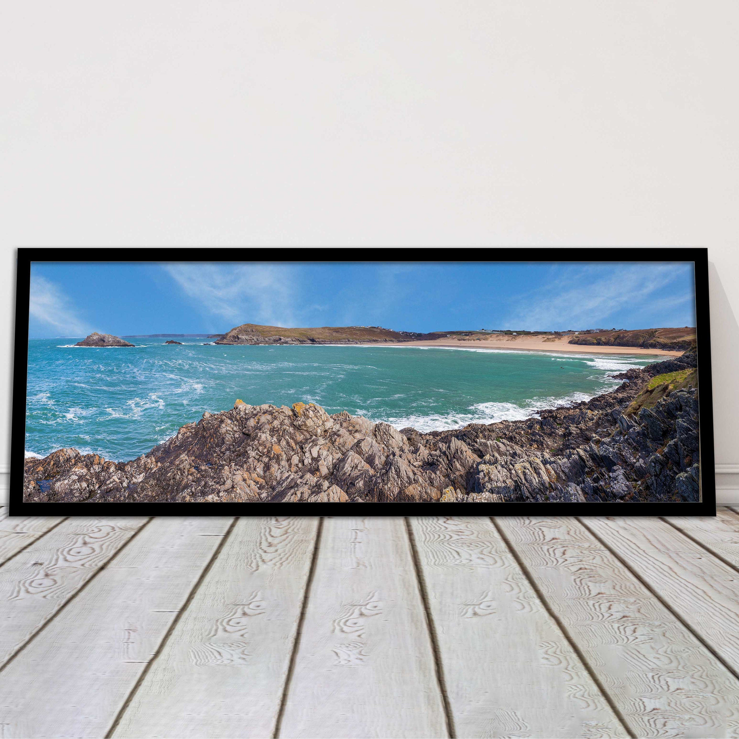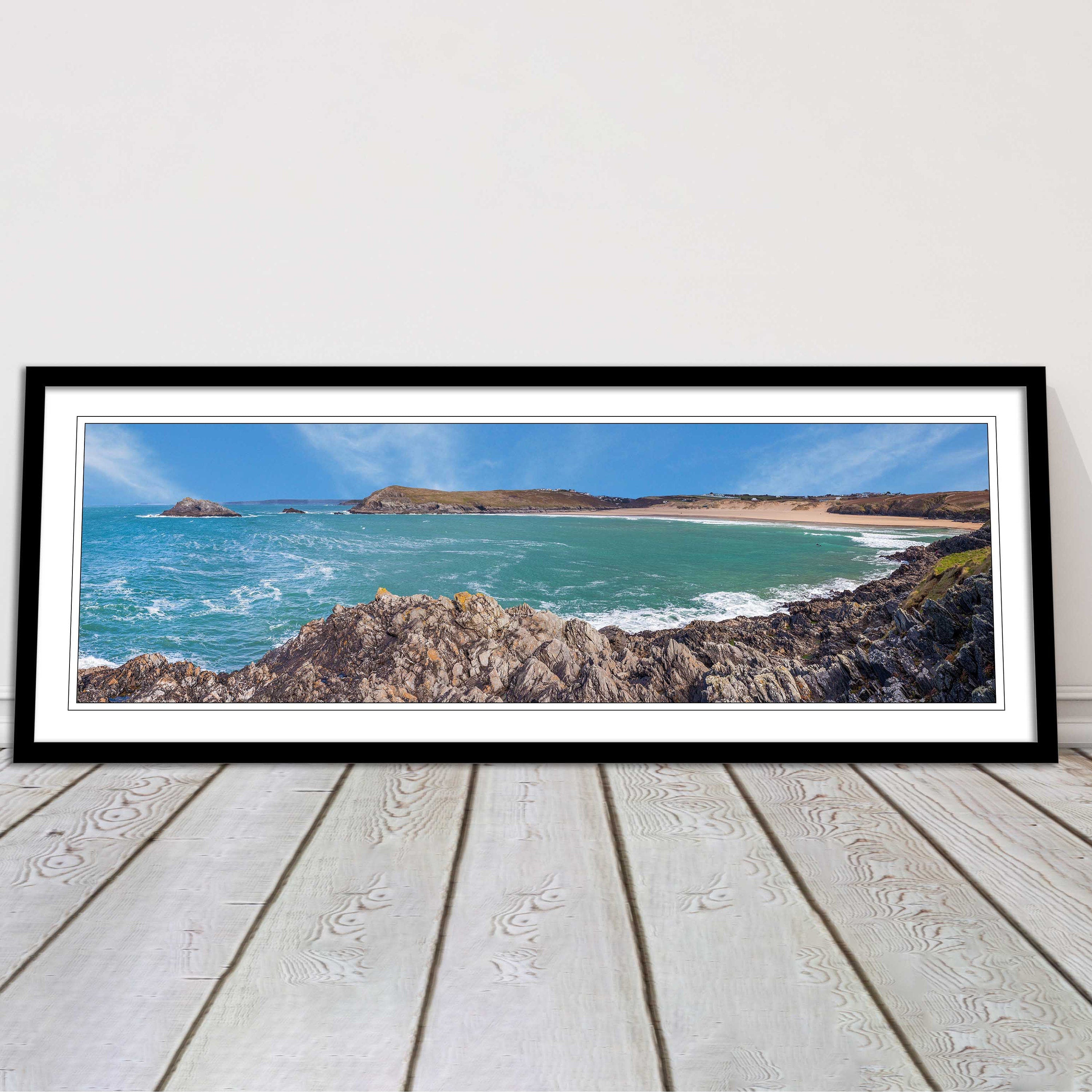 Crantock Beach at low tide. Panoramic framed picture print, Cornwall beach scene Read more
