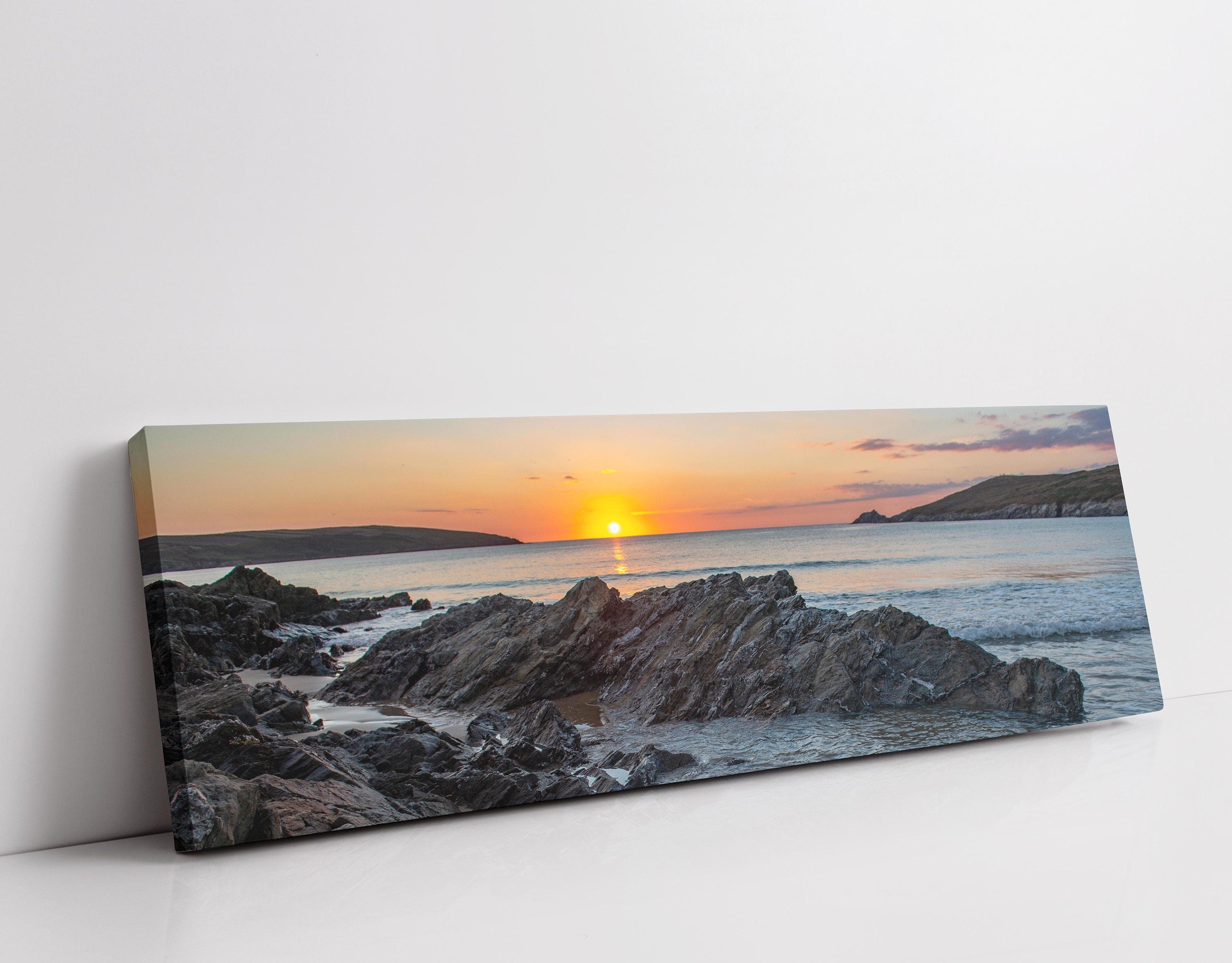 Crantock Beach at sunset. Panoramic canvas picture print. Available in a choice of sizes.
