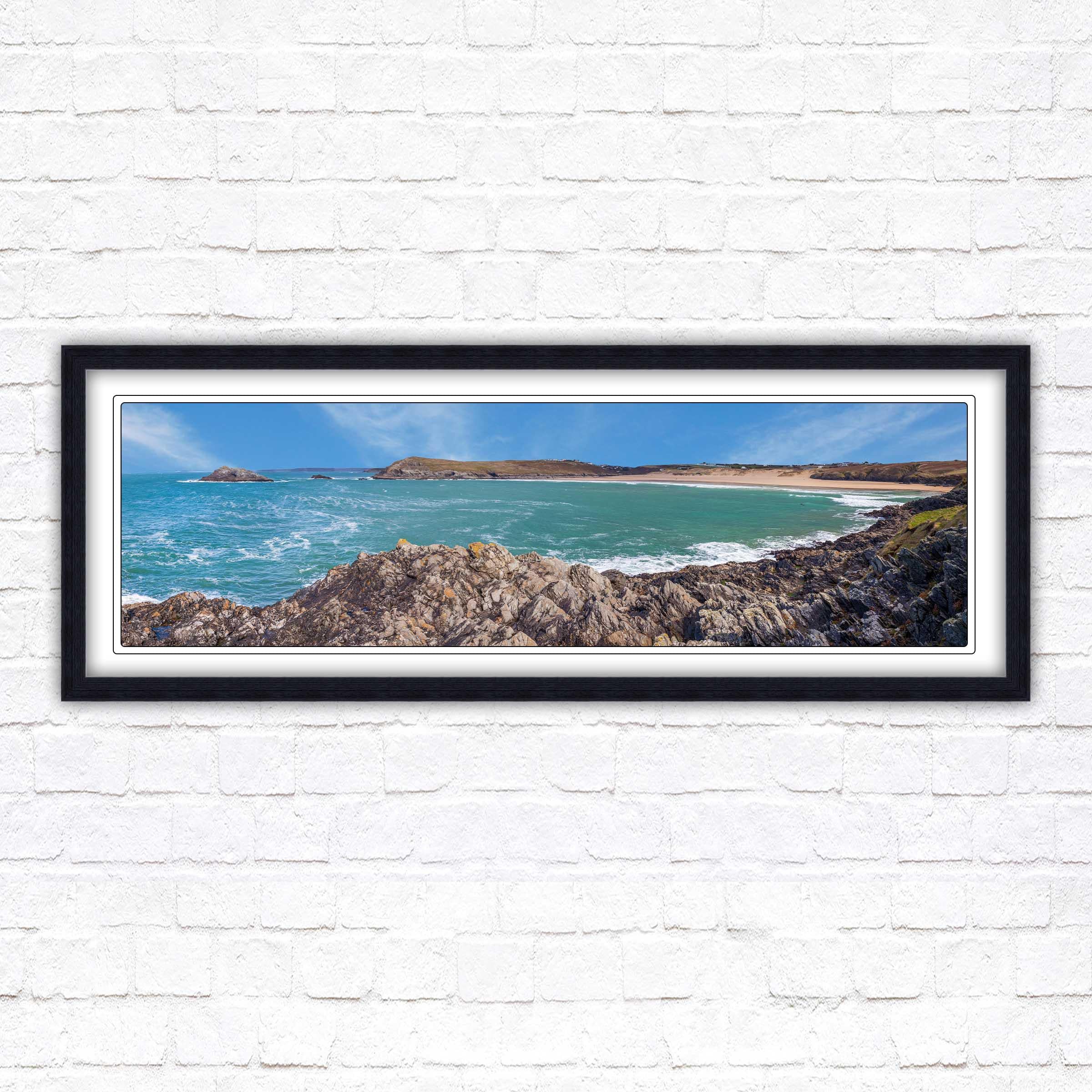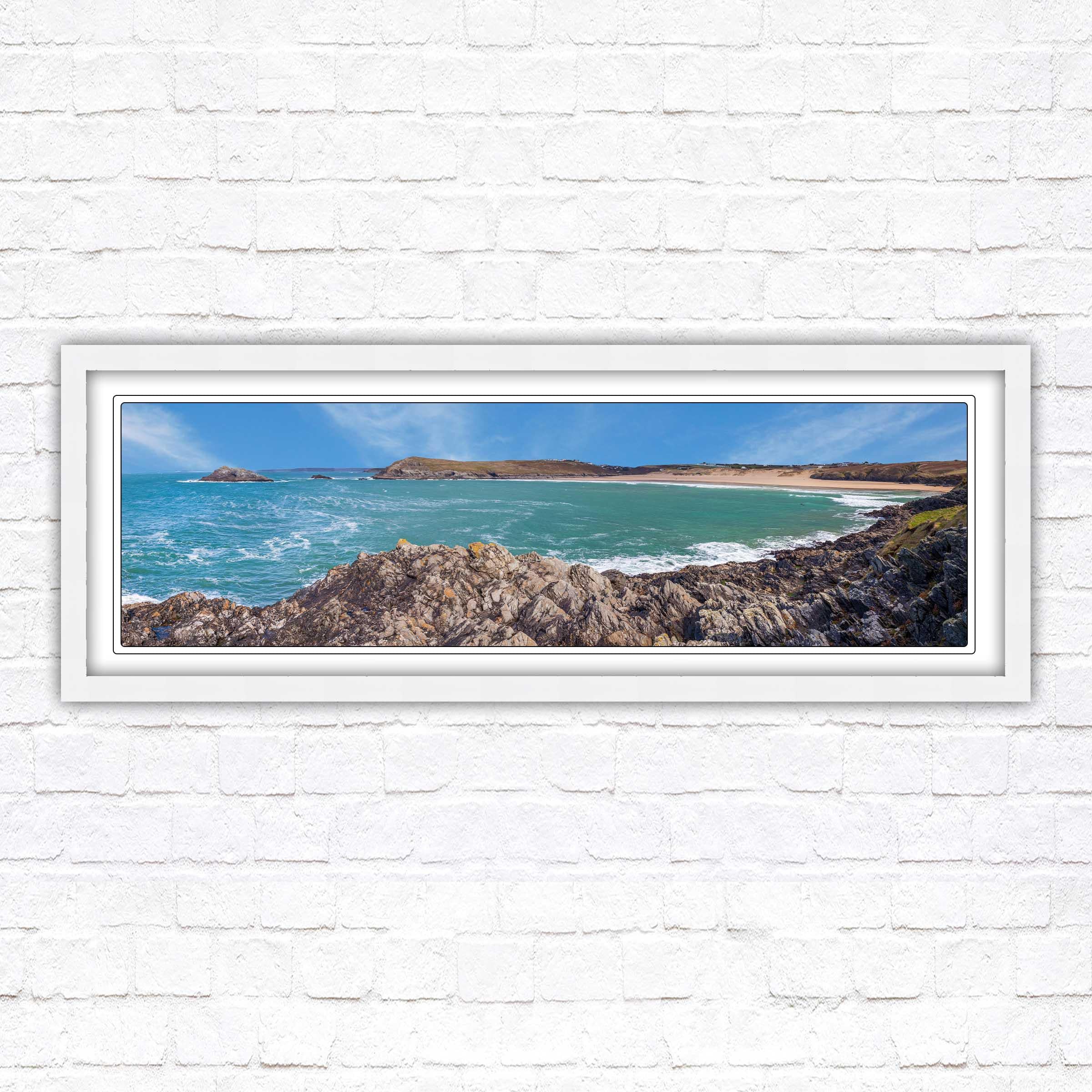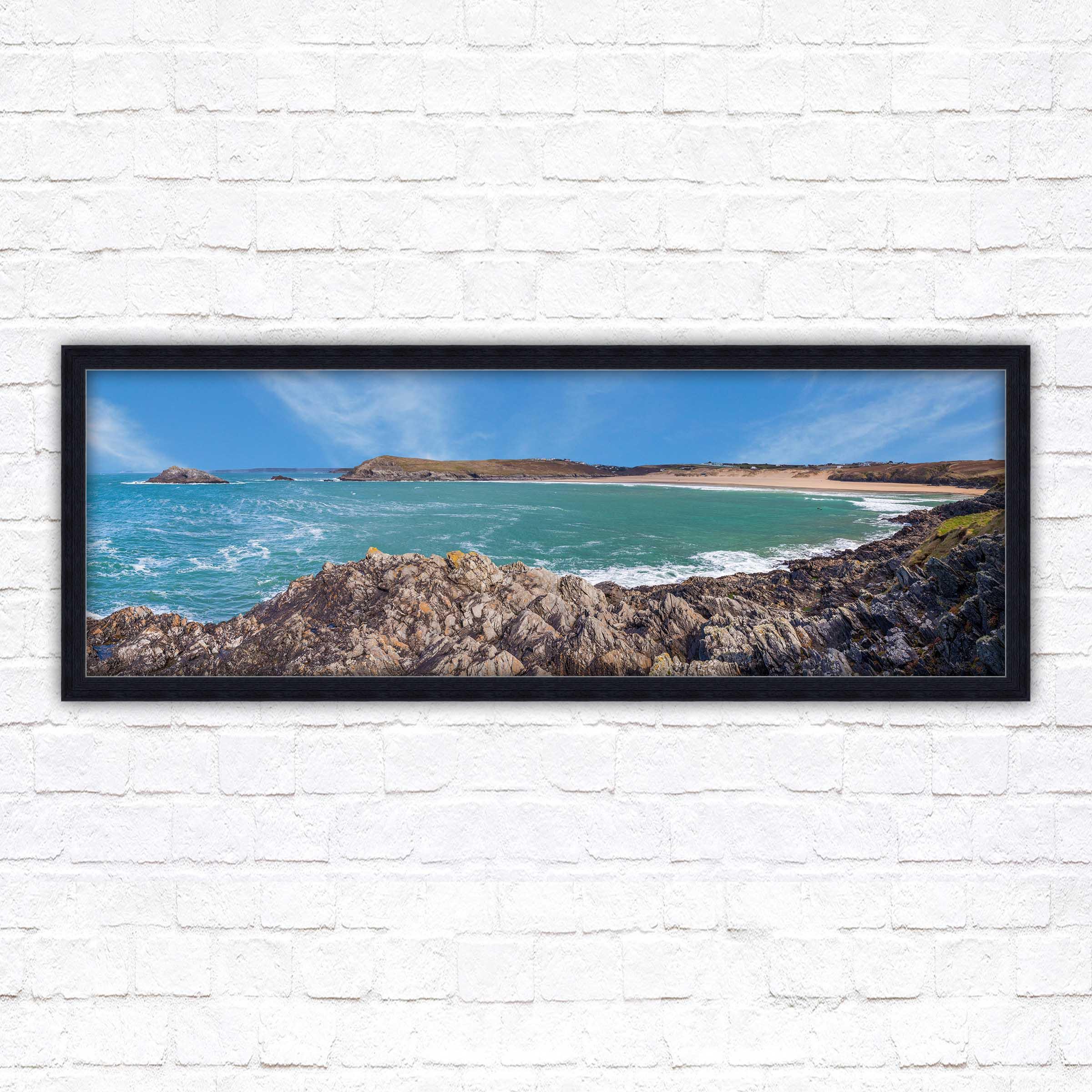 A beautiful panoramic framed picture of Crantock Beach in Cornwall. View from West Pentire. A choice of frames available.