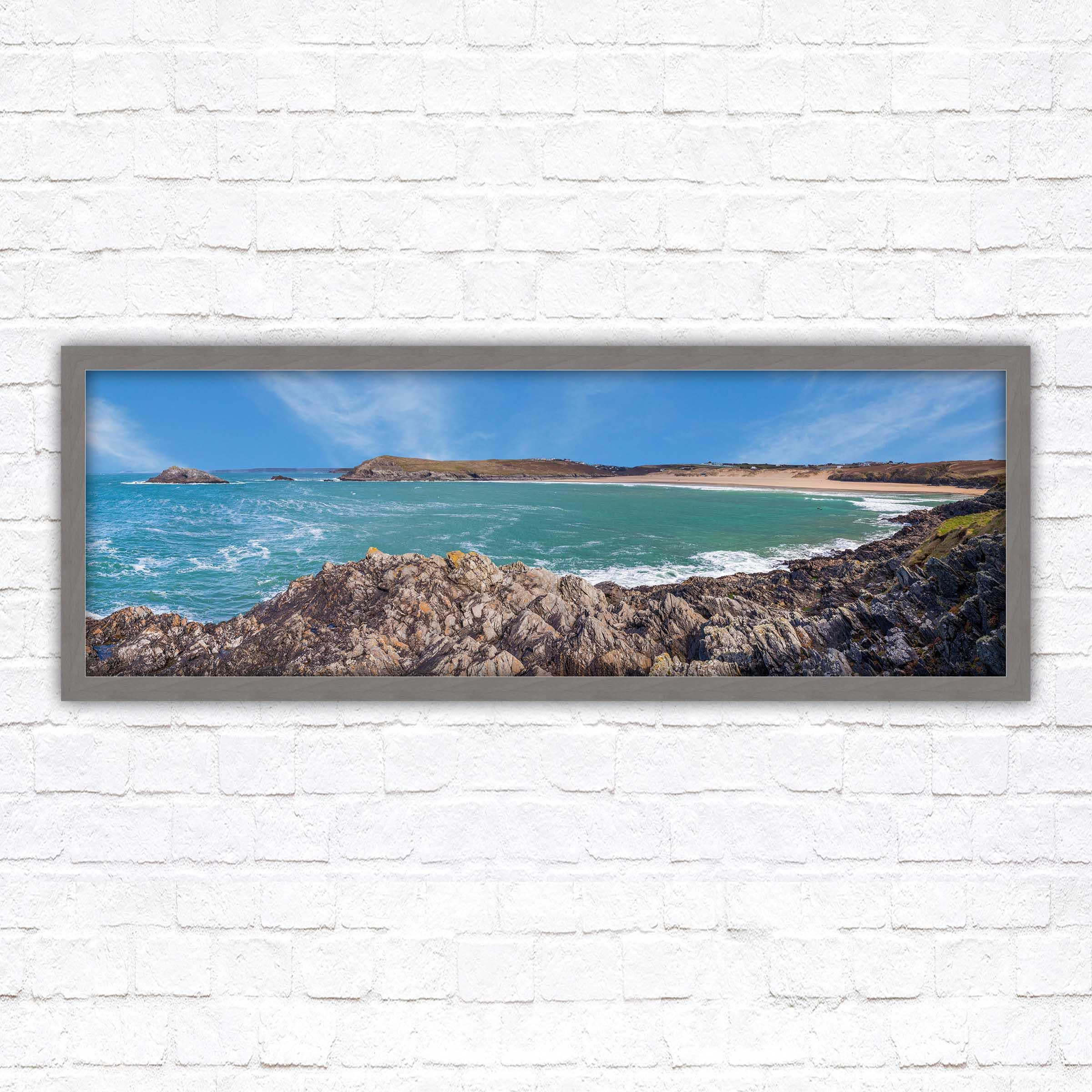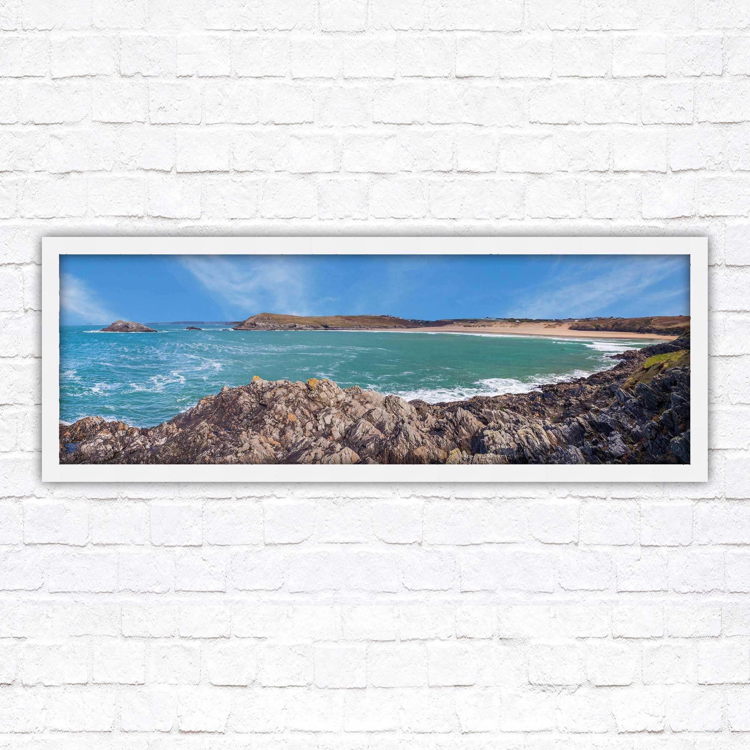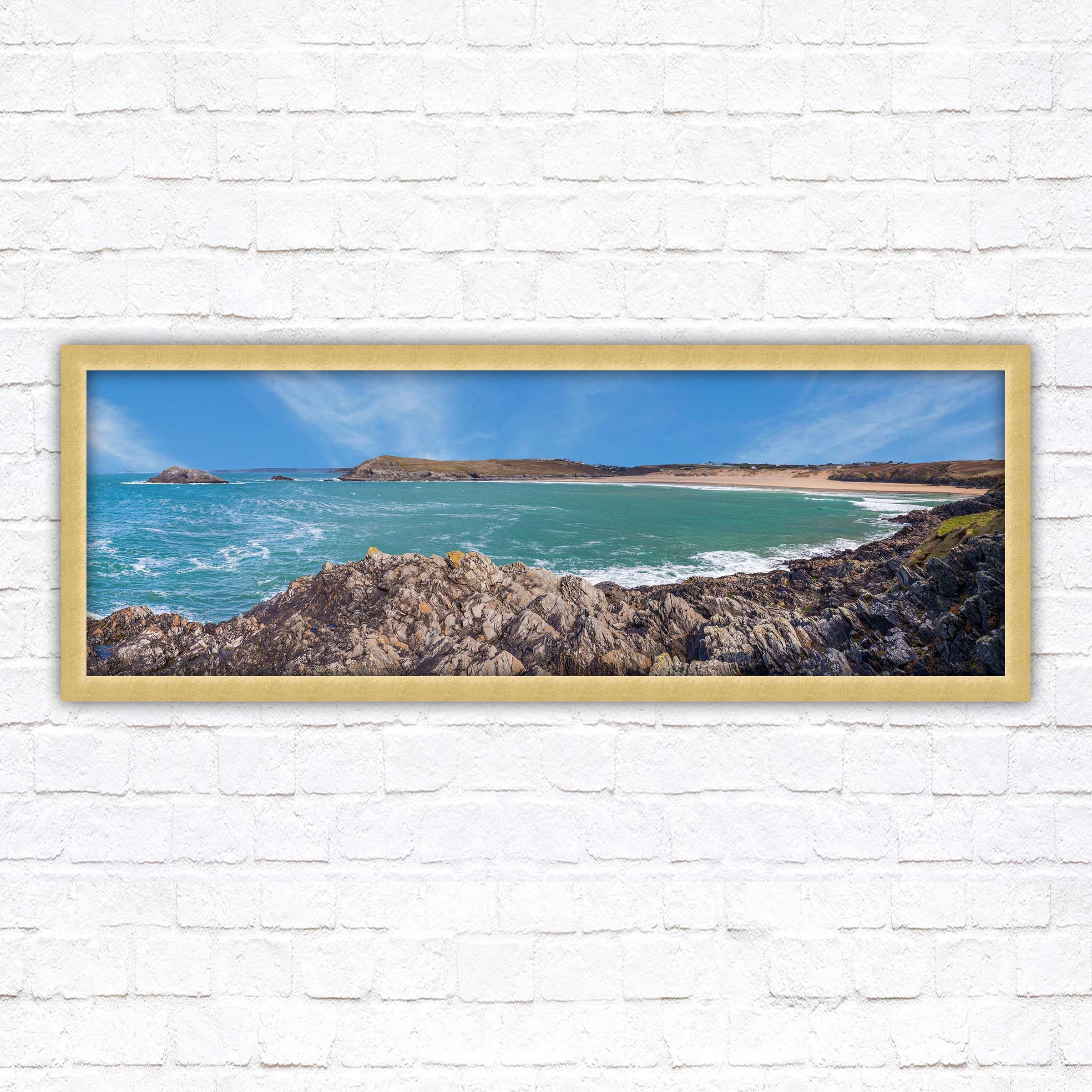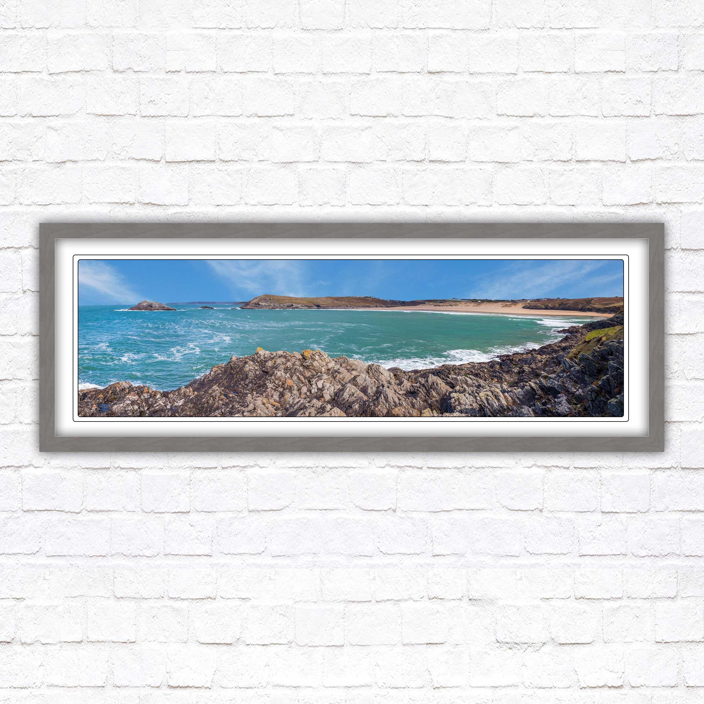 A beautiful panoramic framed picture of Crantock Beach in Cornwall. View from West Pentire. A choice of frames available.