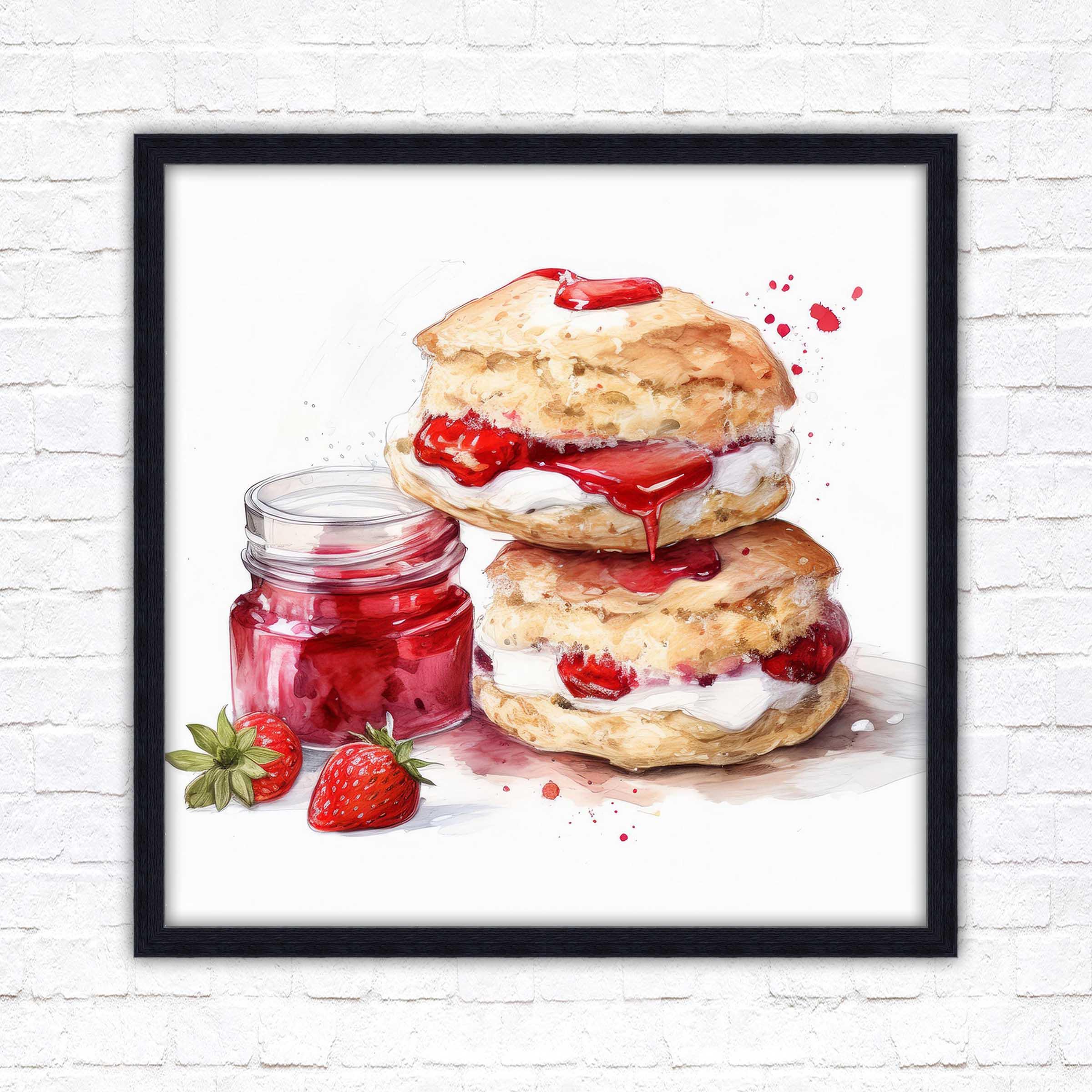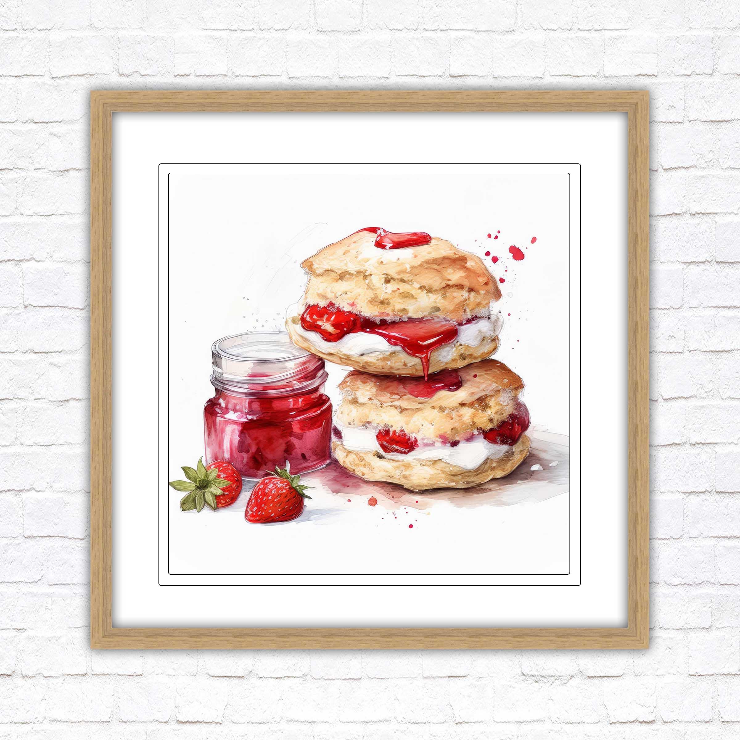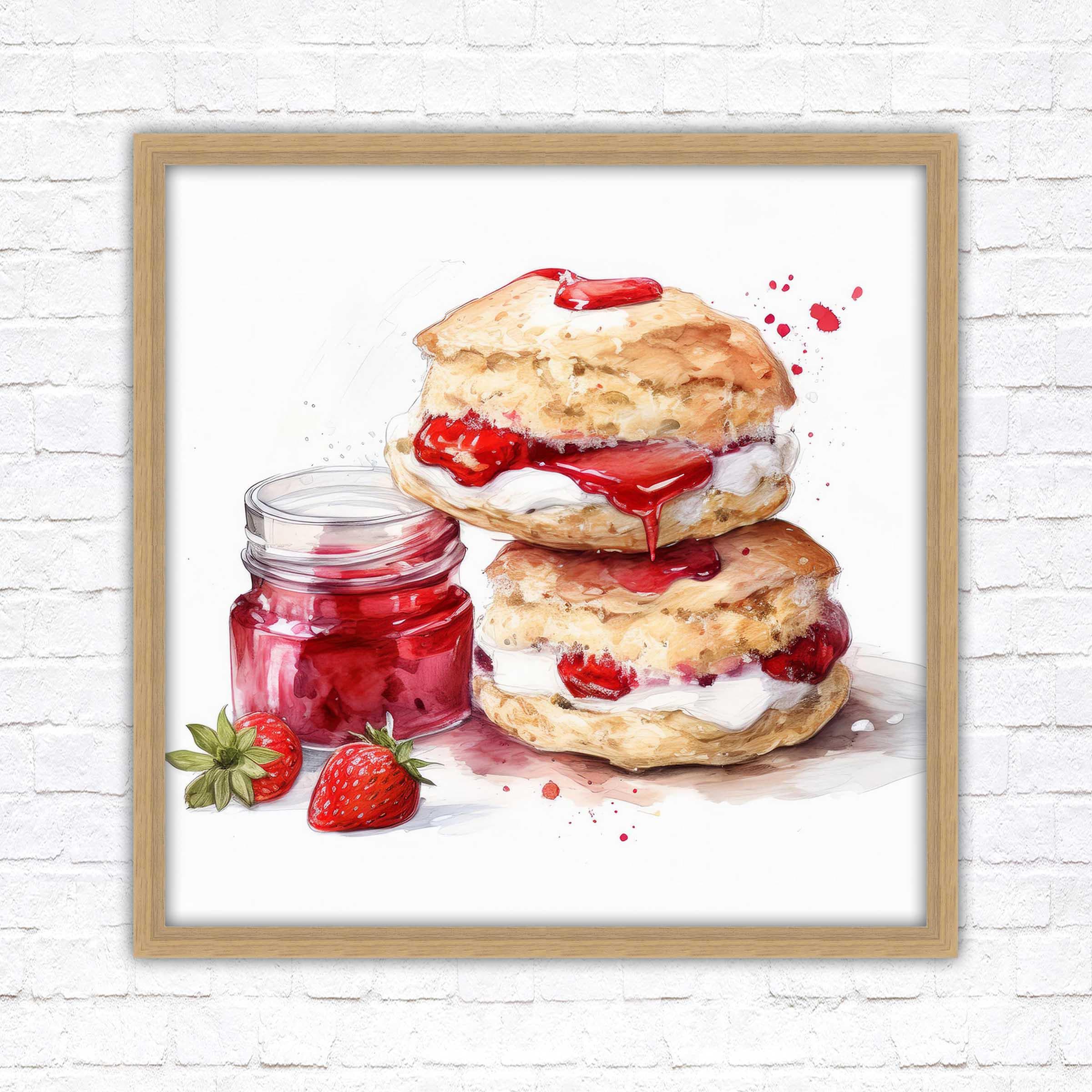 Cream Tea Watercolour Painting picture print – Framed and Ready to Display!