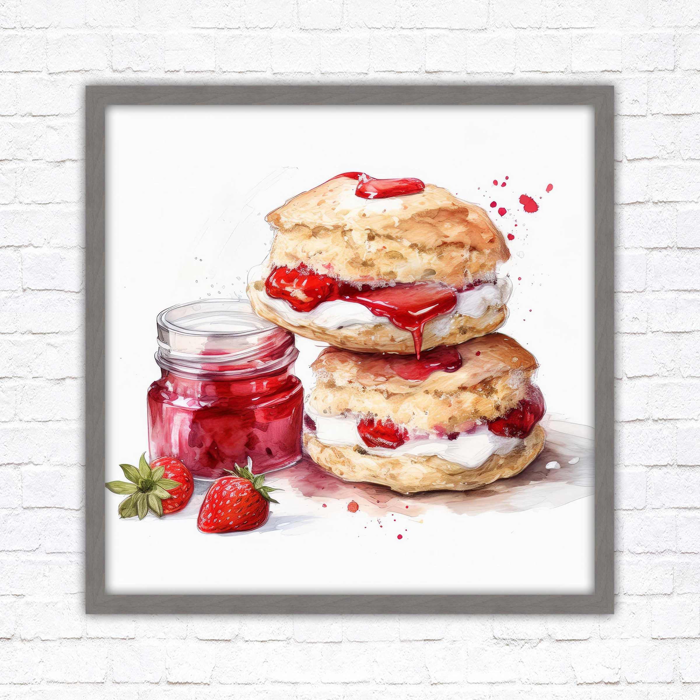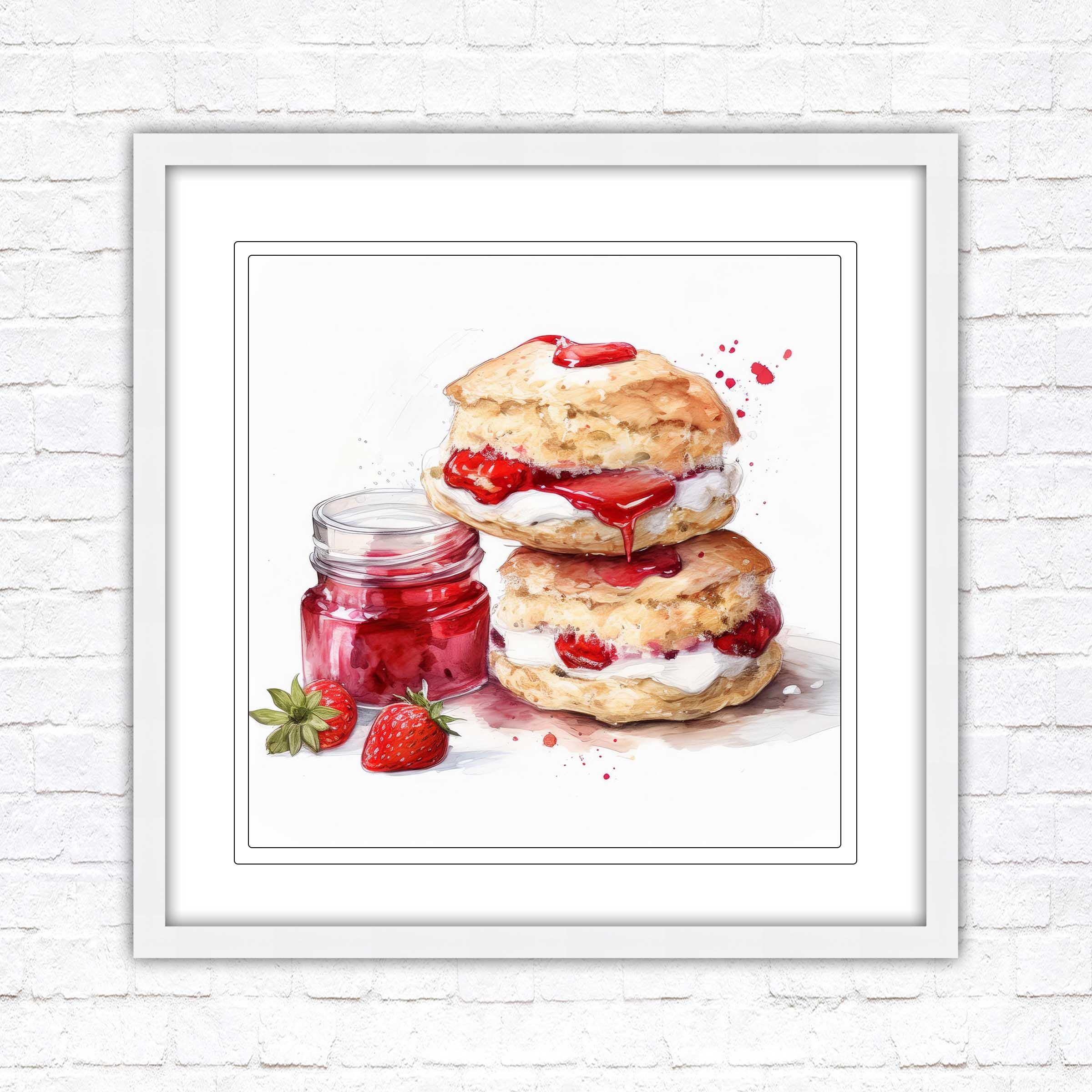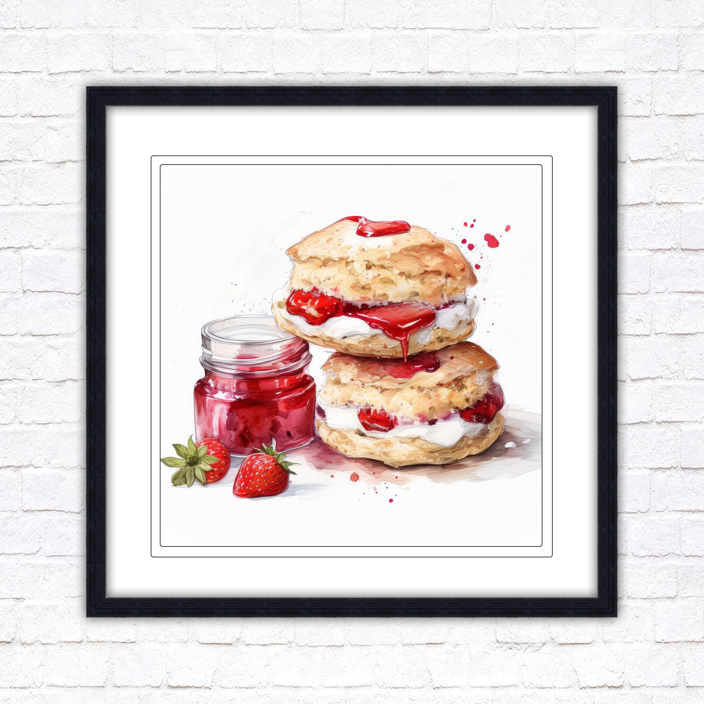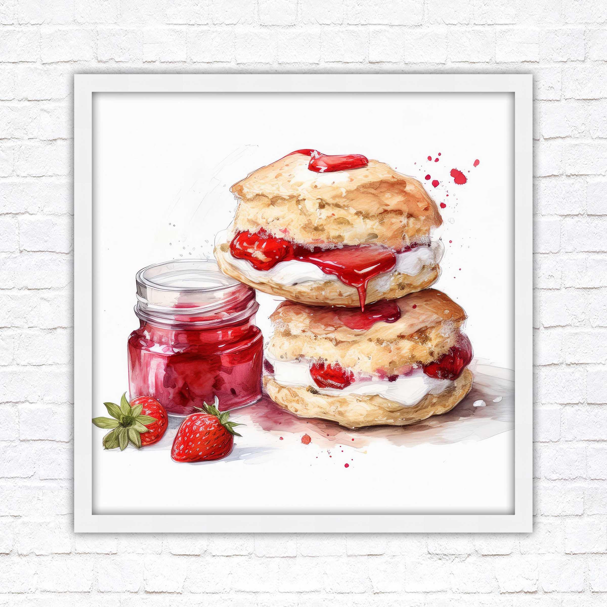 Cream Tea Watercolour Painting picture print – Framed and Ready to Display!