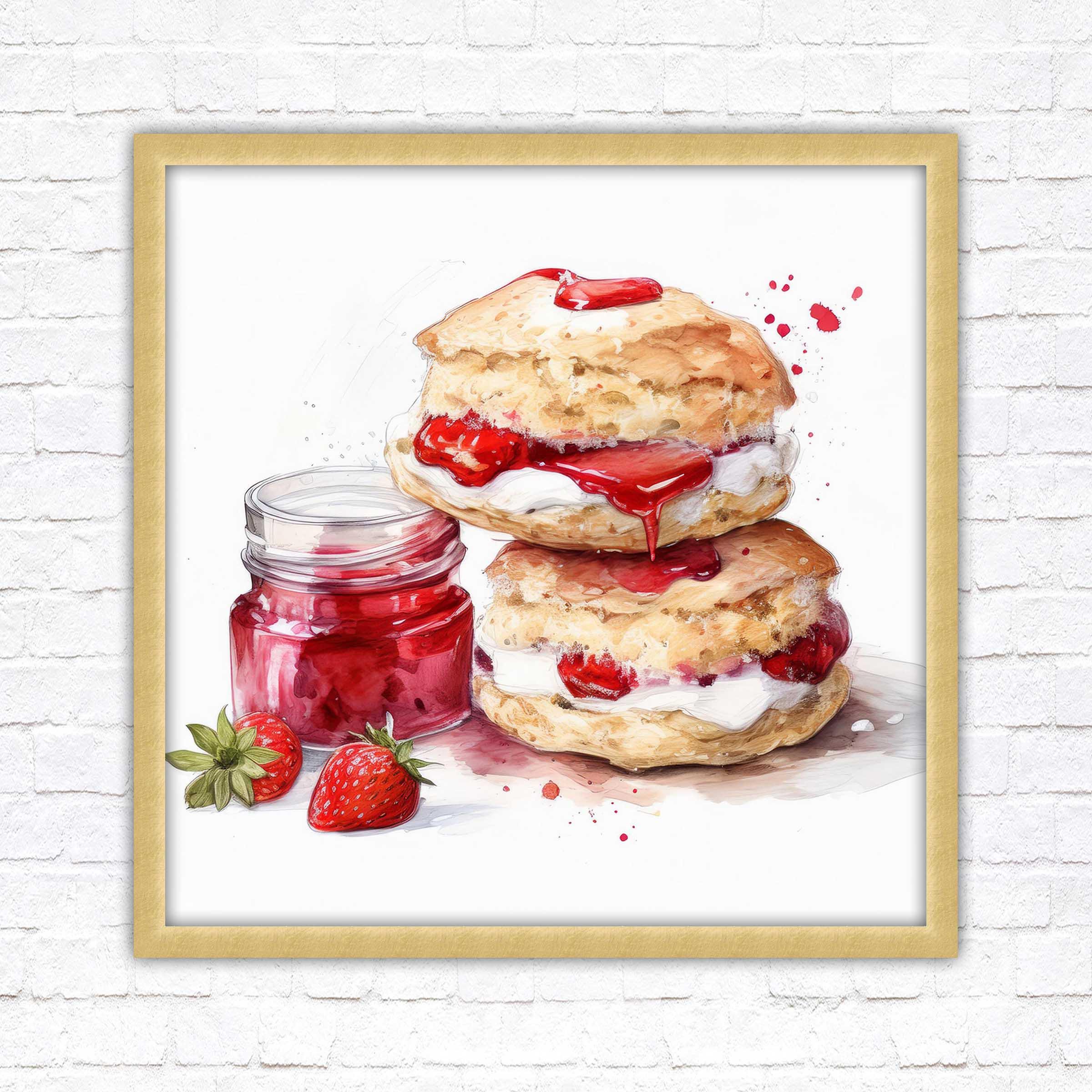 Transport yourself to a delightful afternoon tea with this exquisite watercolour picture, beautifully capturing the essence of a traditional cream tea. Featuring delicate scones, jam, and clotted cream, it’s a perfect blend of elegance and warmth.