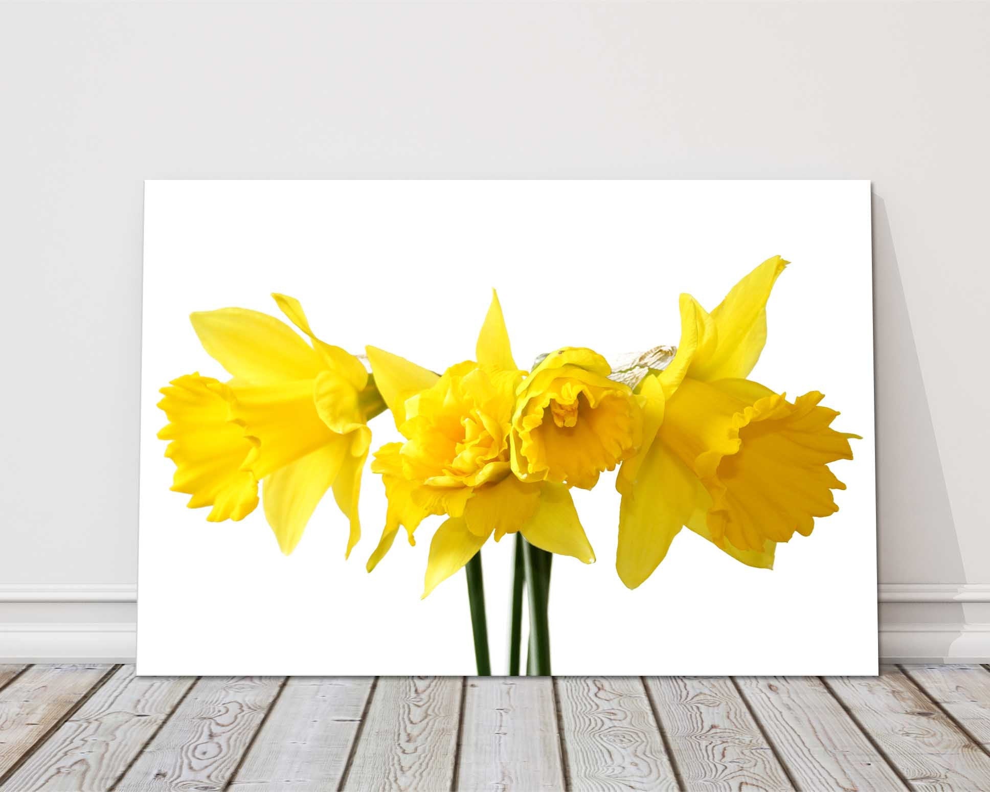 Daffodils on a white background bright and vibrant canvas picture print yellow