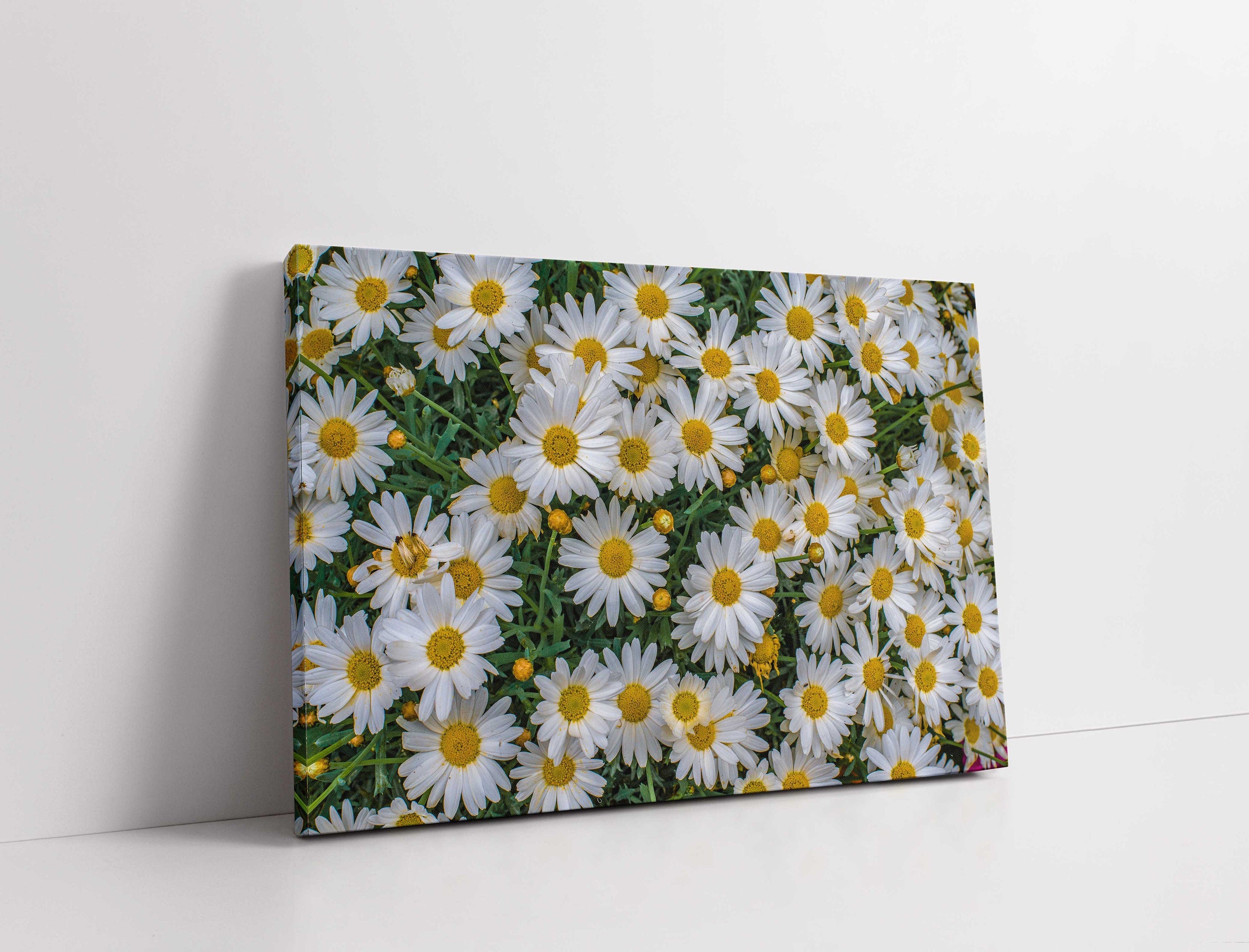 Daisies flowers white yellow green canvas picture print