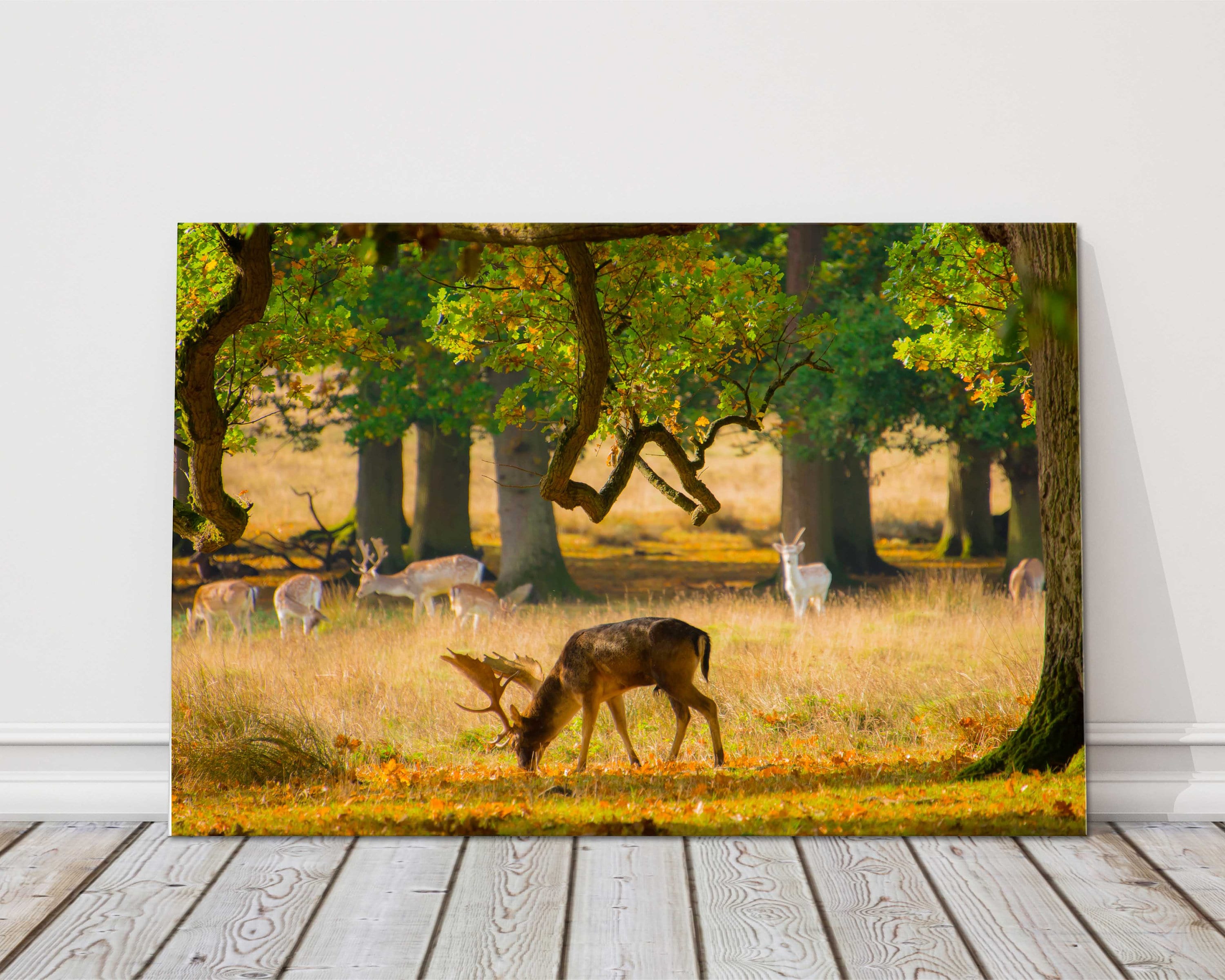 DECSRIPTION Woodland deer. Beautiful countryside image. Printed and framed as a canvas picture print, with a choice of sizes available... Read more