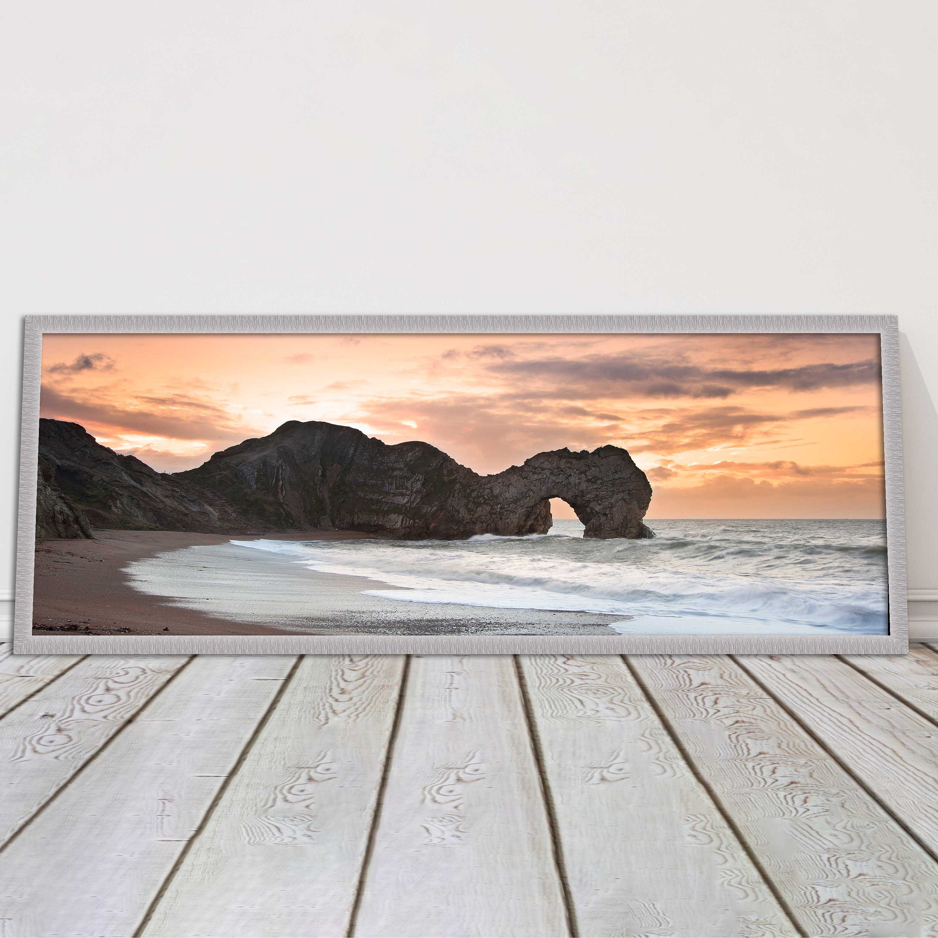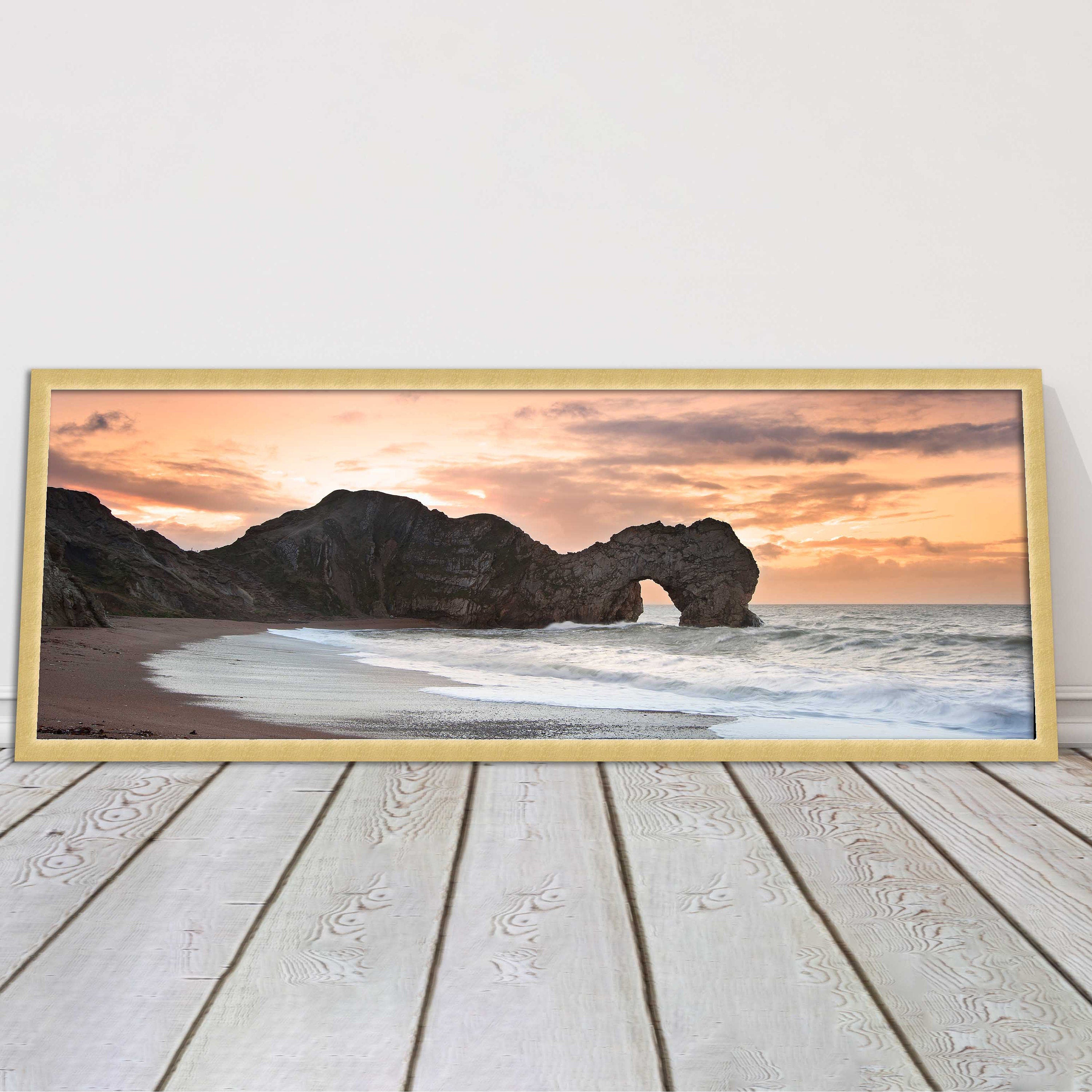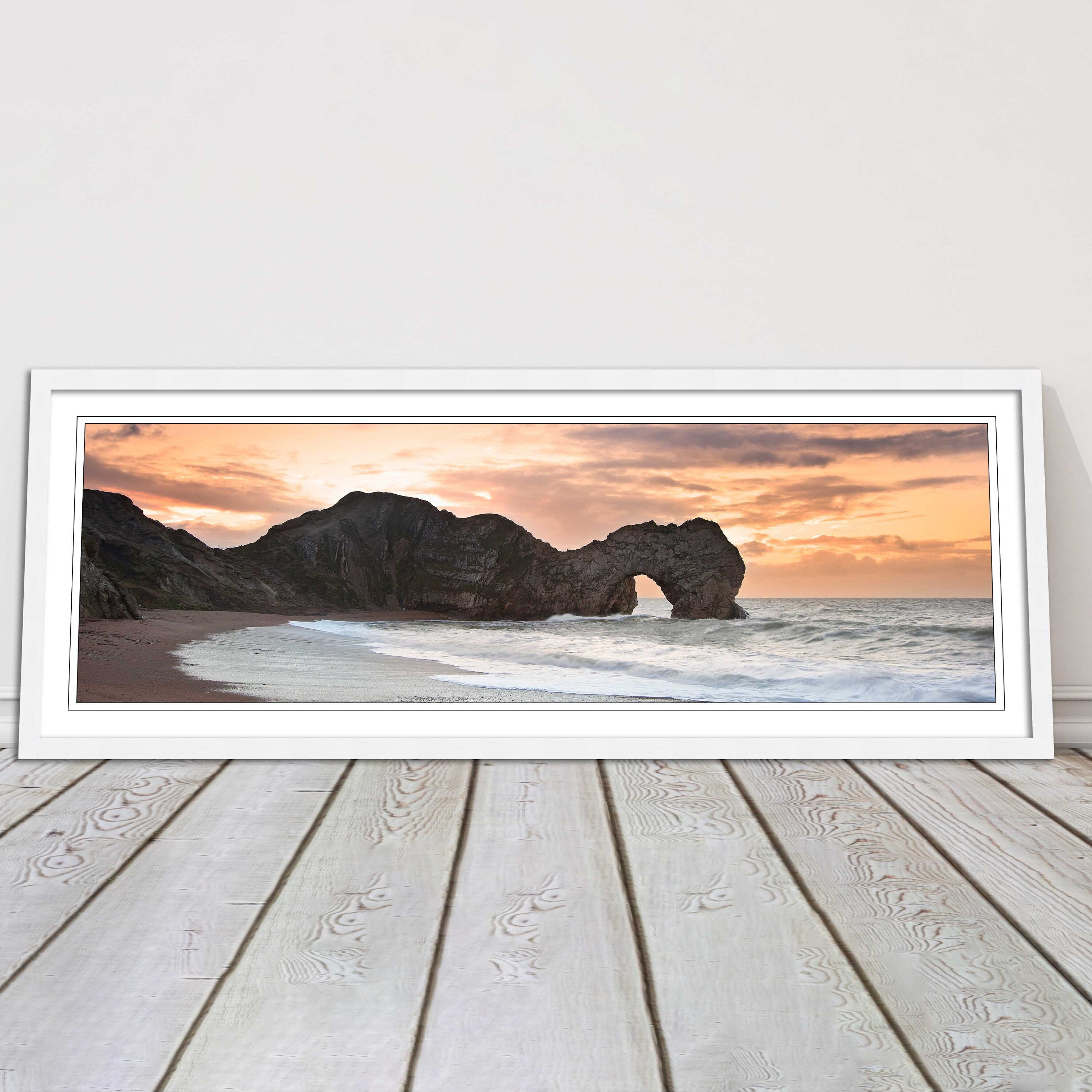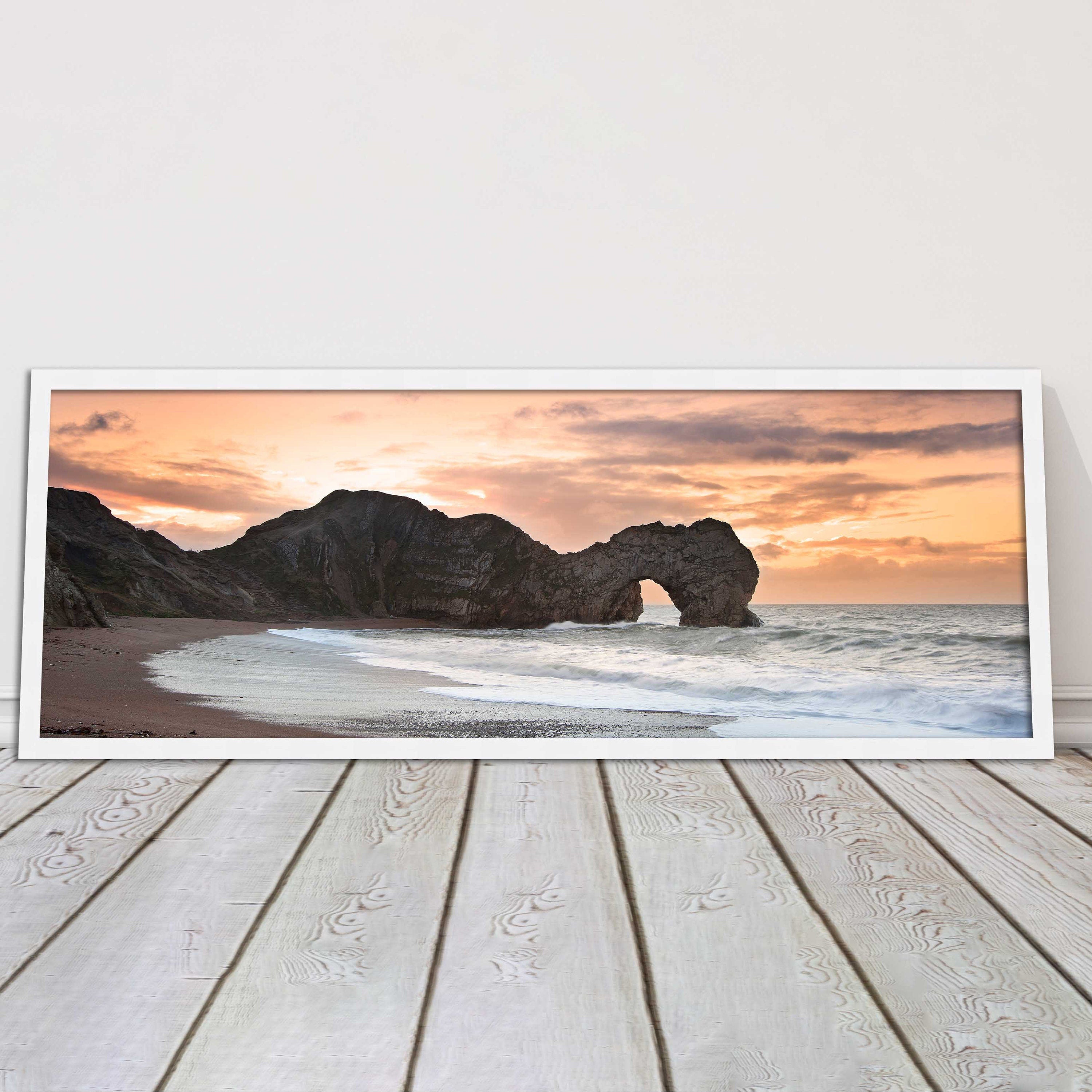 A beautiful panoramic framed picture of Durdledoor at sunset. Dorset coastline. A choice of frames available.