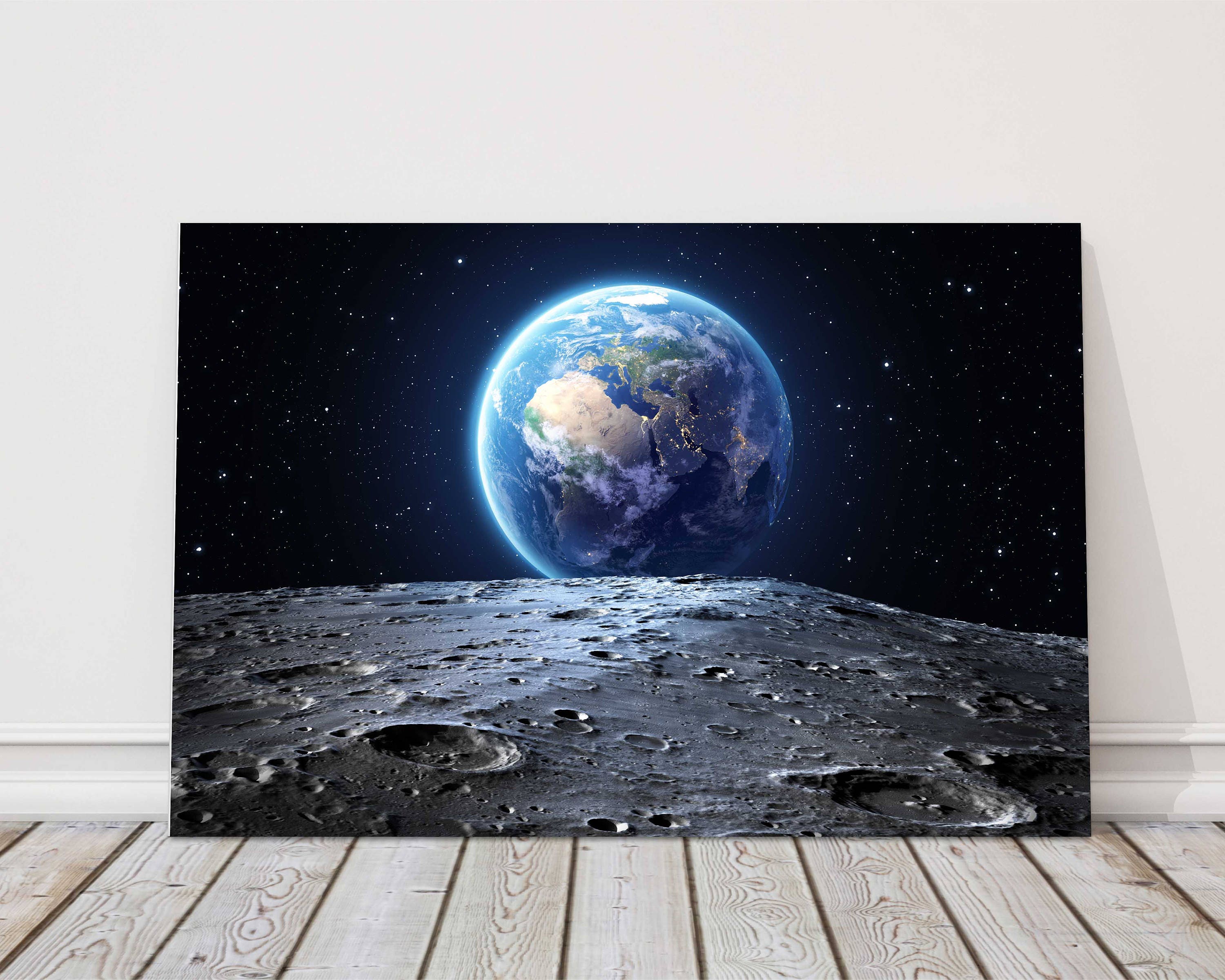 DESCRIPTION Earth pictured from the moon. Picture printed and framed as a canvas print. Available in a choice of sizes.... Read more