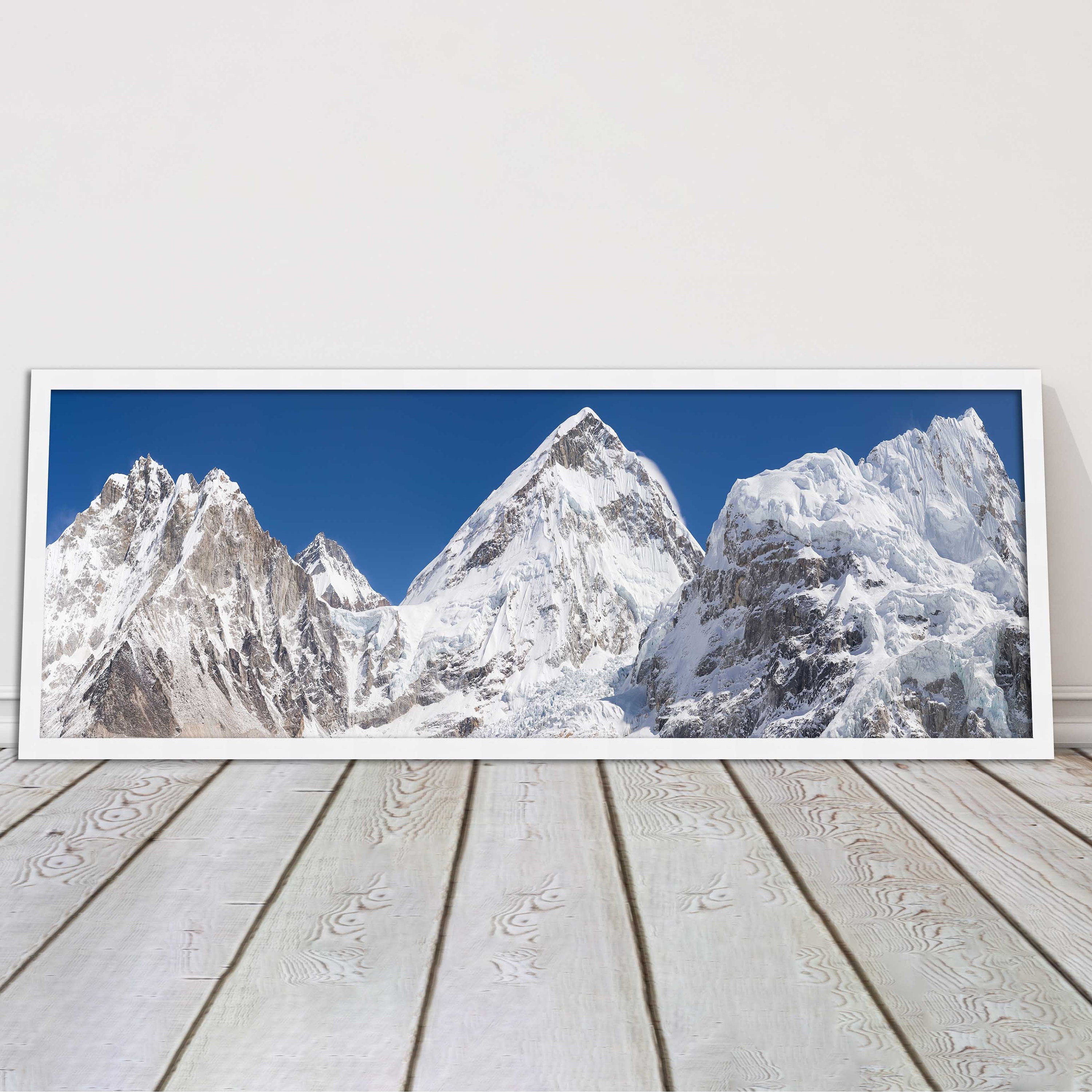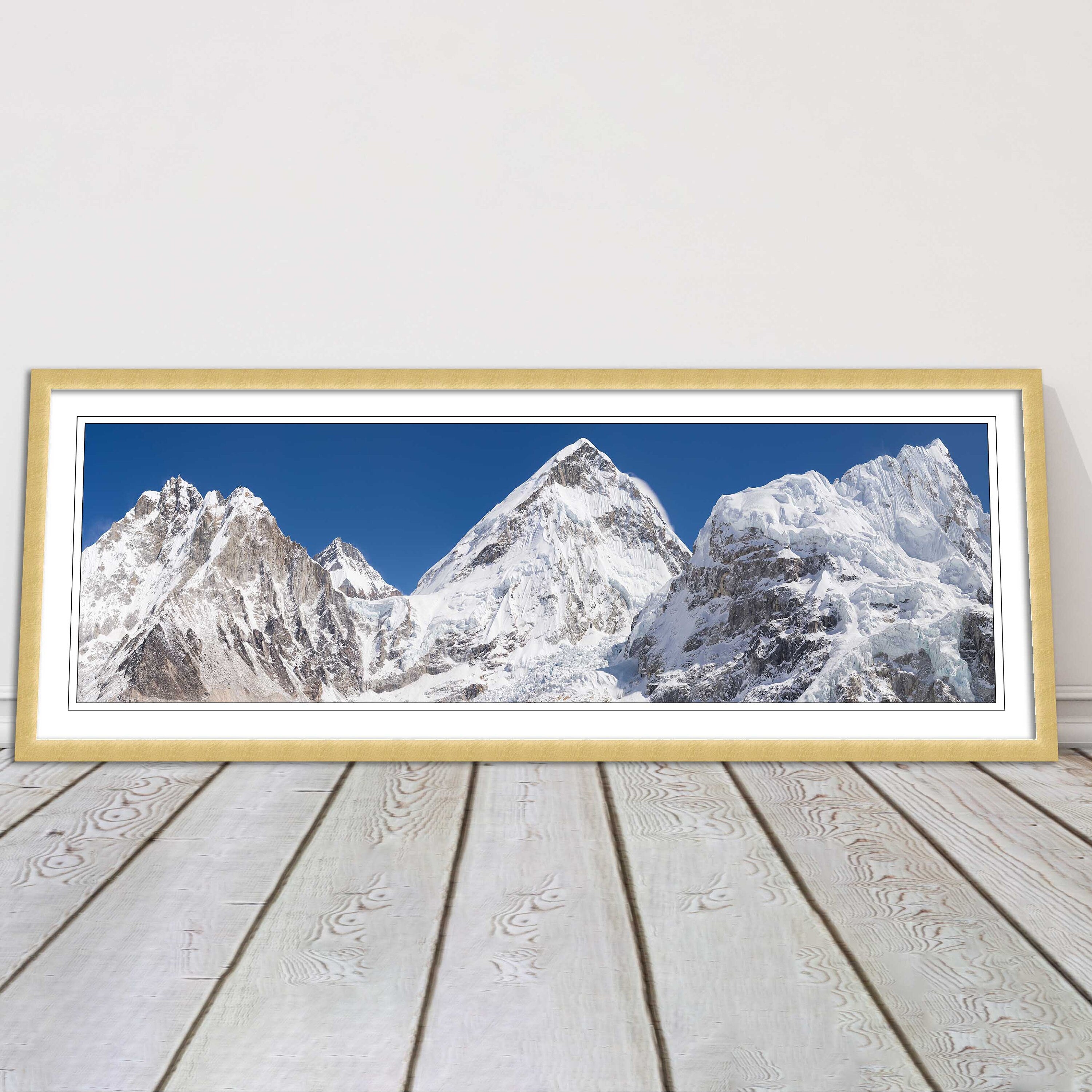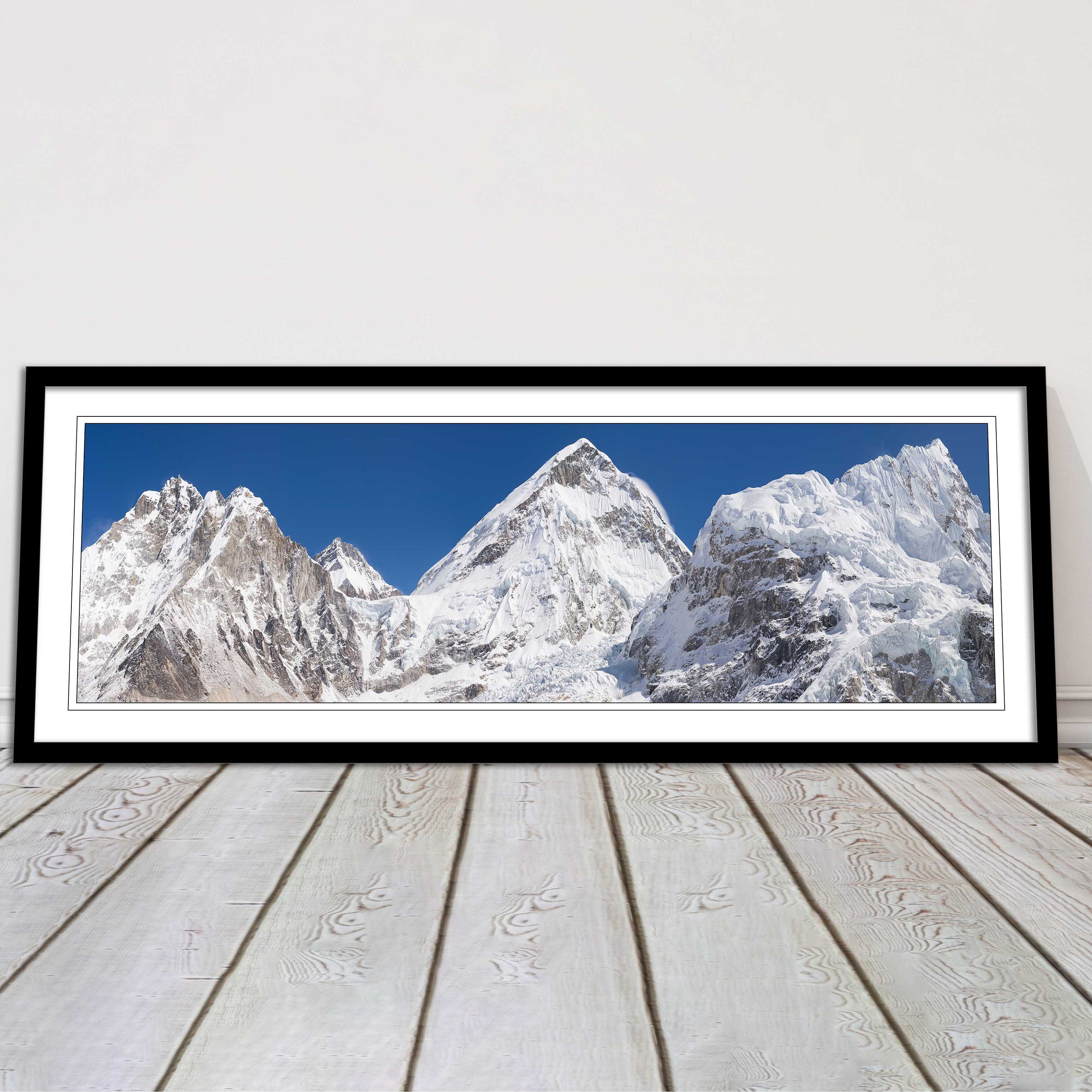 A beautiful panoramic framed picture of Everest summit and base camp.