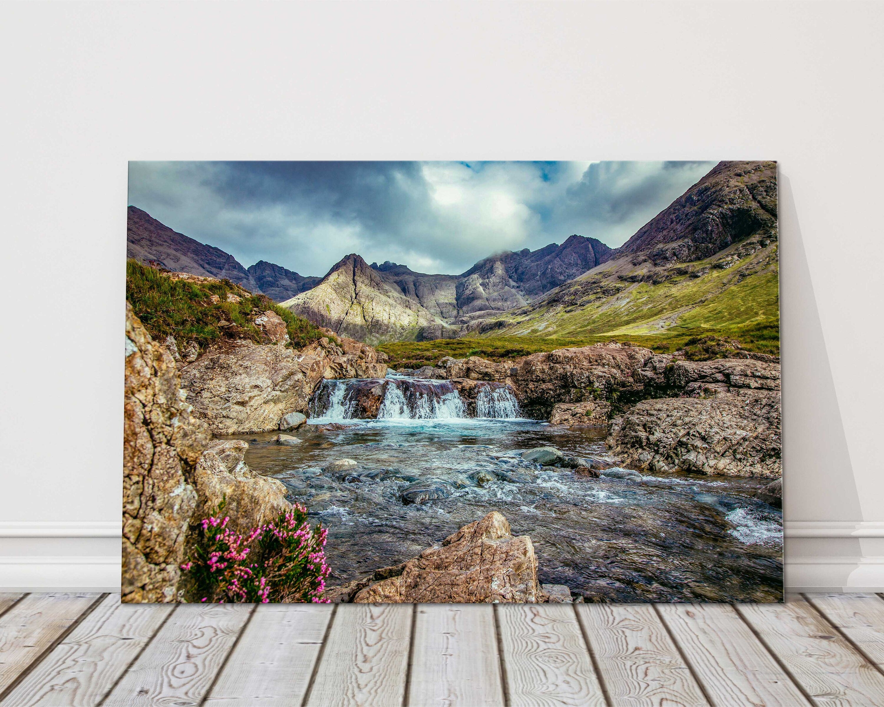 Beautiful scenery of The Fairy Pools, Isle of Skye, Scotland. Picture printed and framed as a canvas print. Stunning landscape... Read more