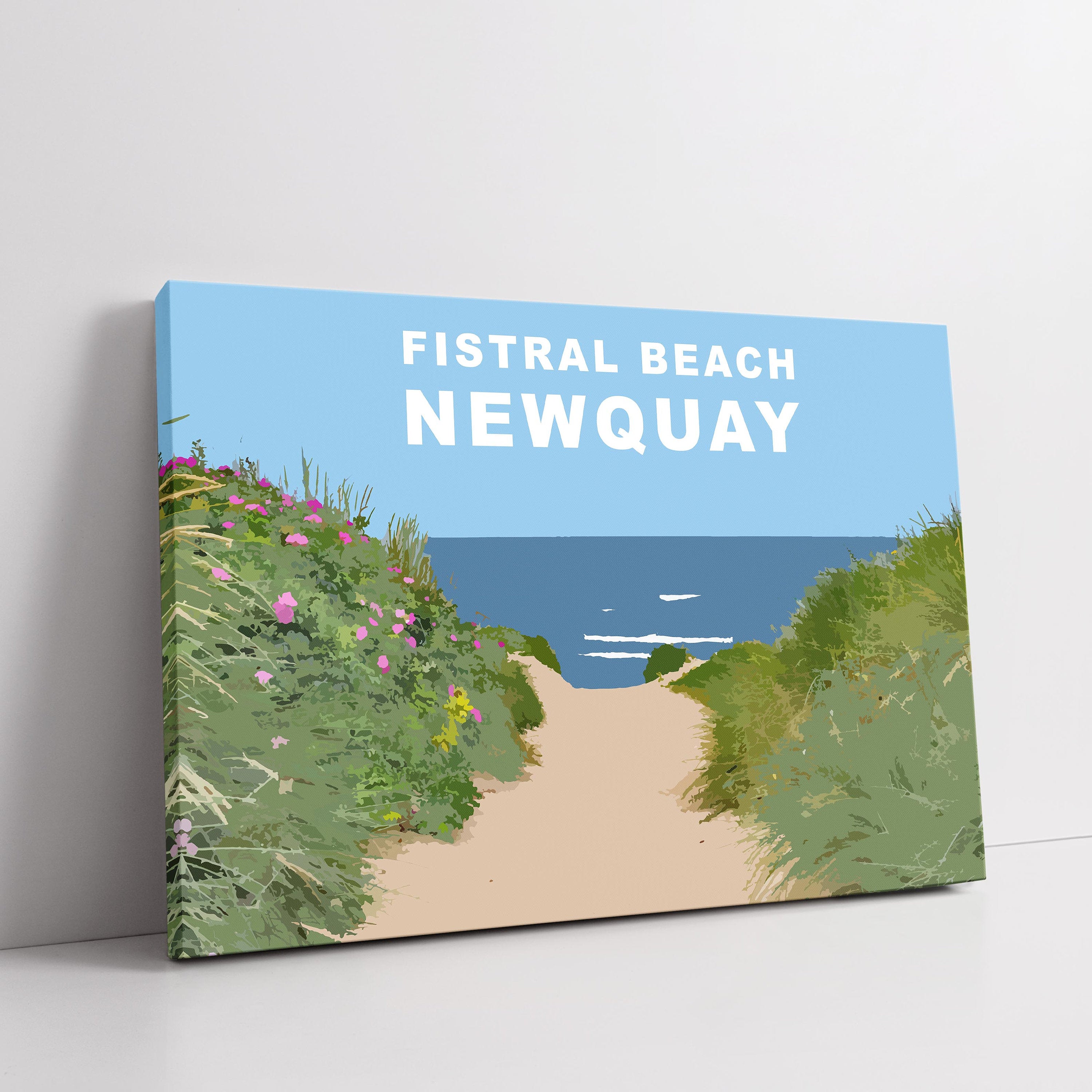 DESCRIPTION Fistral beach path, near Newquay, Cornwall. Including word art. Printed and framed as a canvas print. Made using UK... Read more