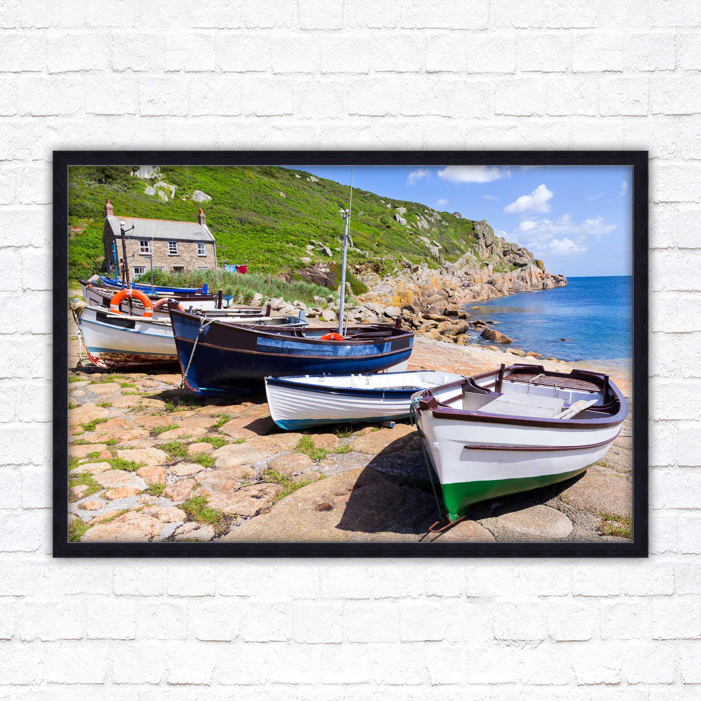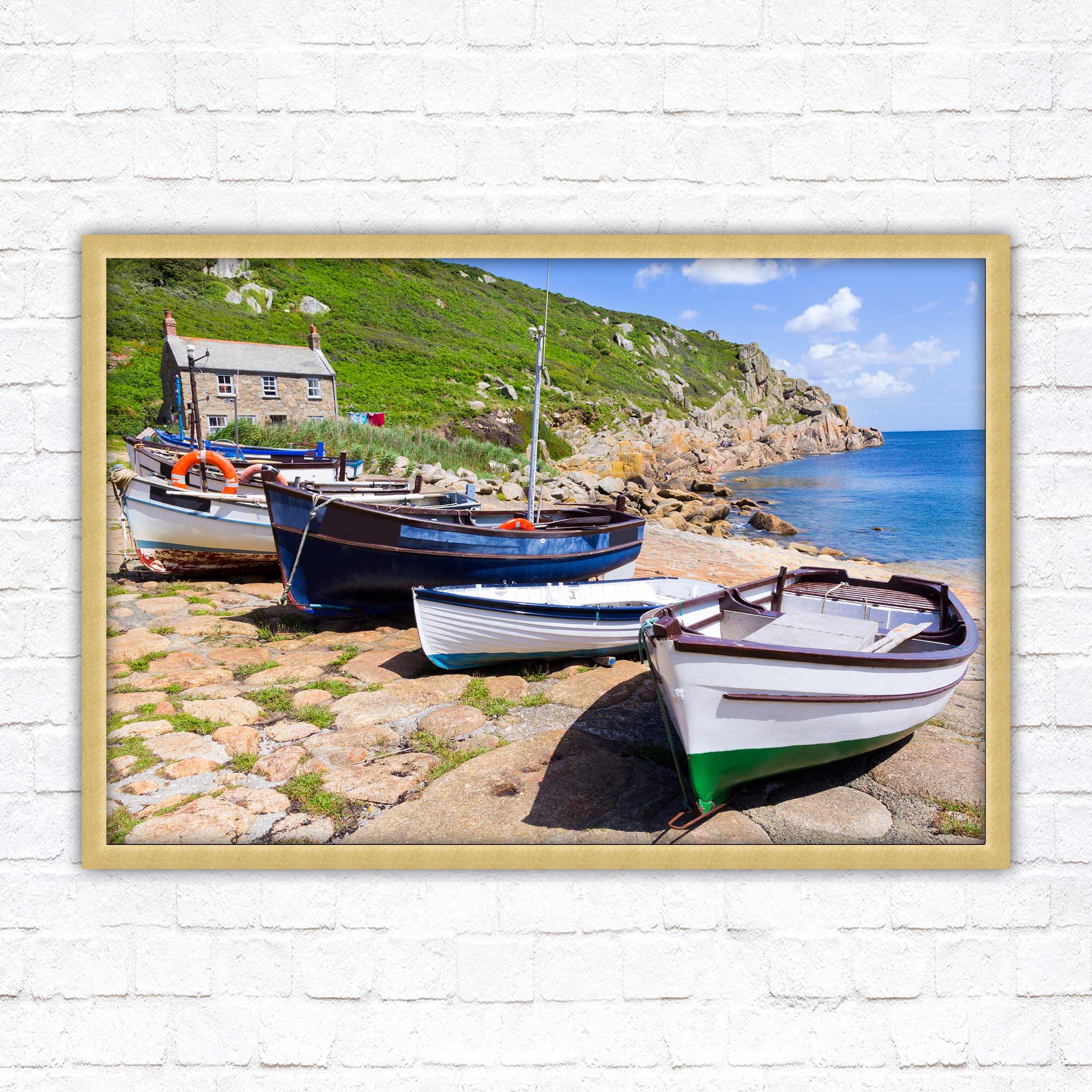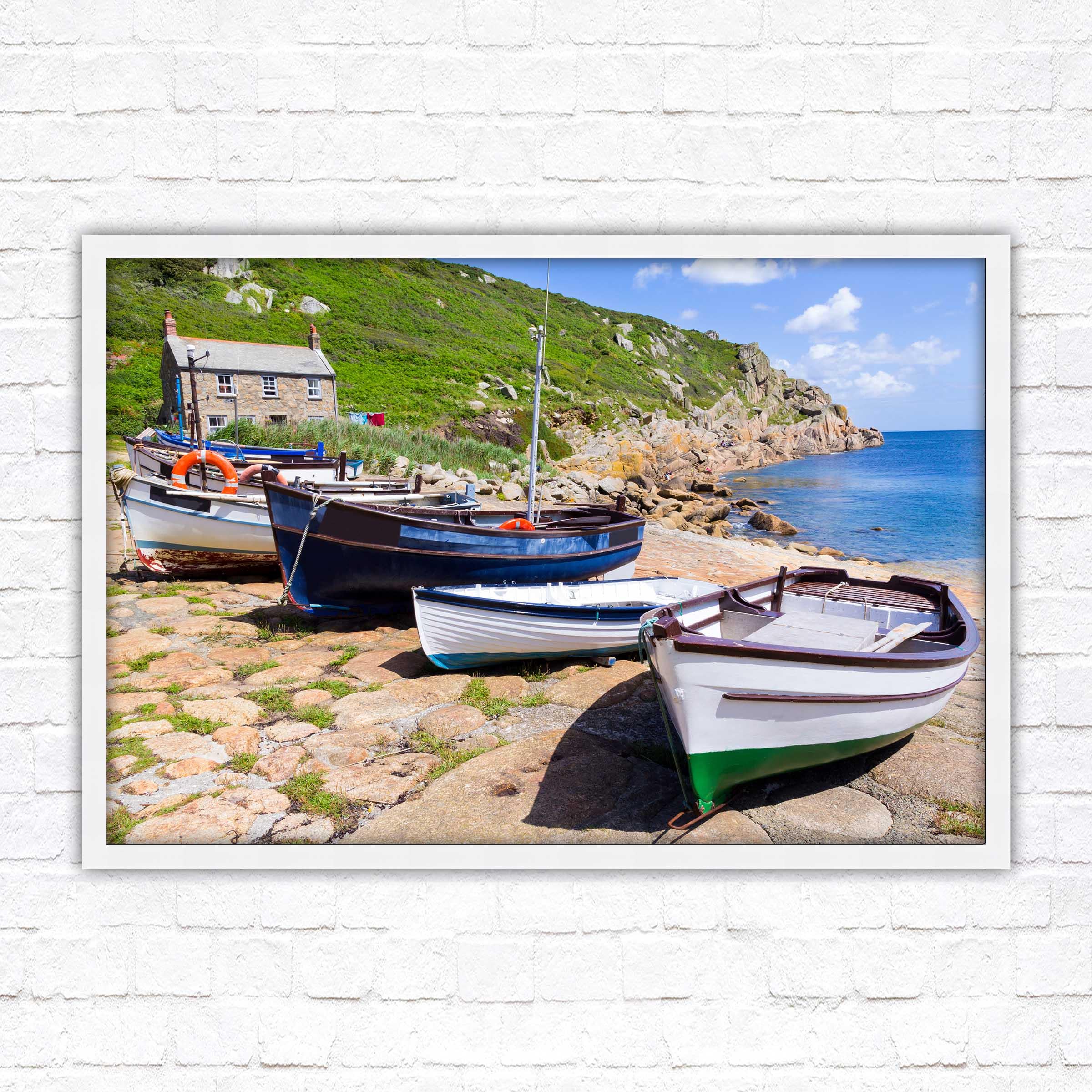 A beautiful framed picture of fishing Boats moored in the coastal village of Penberth, Cornwall. Enjoy this tranquil coastal image giving a sense of relaxation to any room of you home. Choose from a selection of frame styles.