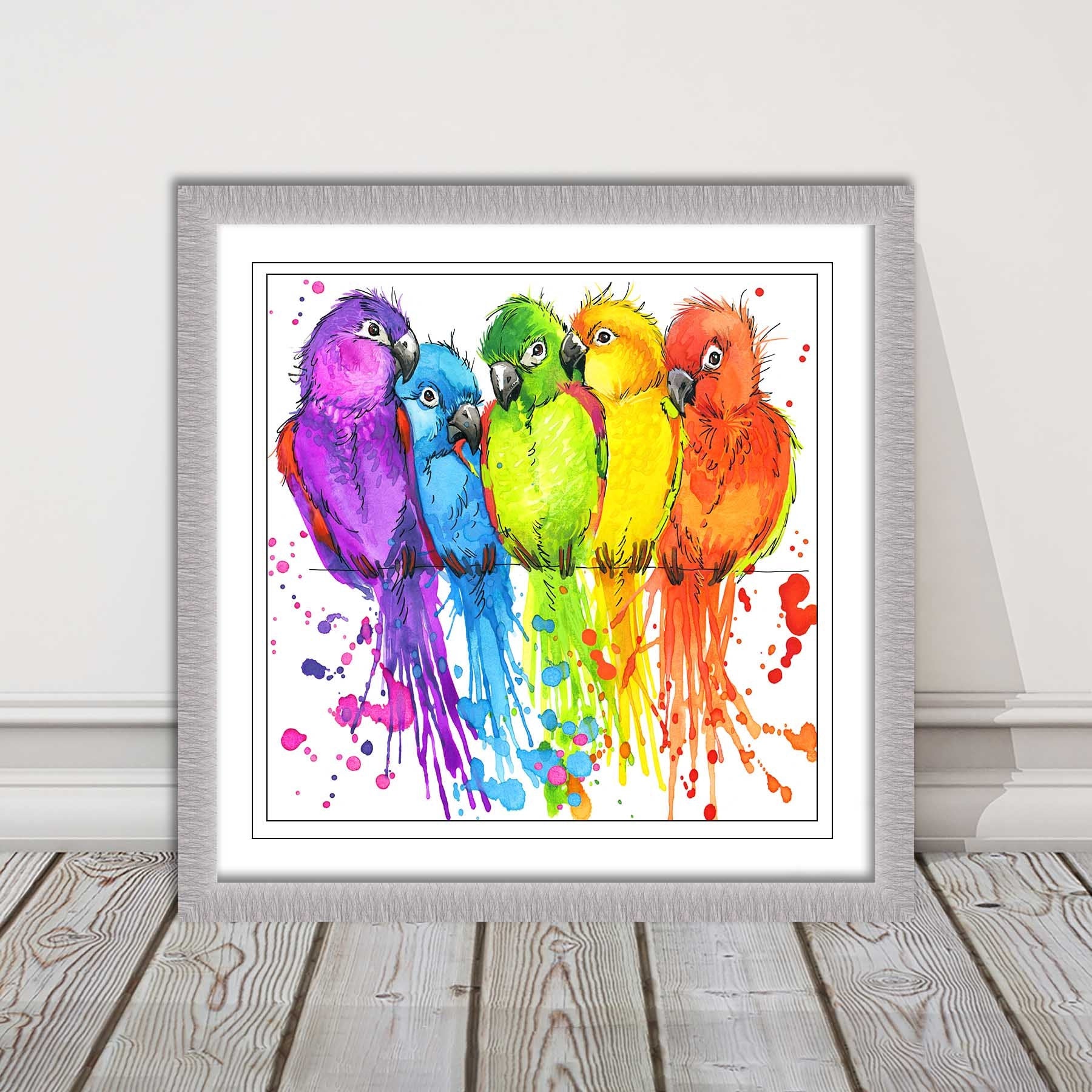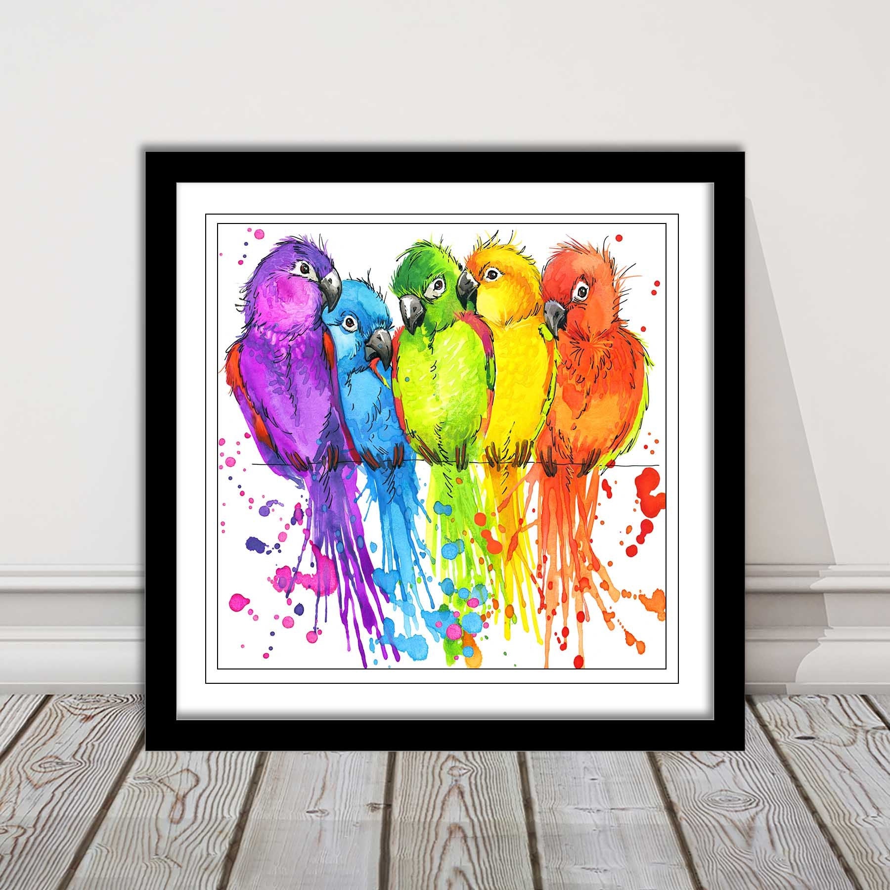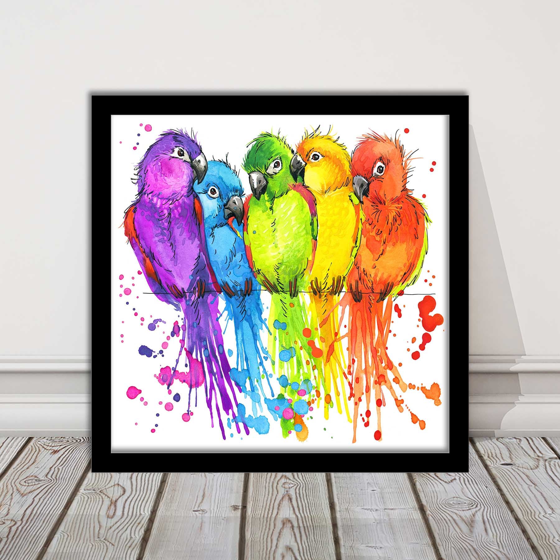 A beautiful framed picture of bright coloured Parrots. Choose from a choice of frame styles and sizes.
