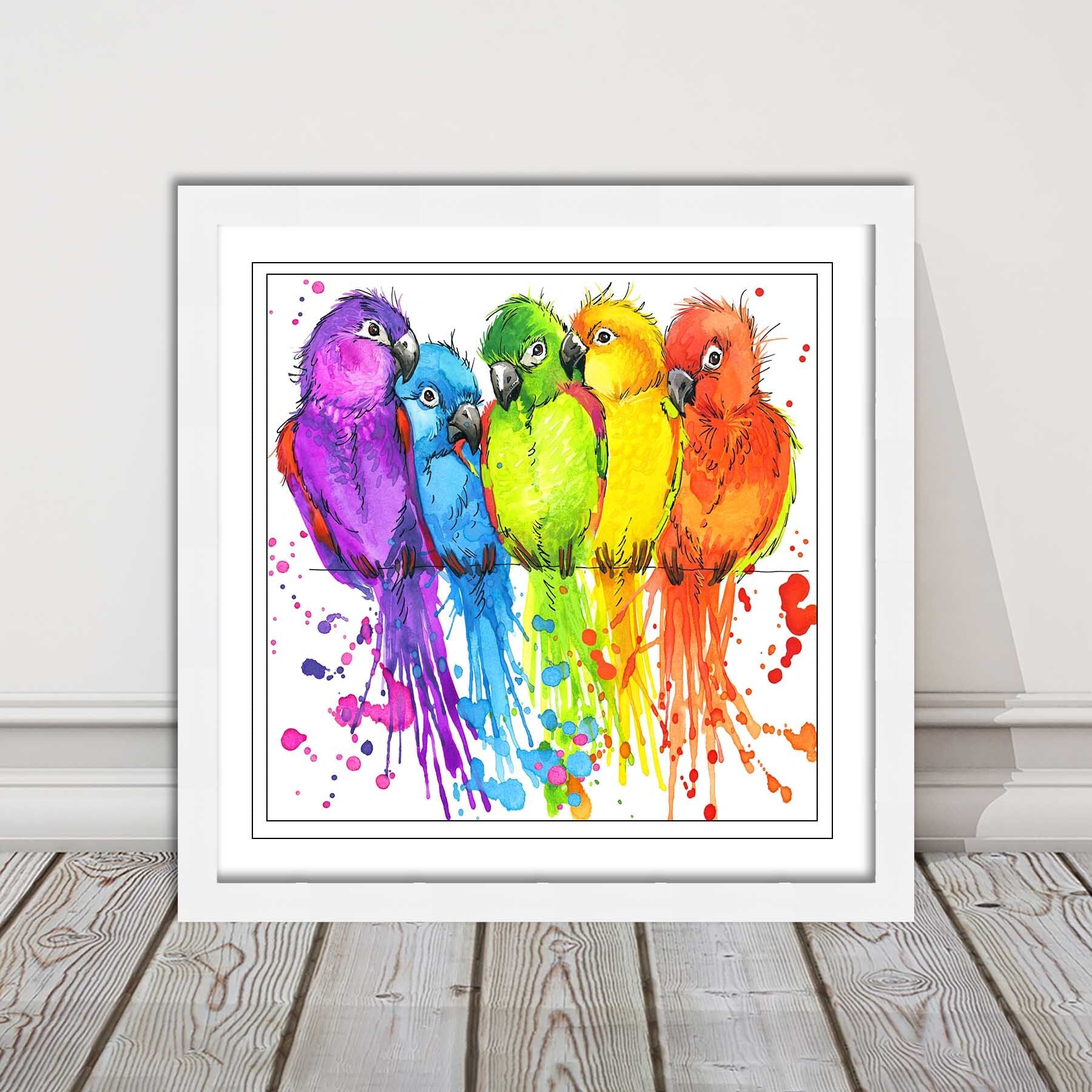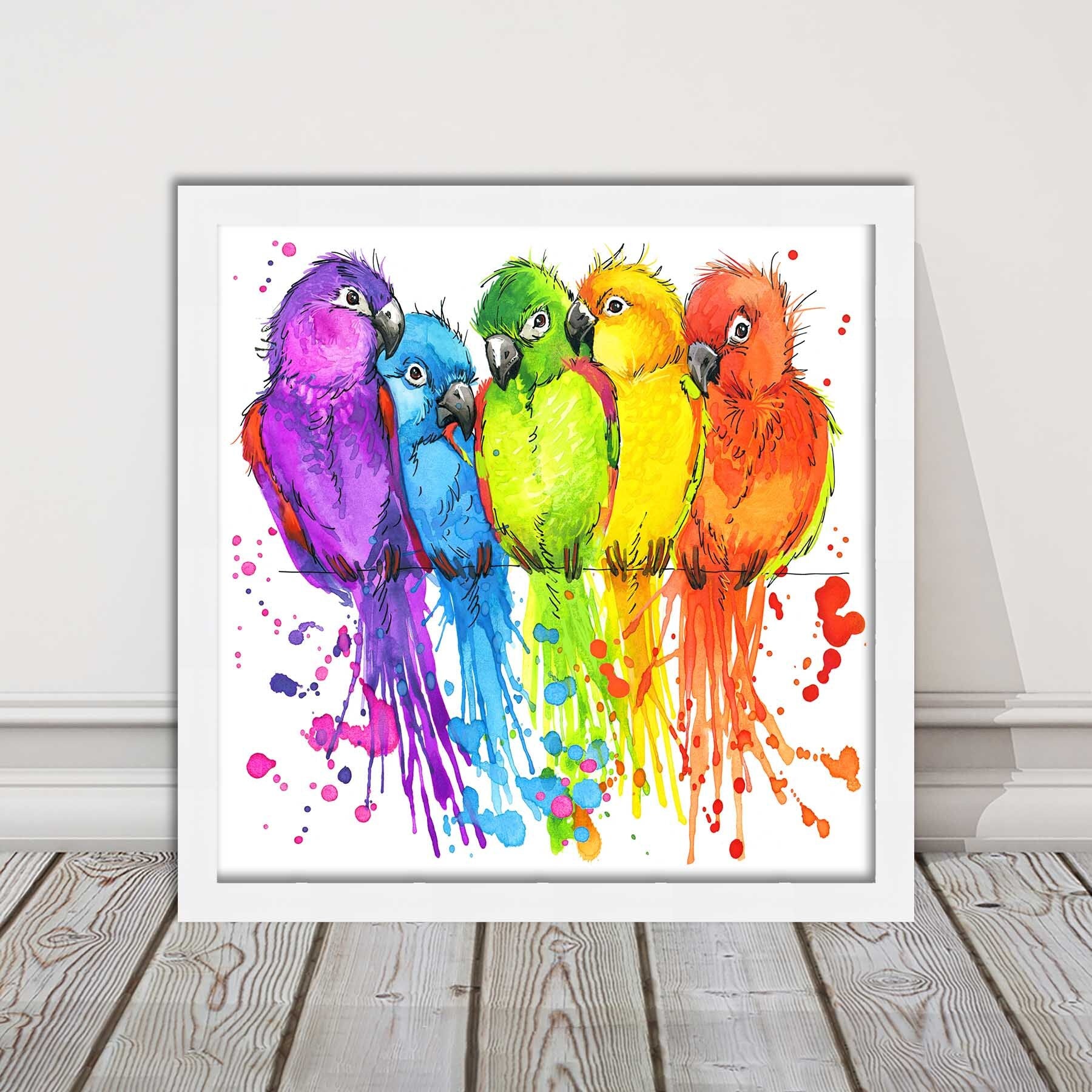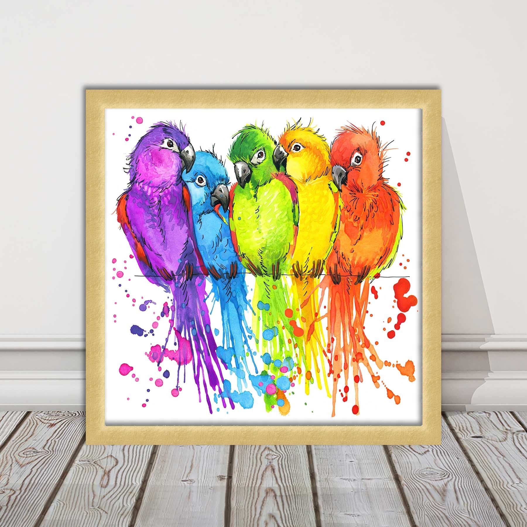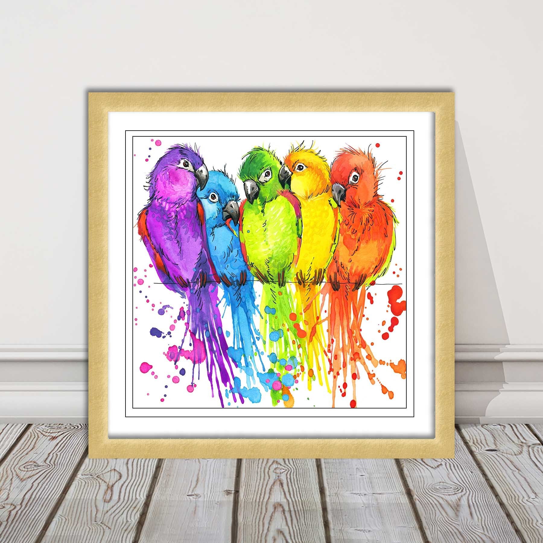 A beautiful framed picture of bright coloured Parrots. Choose from a choice of frame styles and sizes.