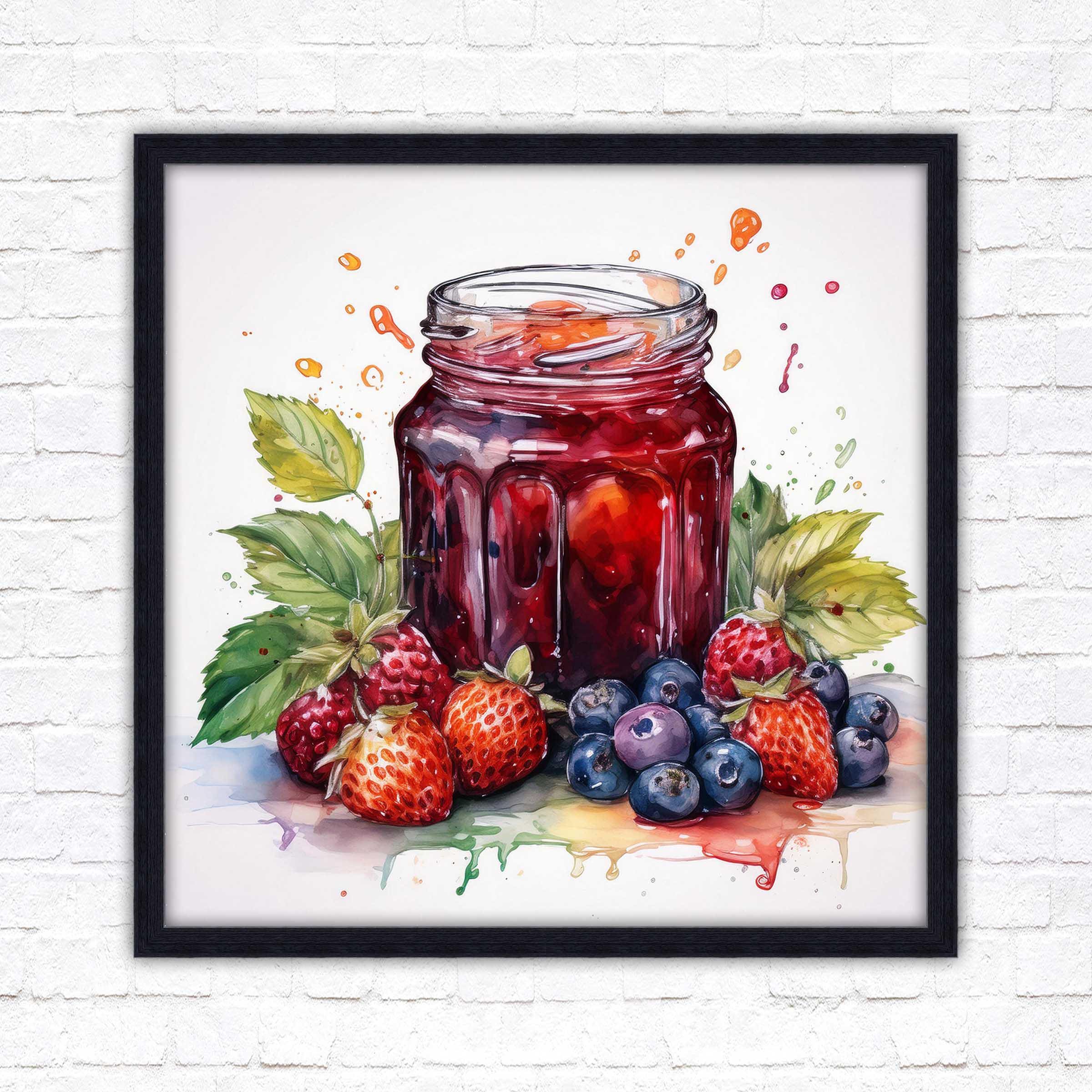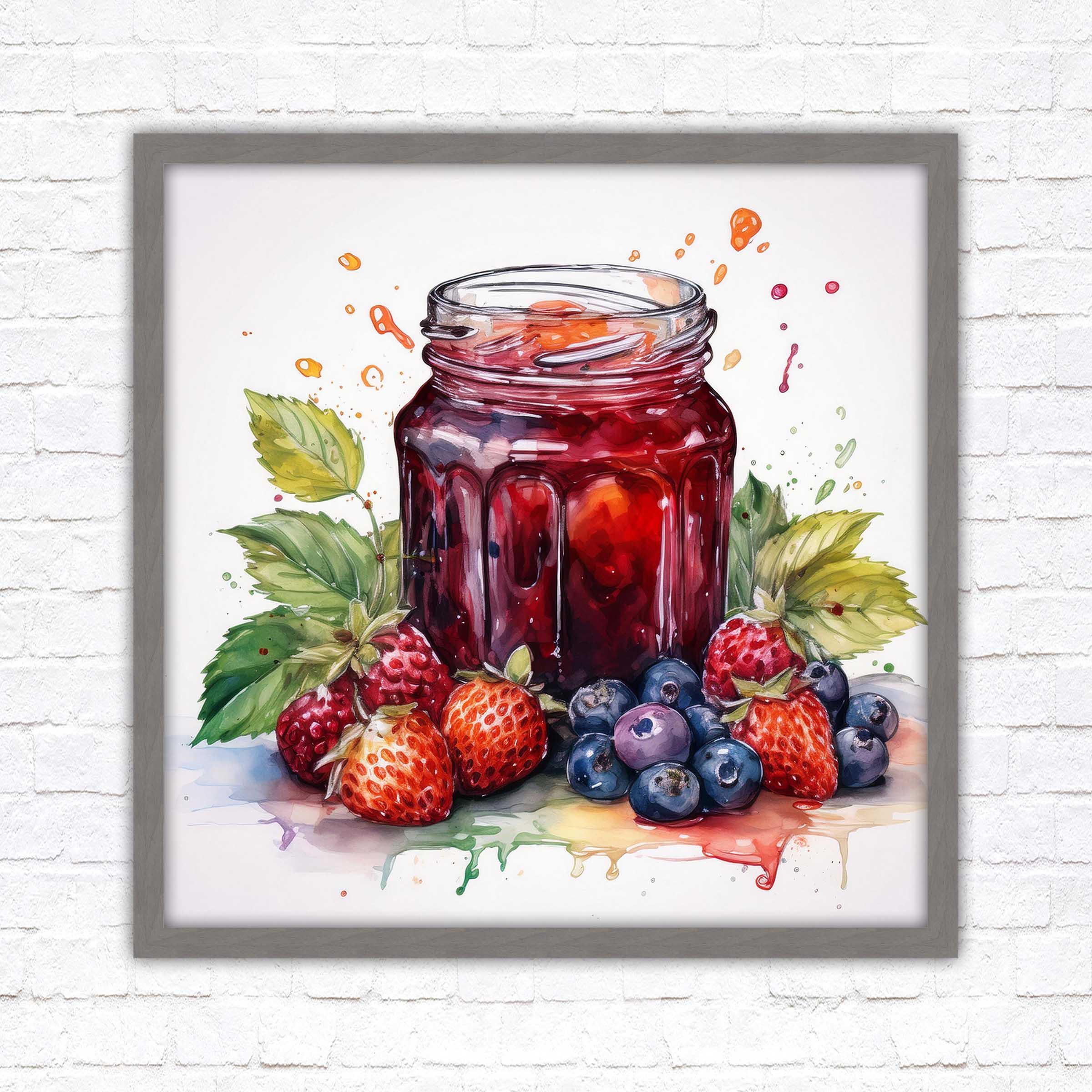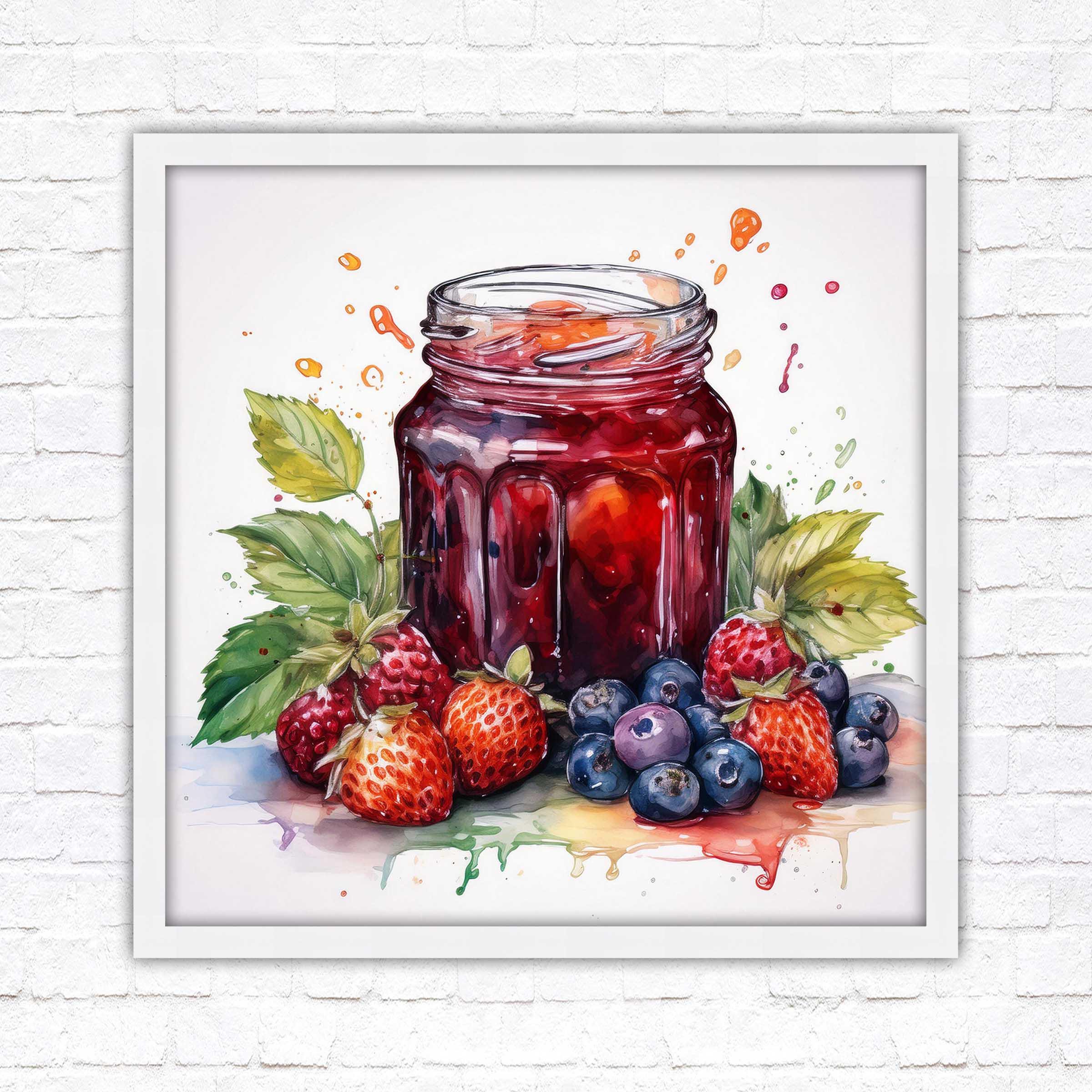 Fresh fruit homemade jam. Watercolour painting, Framed picture print. Choose from a choice of frame styles and sizes.