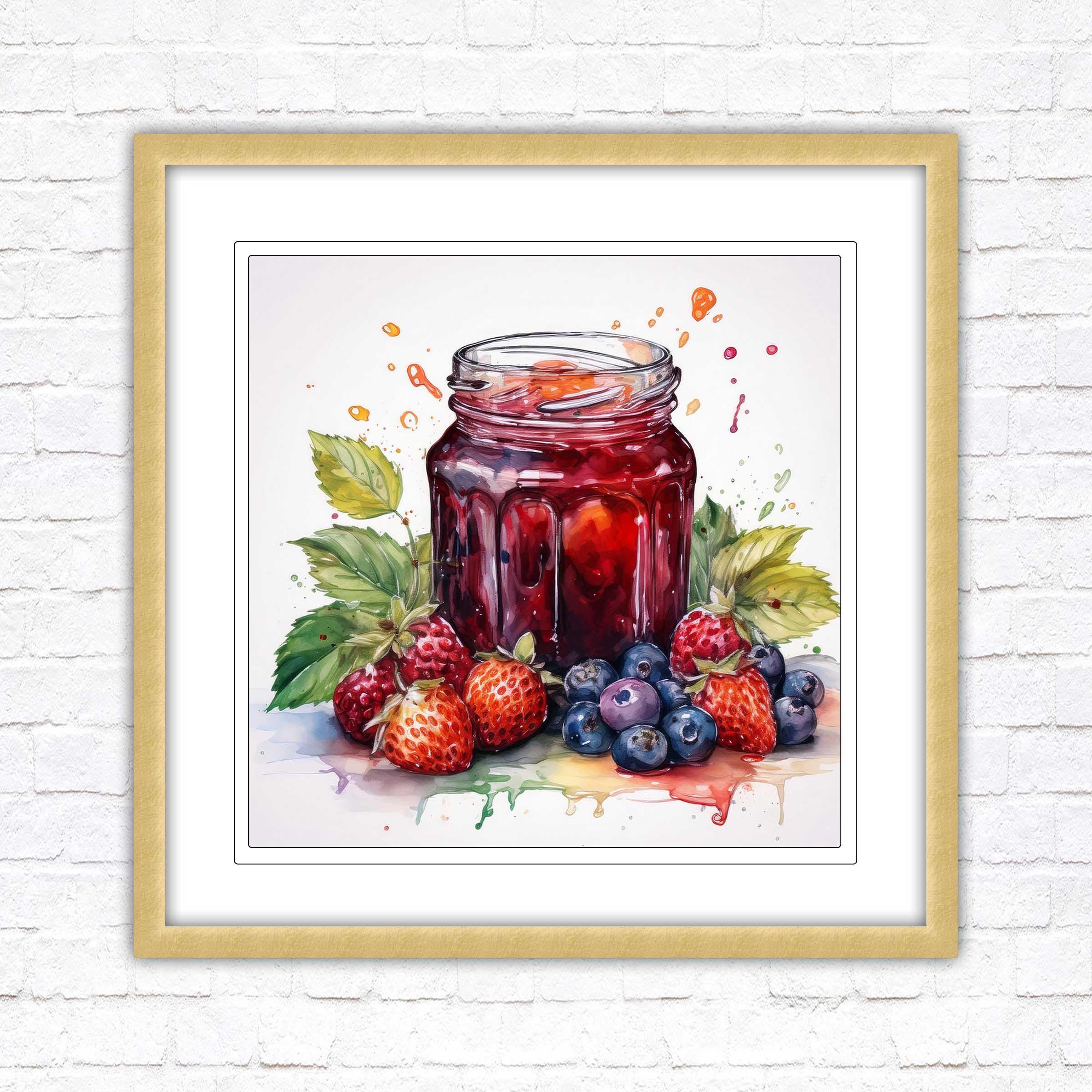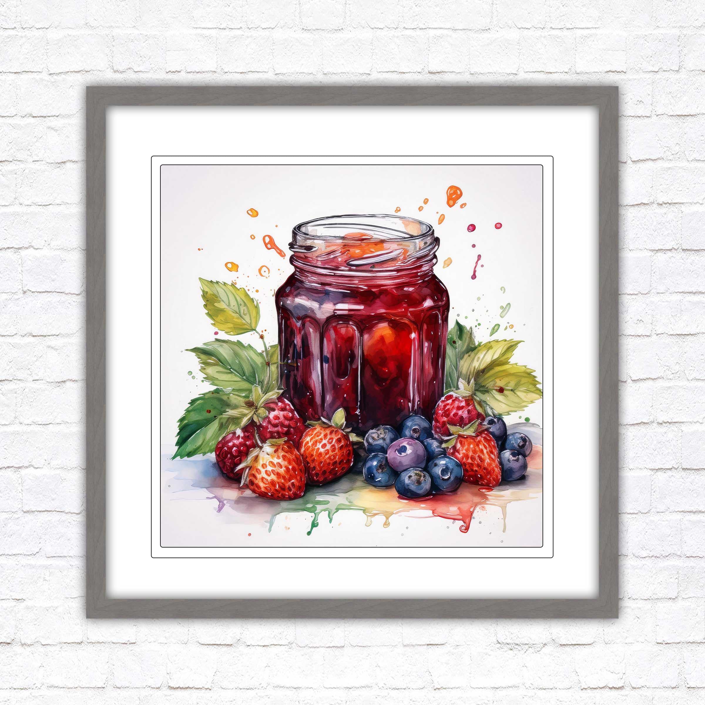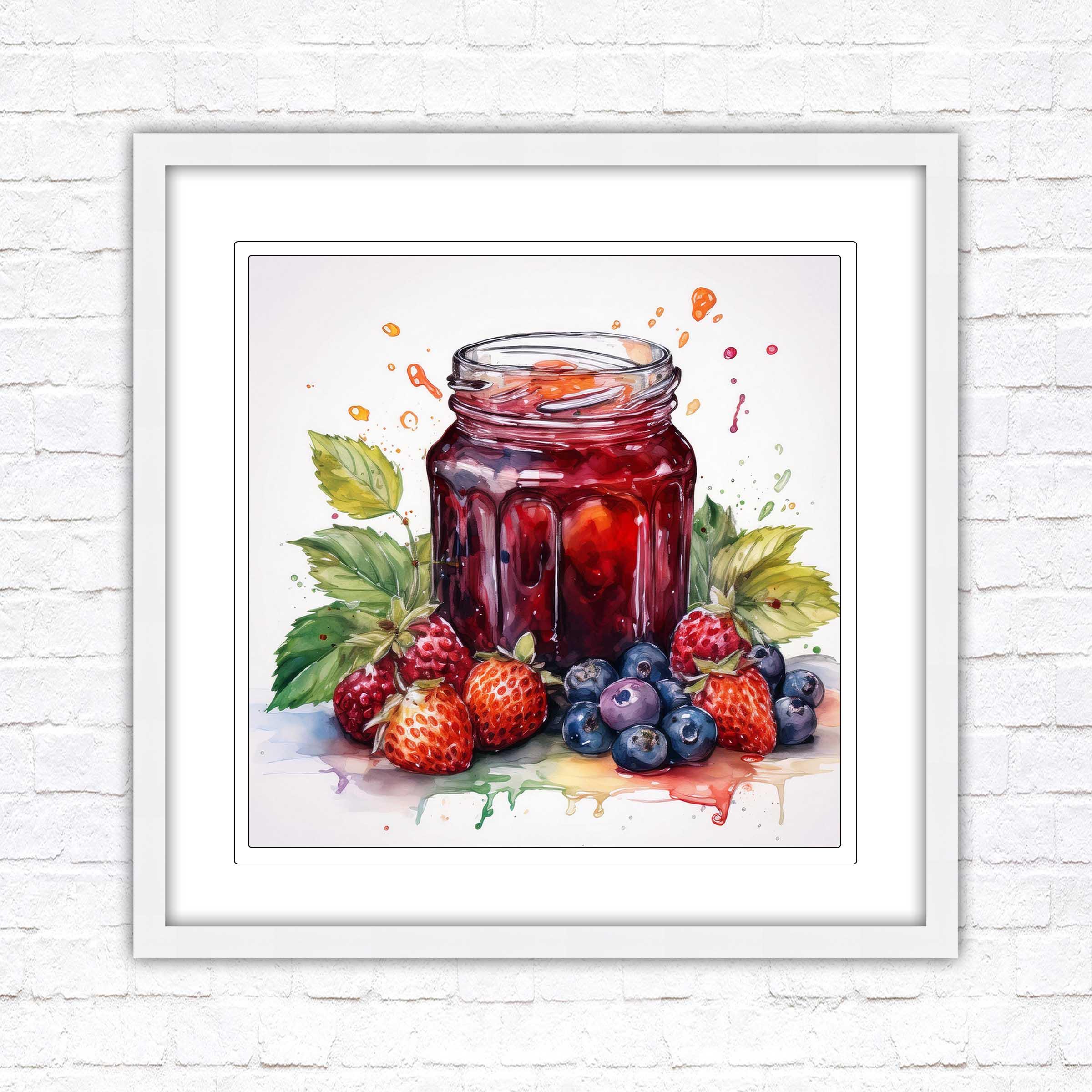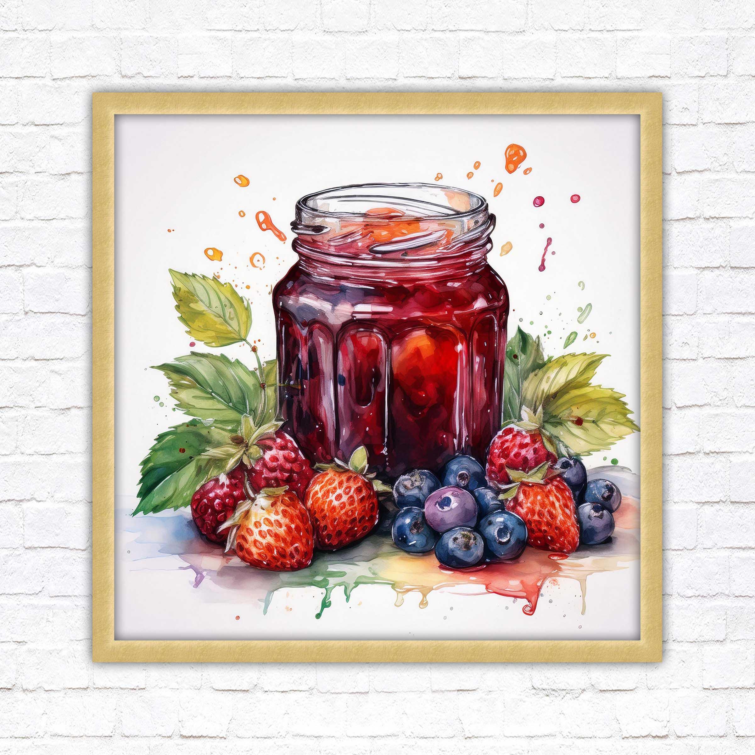 Fresh fruit homemade jam. Watercolour painting, Framed picture print. Choose from a choice of frame styles and sizes.