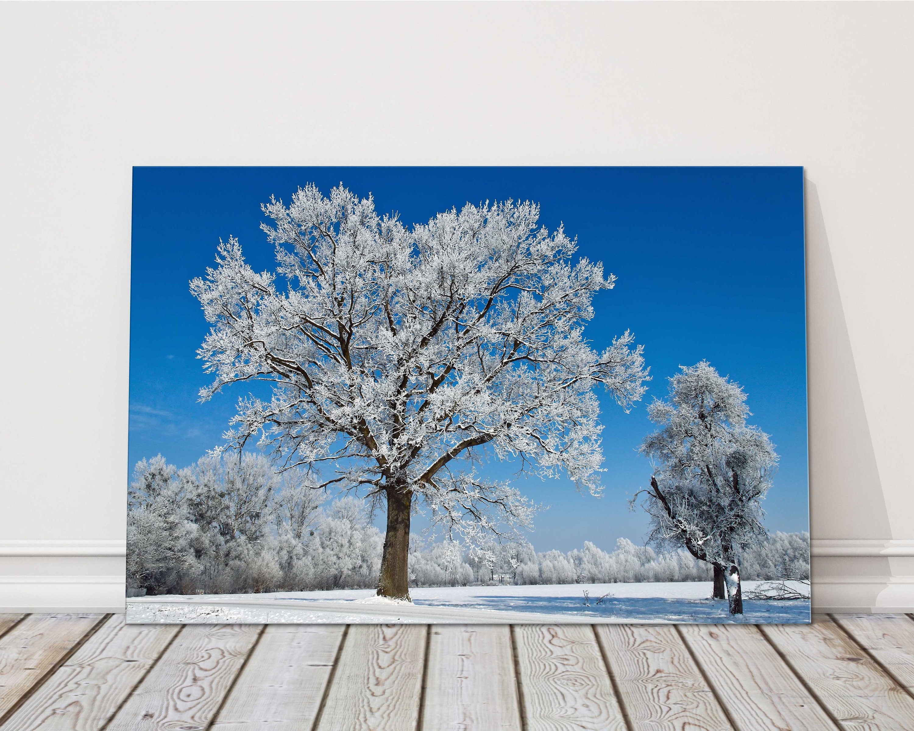 Frosty winter morning. Bright blue sky on a crisp cold morning. Picture printed and framed as a canvas print. Choice... Read more