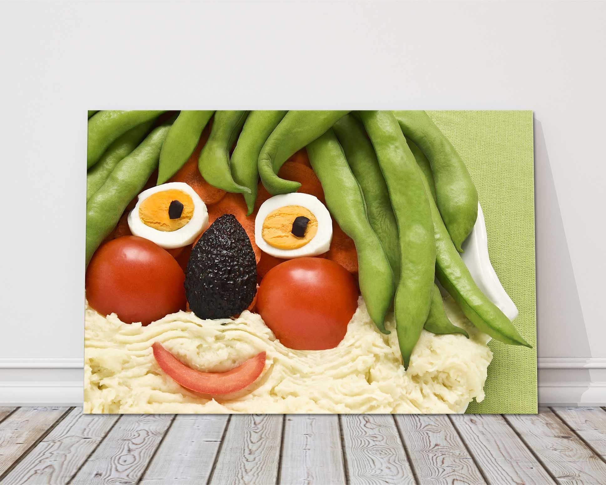 Funny food face, canvas picture, printed and framed as a canvas print. Fun for children. Food themed, ideal for kitchen... Read more