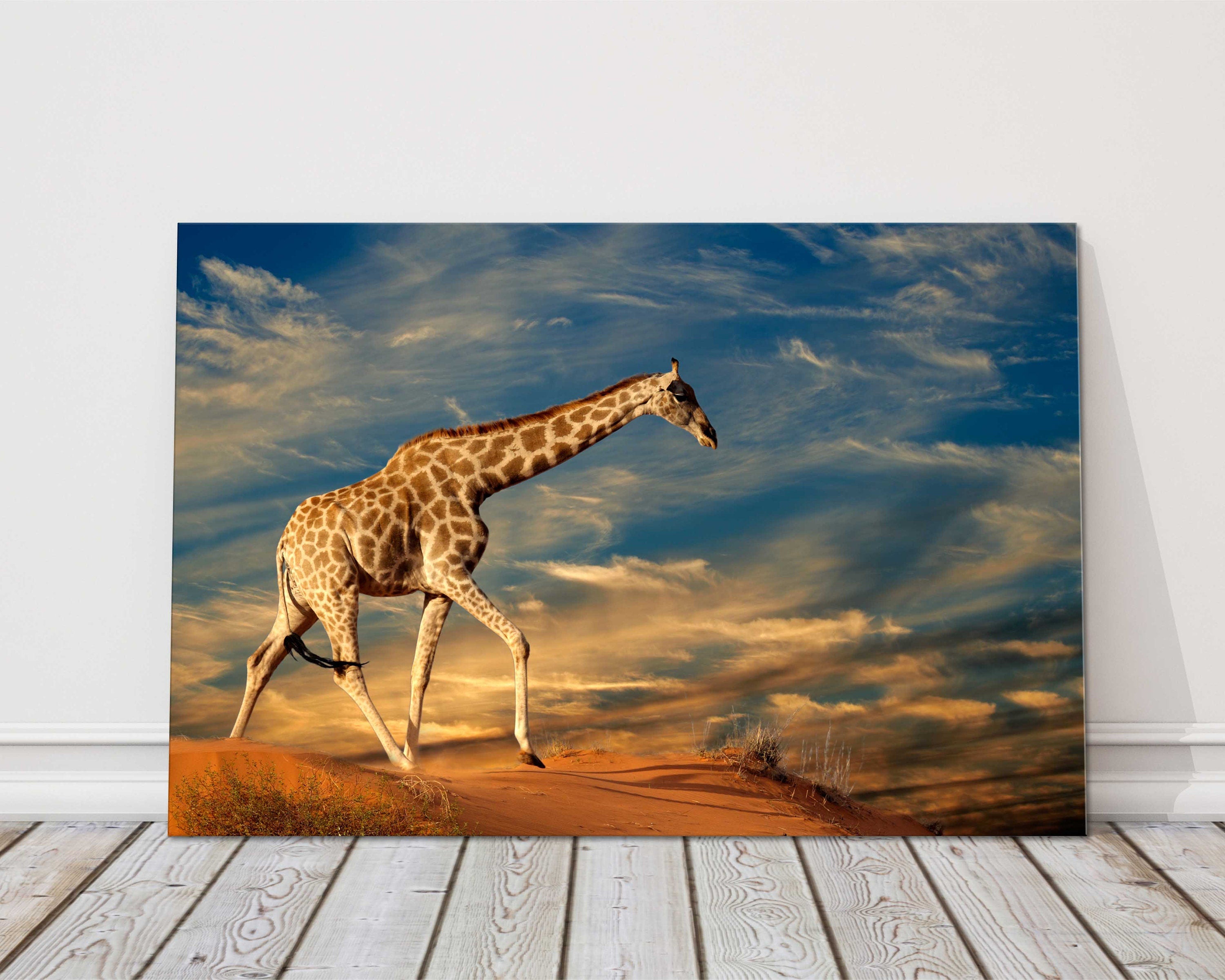 Giraffe walking on the sand dunes. Printed Canvas picture print. Wildlife image.