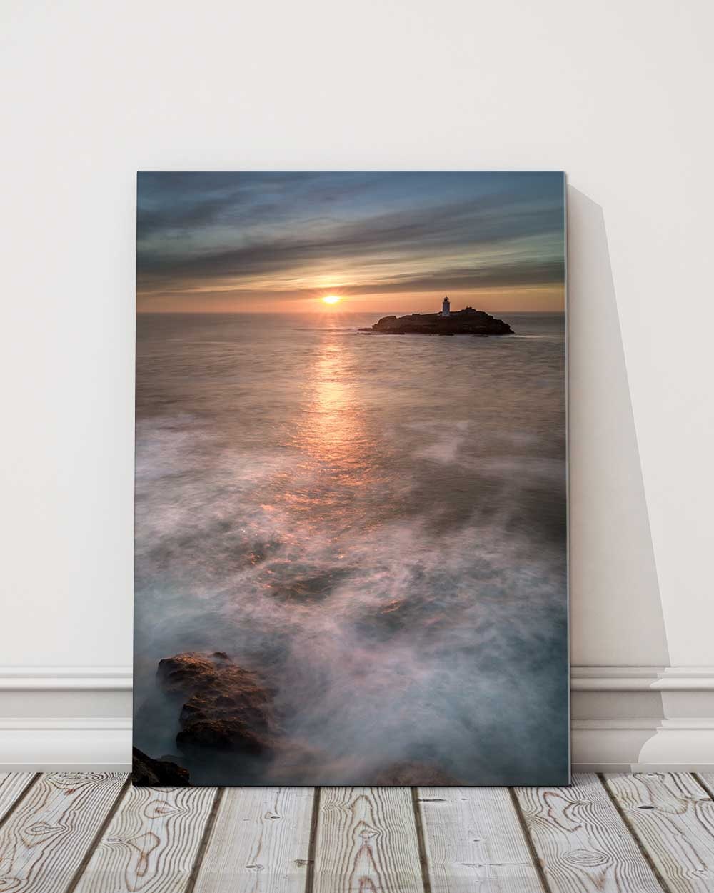 Godrevy lighthouse near St Ives Cornwall Canvas picture print sunset portrait