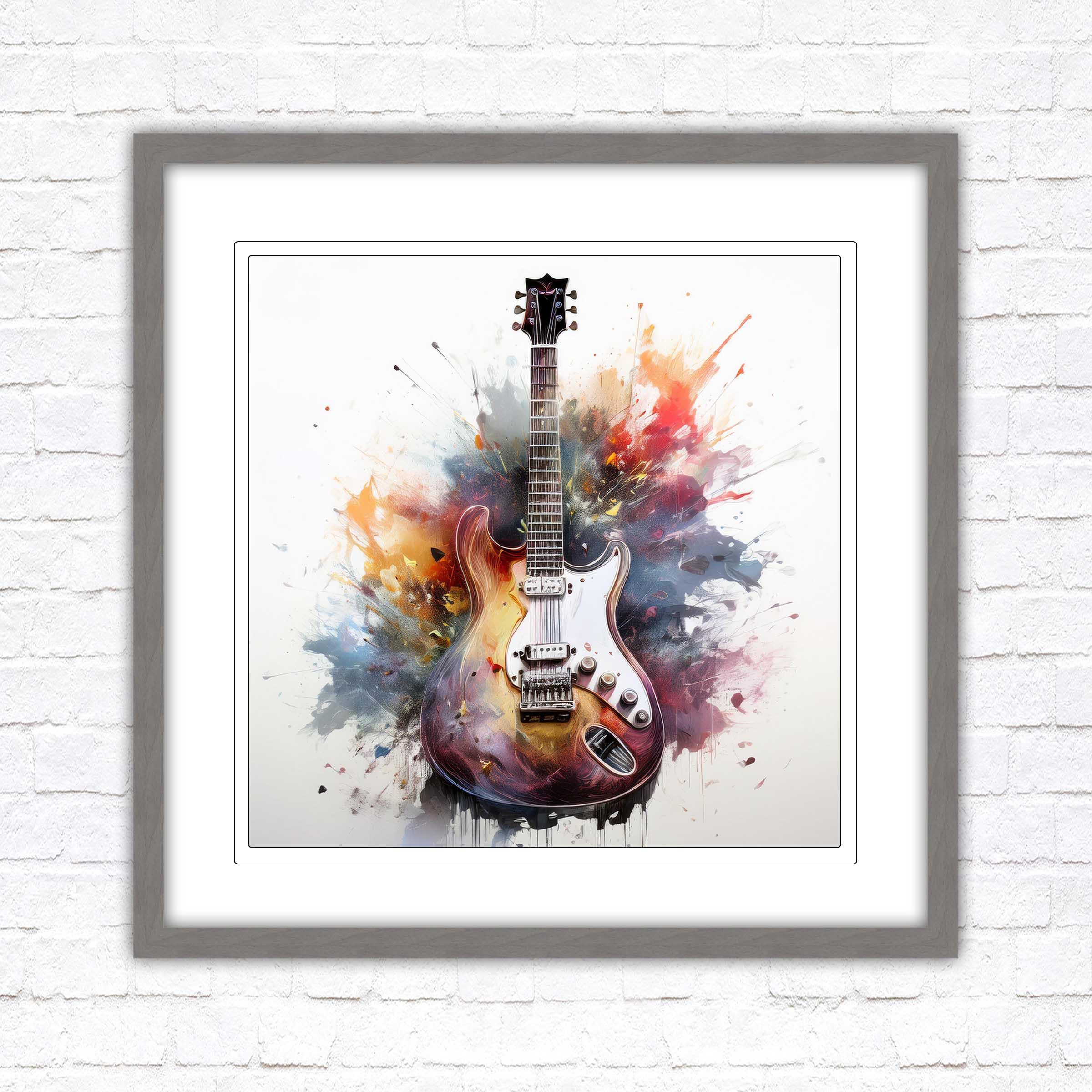 Transform your space with this stunning, watercolour picture of an electric guitar. Perfect for music lovers this vibrant piece captures the energy, passion, and timeless appeal of one of the world's most iconic instruments.