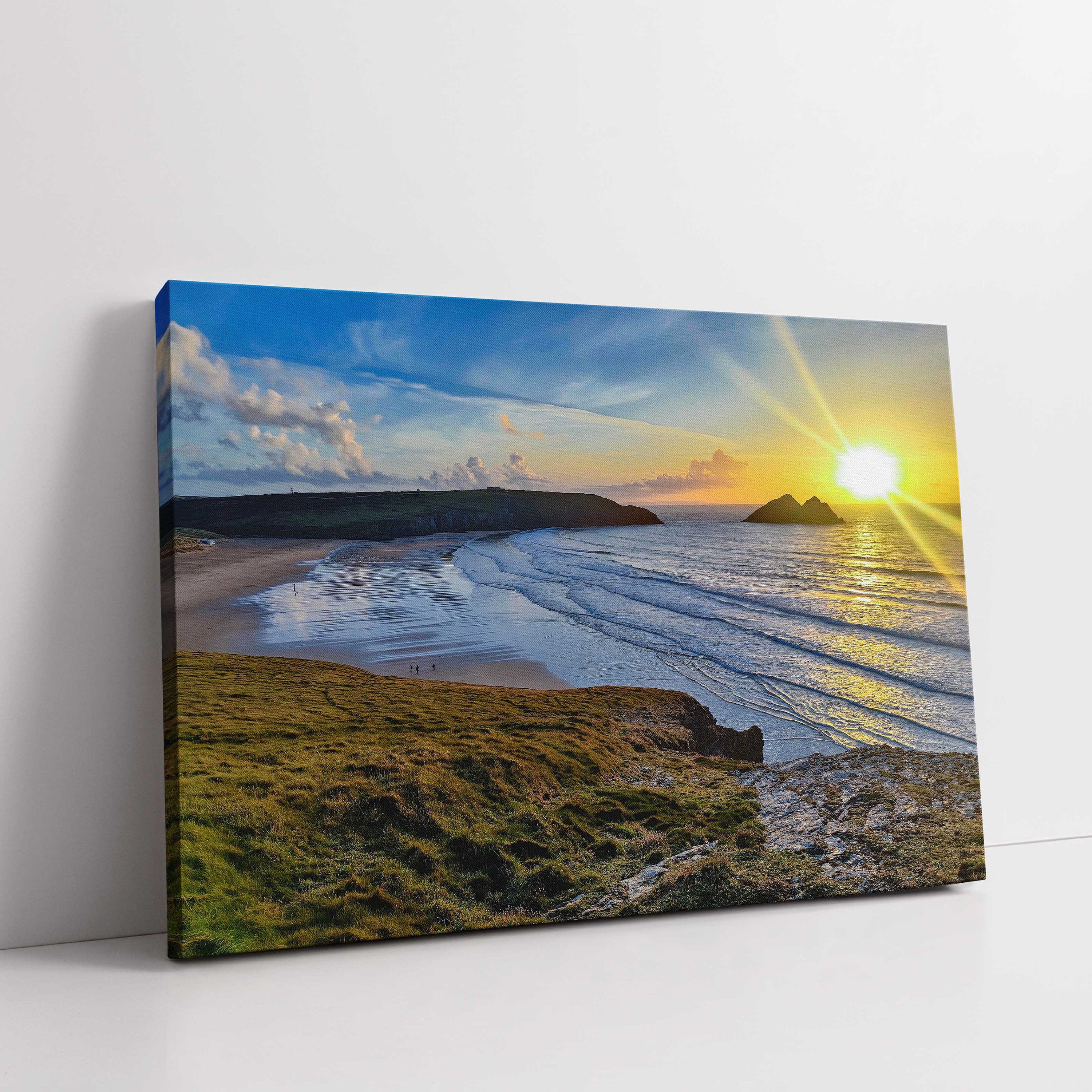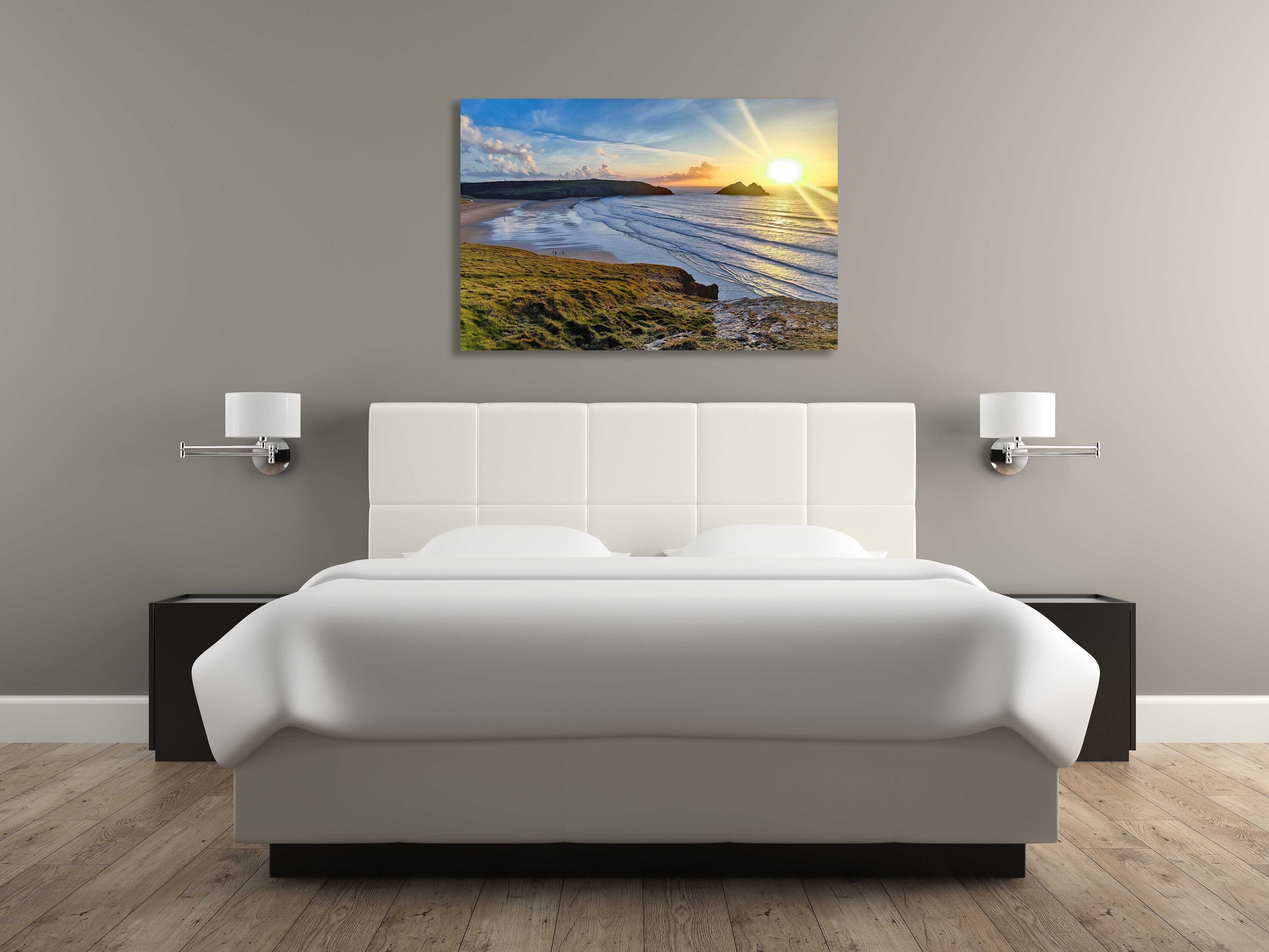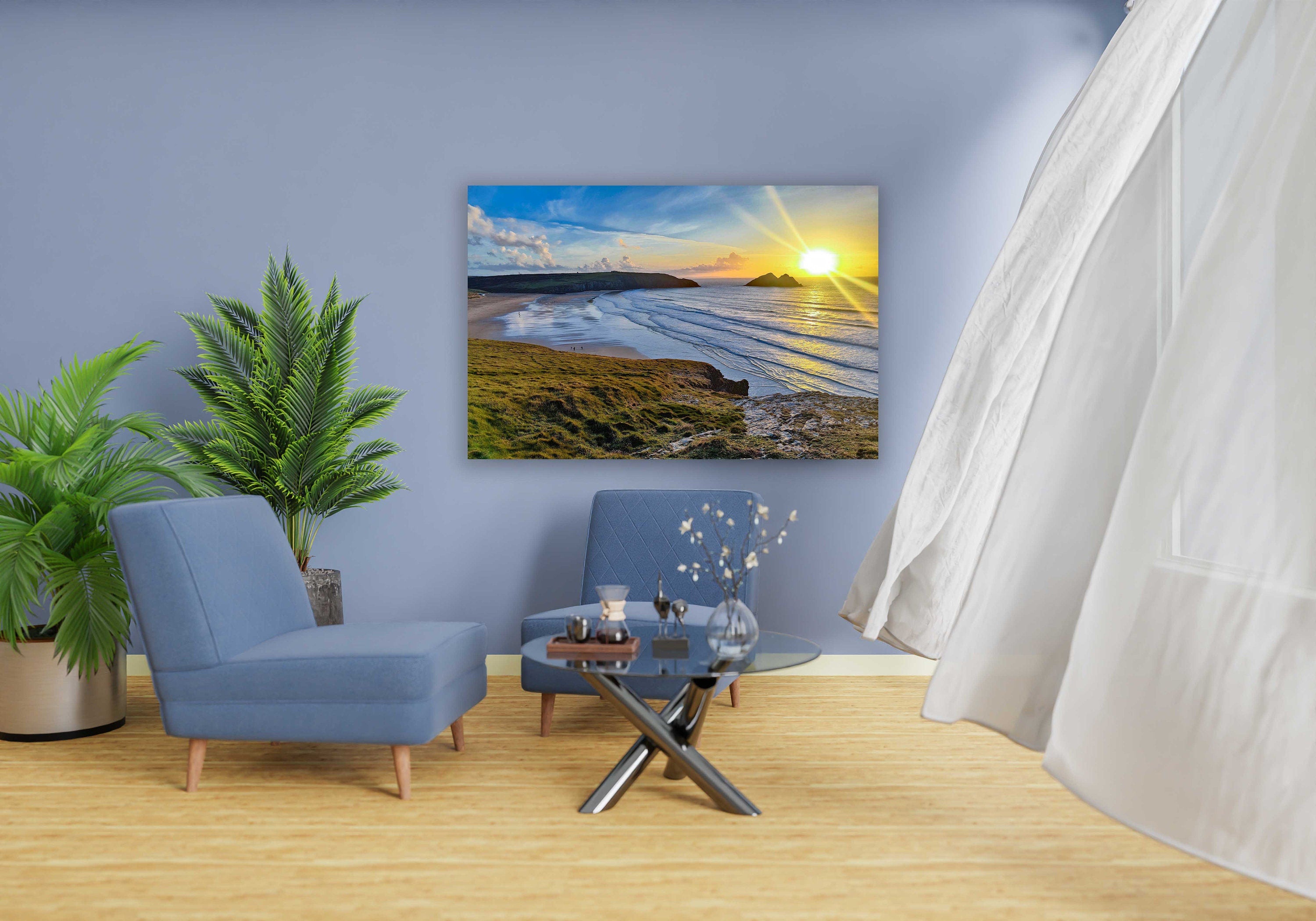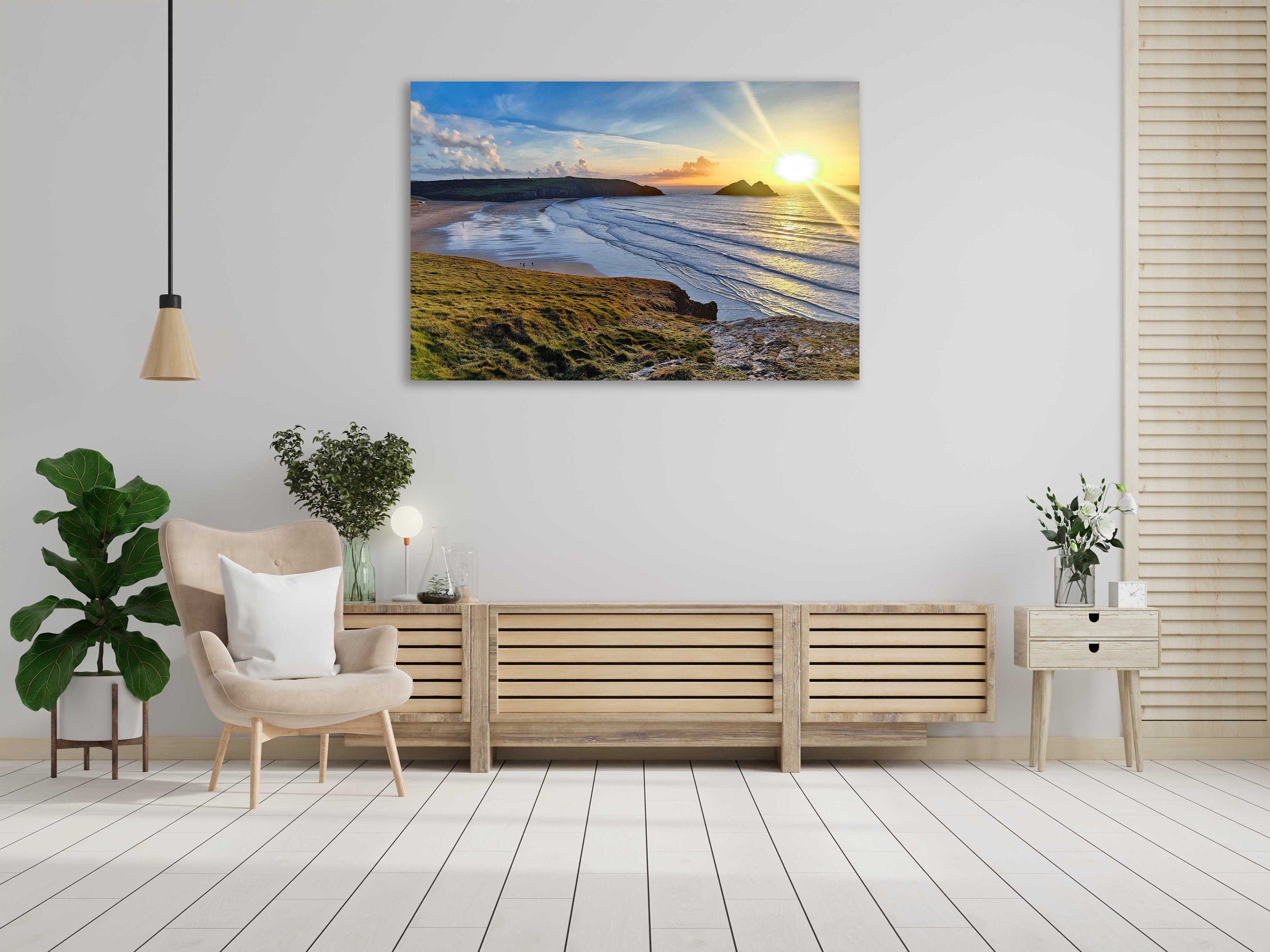 Holywell bay at sunset, Cornwall. Canvas picture printed and framed as a canvas print Made using UK sourced pine stretcher... Read more